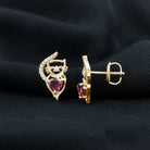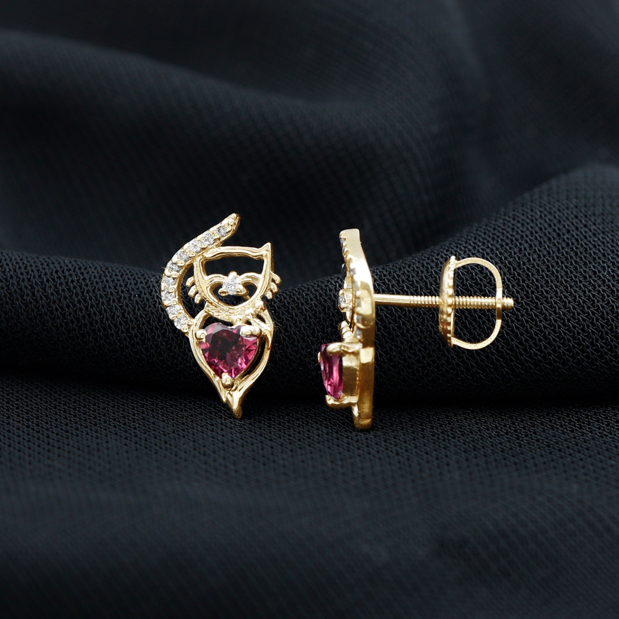 Add something Different to your jewelry Collection Get these Pink Tourmaline and Diamond Cat Stud Earrings. The Screw Back featured Stud earrings are embellished with Heart Shape Pink Tourmaline in 3 Prong Setting as Center Stone with Tiny Round Shape Diamond studded beautifully in Solid Gold crafted Cat.