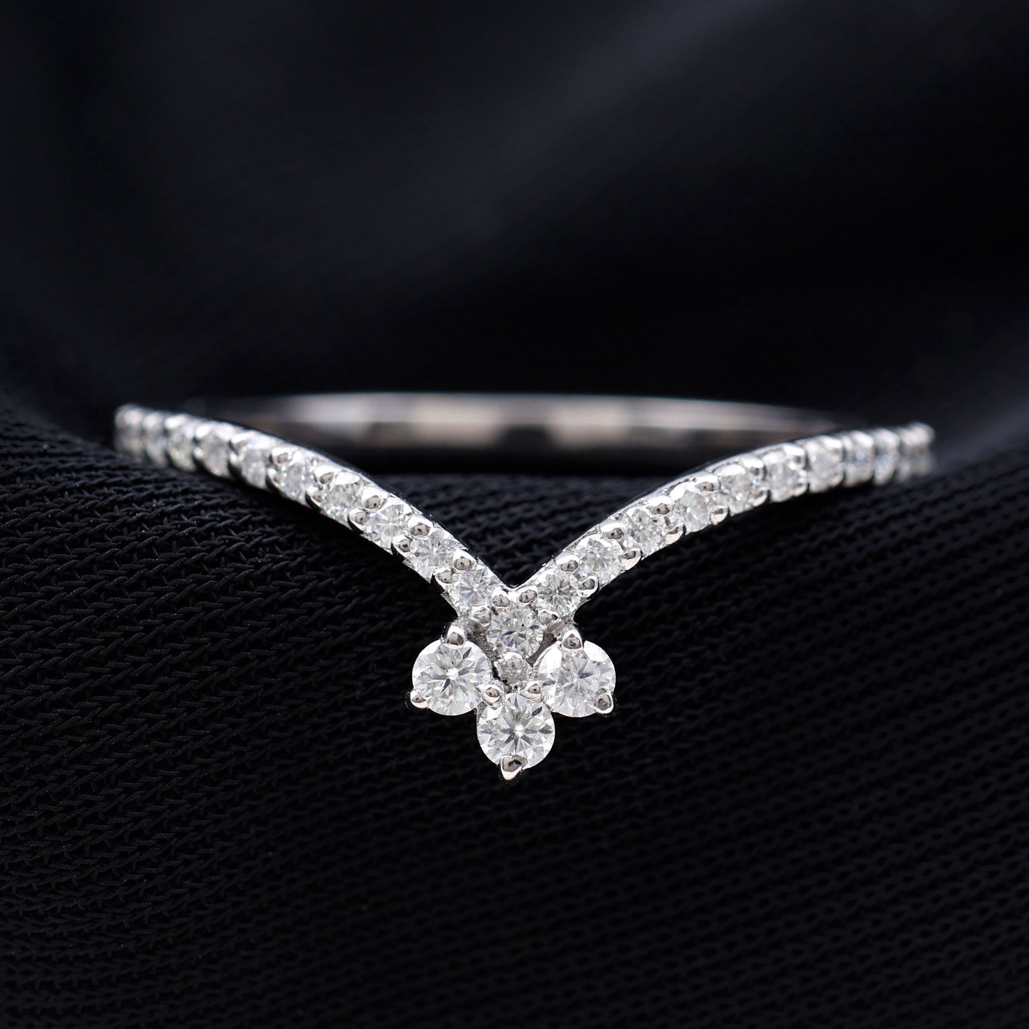 Chevron Wedding Ring is the unique and beautiful chevron shape decorated with Round Shape Moissanites in the prong setting. This Dainty Bridesmaid Ring is crafted in Solid Gold, works great as enhancer.