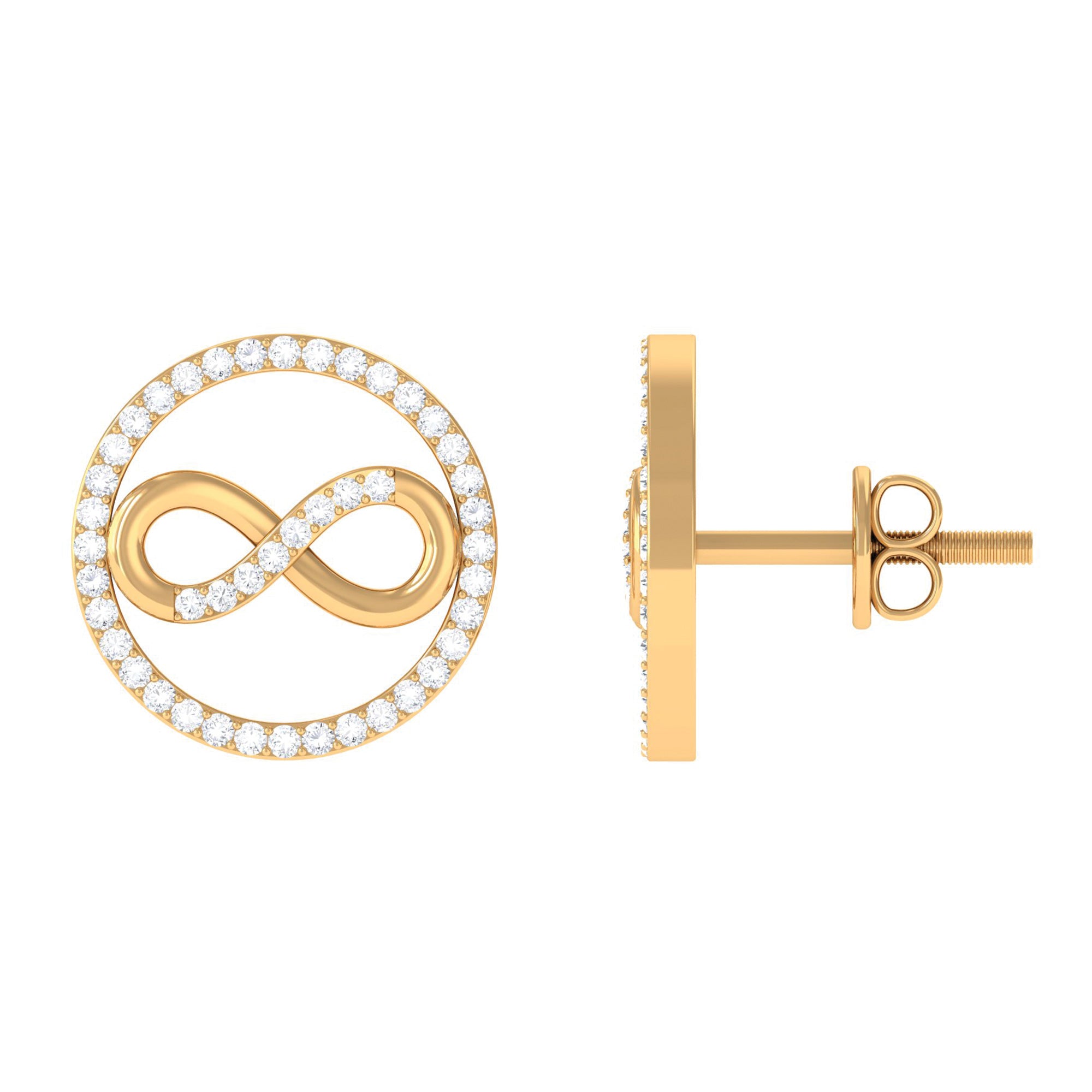 Grab this beautiful Open Circle Earrings embellished with small Round Shaped Diamonds are set in a Pave Setting. This Infinity Stud Earrings crafted in Solid Gold.