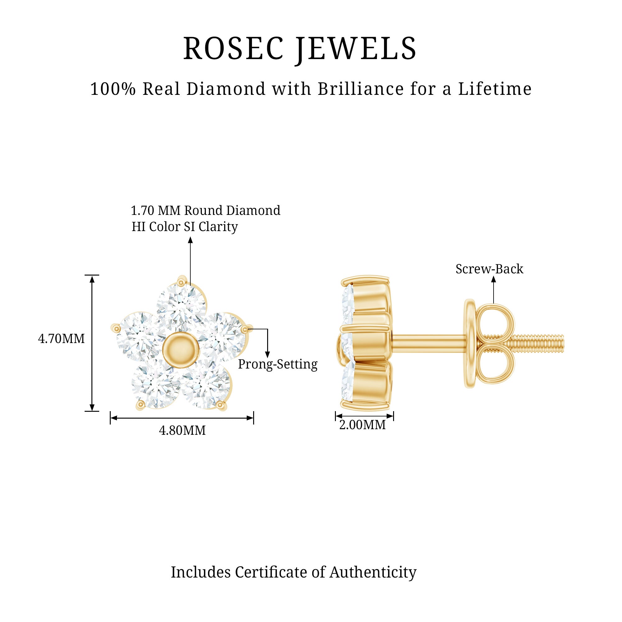 Make a statement with your unique style by wearing this exquisite Flower Nose Stud and receive endless compliments. Meticulously crafted from high-quality metal, this stunning Diamond Nose Stud showcases a beautiful floral design adorned with Round Cut Diamonds set in prong setting. Its intricate details and impeccable craftsmanship make it the perfect accessory to wear every day as a stunning piece of Body Jewelry. Flaunt your individuality and elevate your look with this exquisite Nature Inspired Jewelry that is sure to turn heads. Apart from wearing it on the nose this dainty stud can be styled on ear piercings also such as Helix Piercing, Cartilage Piercing, and Lobe Piercing. This classic stud beholds the shine of HI-SI quality Diamonds which gives an enchanting appearance to the entire look.