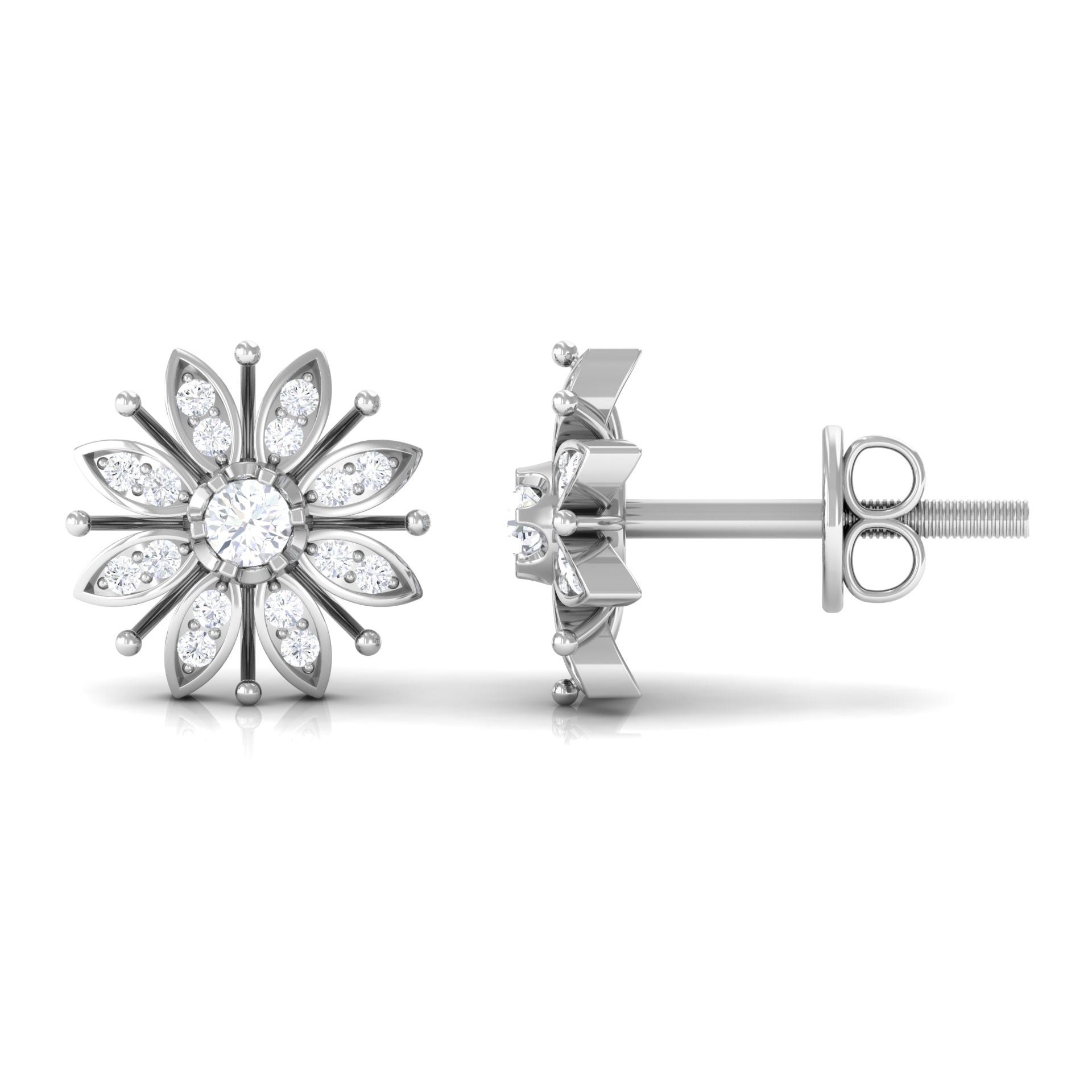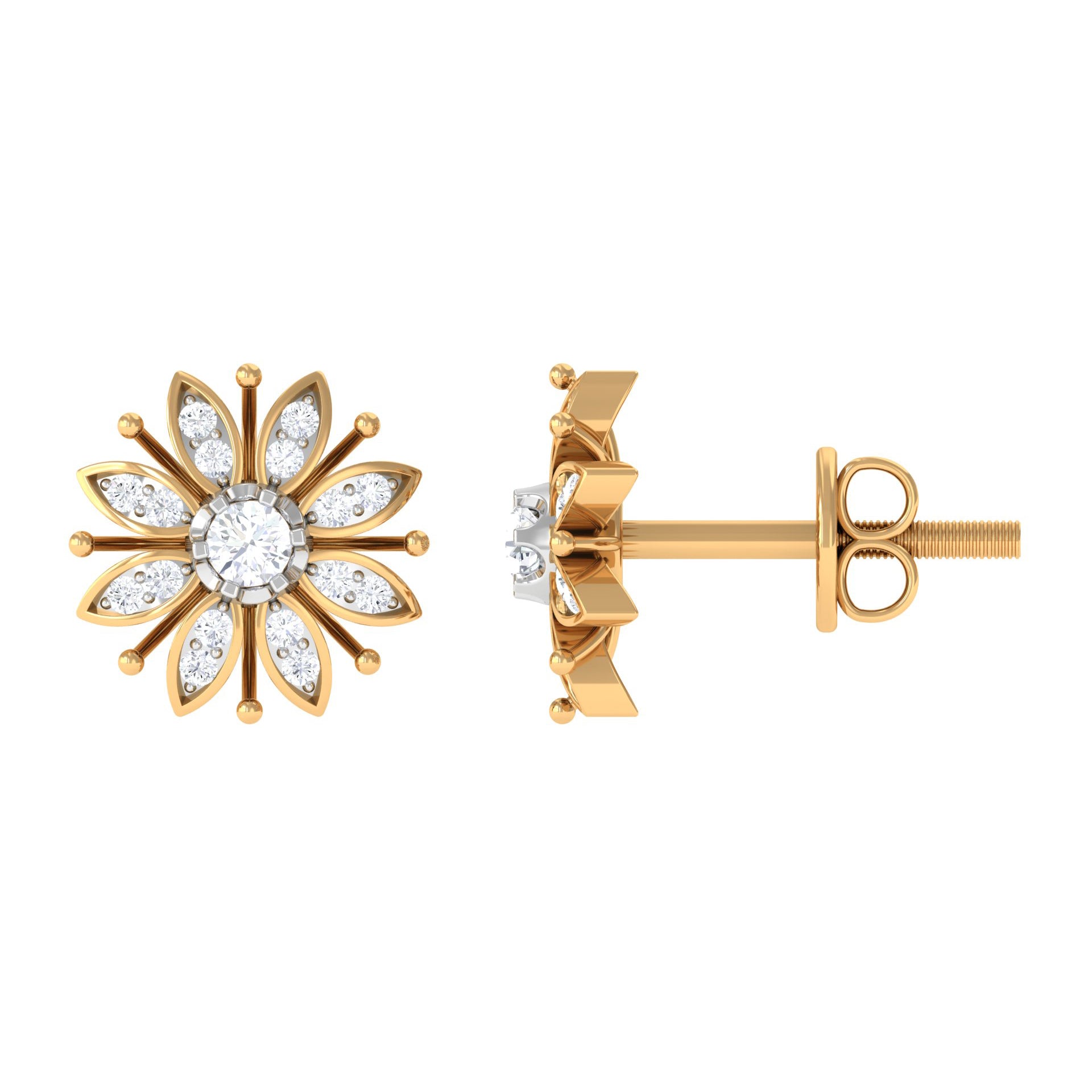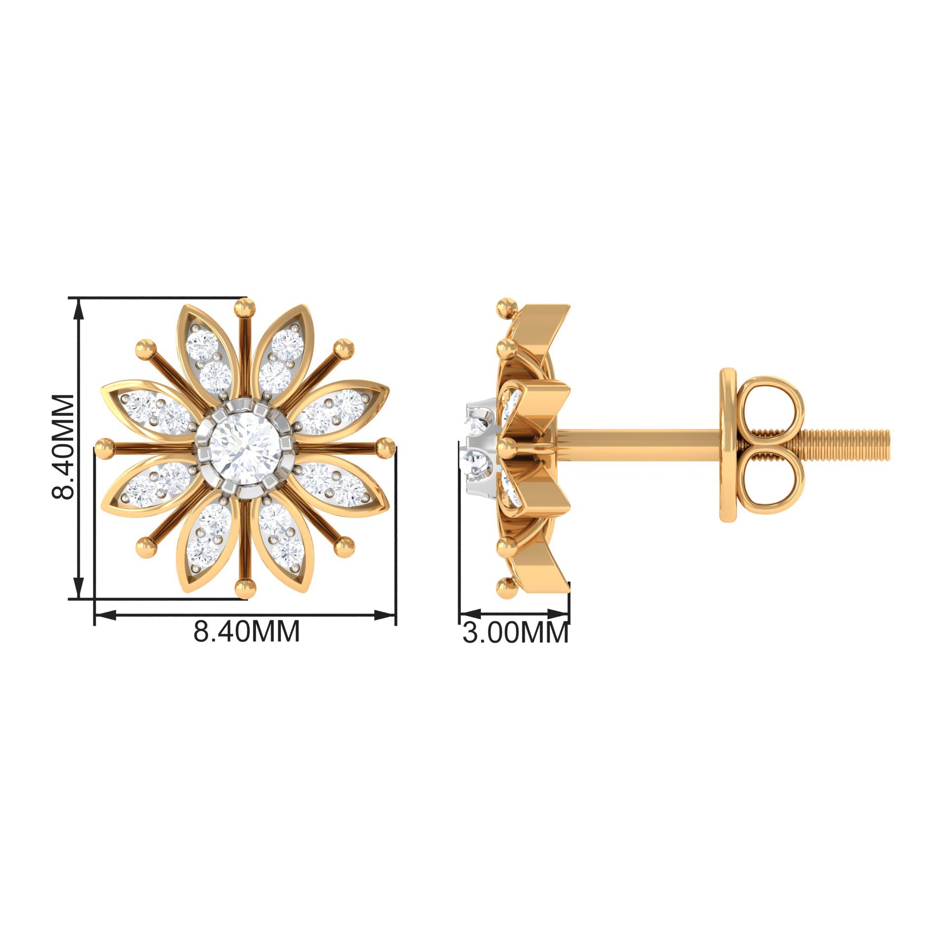 Indulge in the delicate charm of floral elegance with these Flower Stud Earrings, designed to bring a soft yet captivating sparkle to your everyday look. Each Earring blooms with a graceful Flower design, crafted to highlight every curve and petal. The sparkling Diamond stones placed within the design catch the light beautifully, adding a touch of radiance that feels fresh, feminine and effortlessly stylish. Secured with Screw Back Closure, these Diamond Stud Earrings offer comfort and confidence from morning until night, making them perfect for workdays, weekend brunches, romantic dinners or special celebrations. Their versatile sparkle pairs seamlessly with everything, giving your outfit a graceful finishing touch without overwhelming your style. Presented in a signature jewelry box, these Diamond Flower Earrings make a thoughtful surprise for birthdays, anniversaries, holidays or simply to brighten someone’s day. Whether you are treating yourself or a loved one, these Diamond Earrings carry a timeless beauty that never fades.