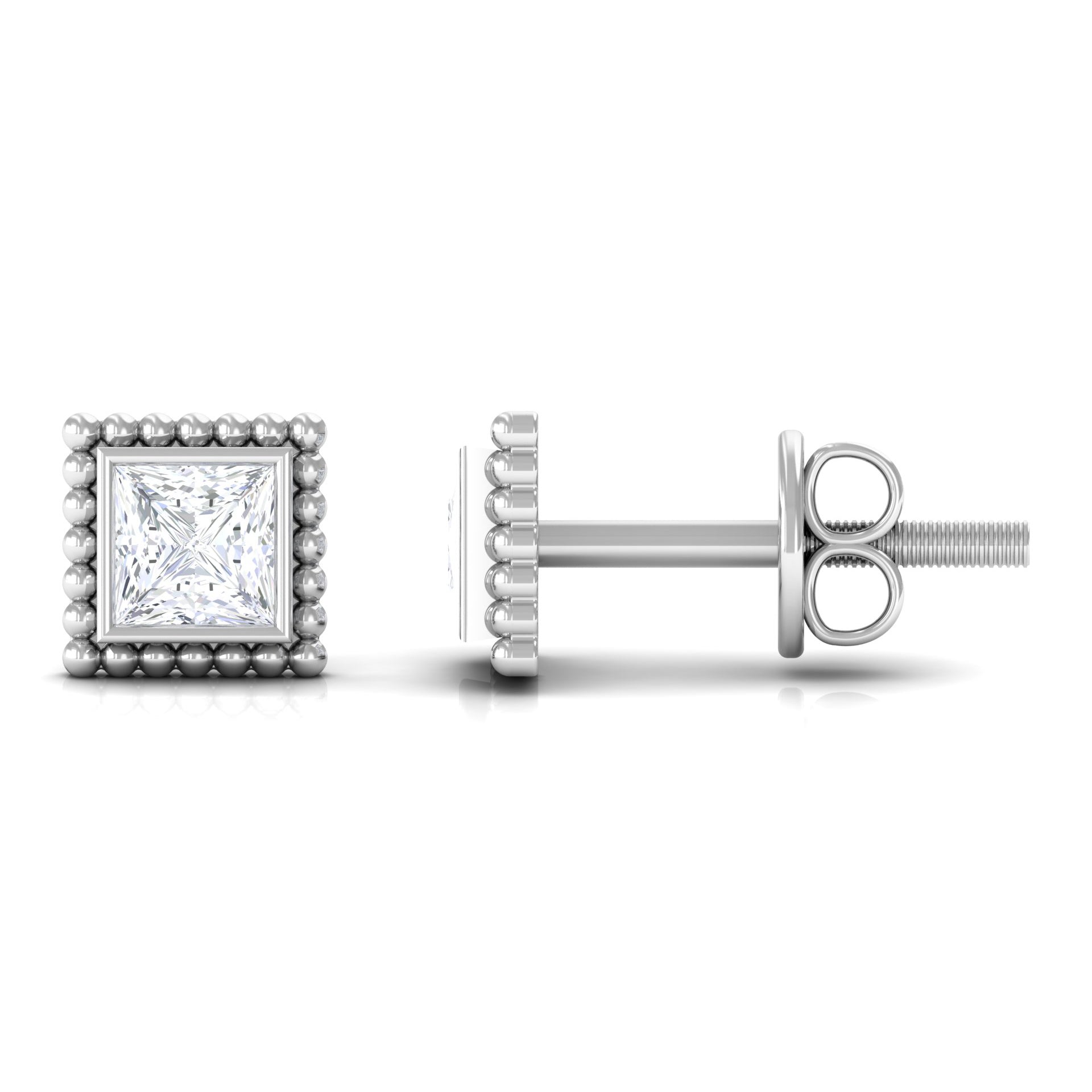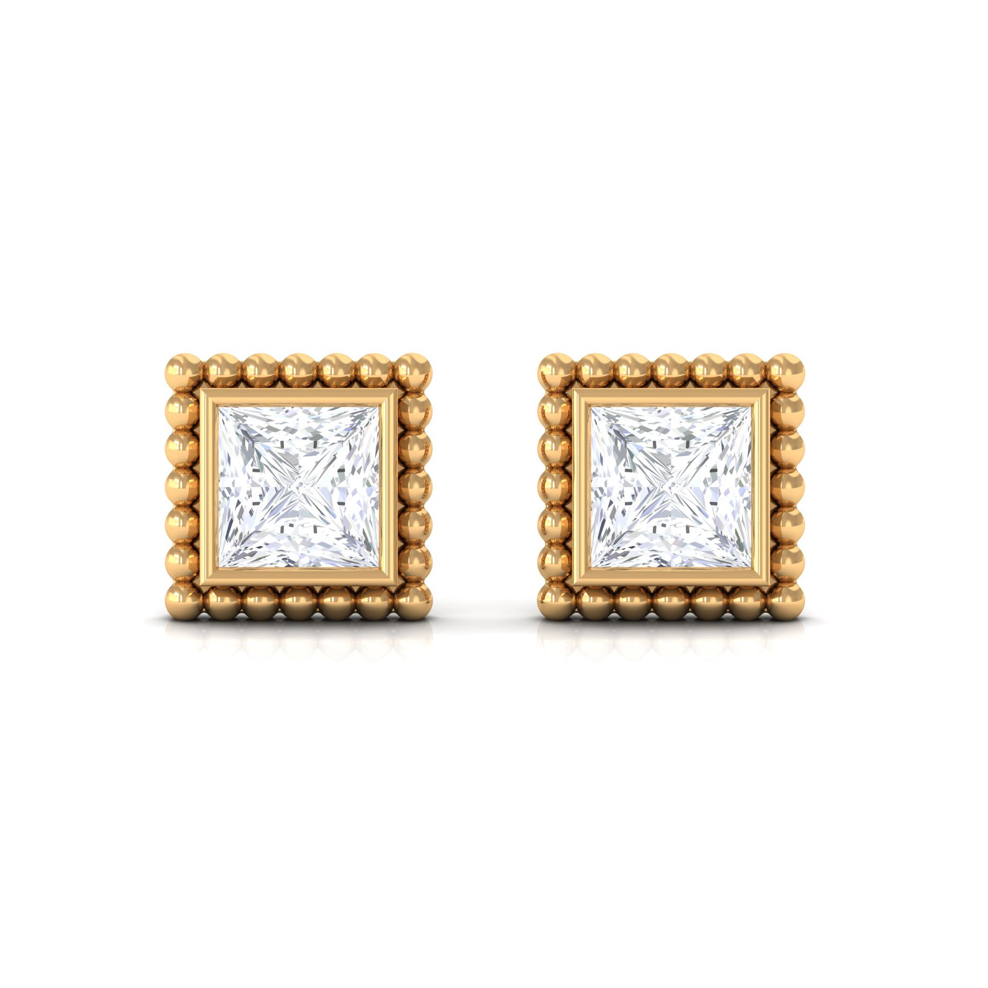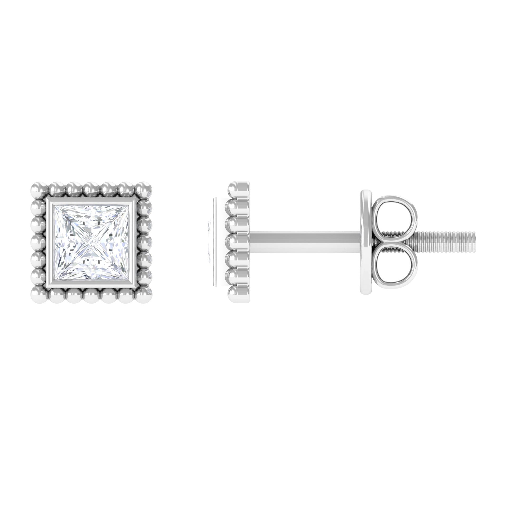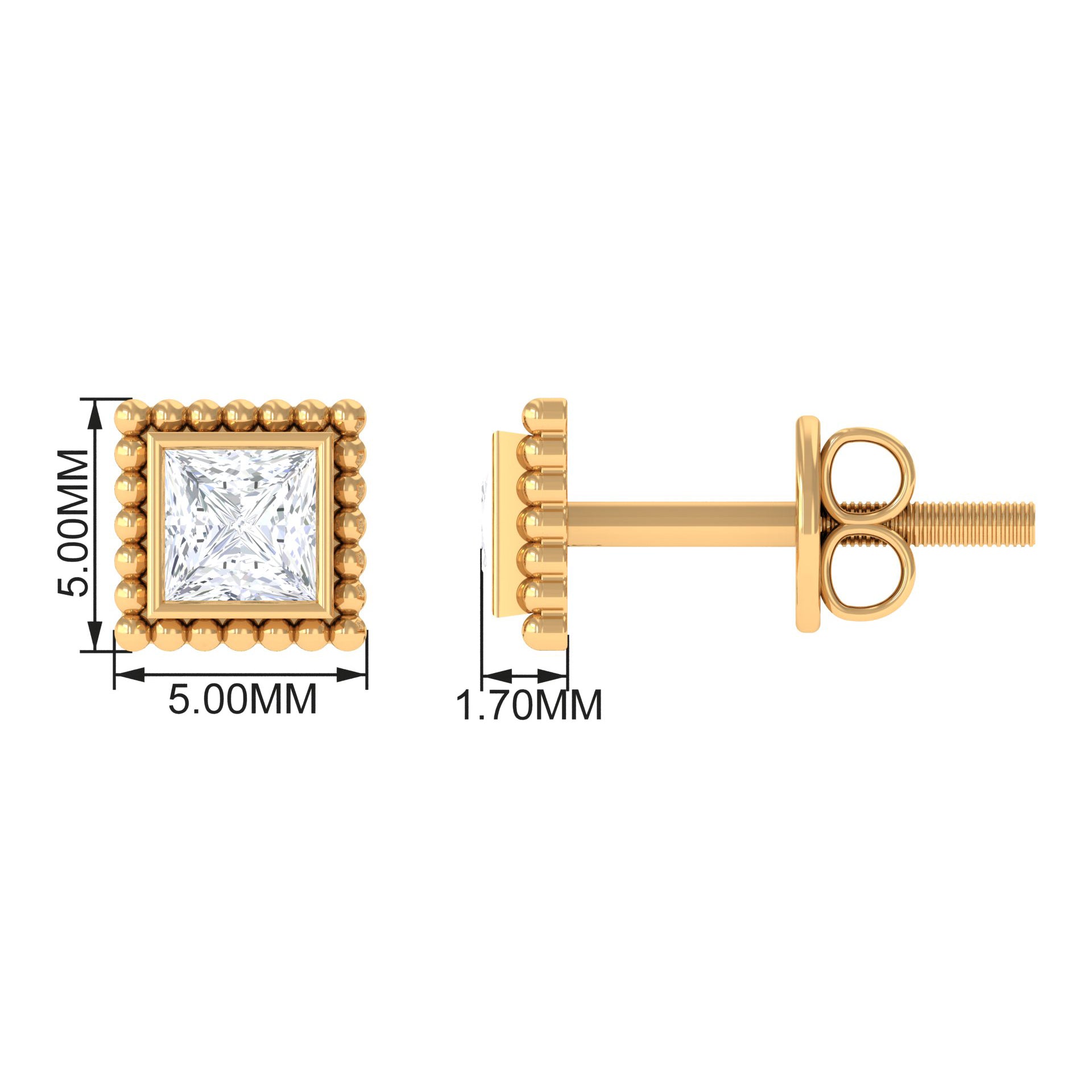 Exude sophistication with these Princess Cut Diamond Solitaire Earrings, expertly crafted in your choice of Yellow, White, or Rose Gold. Featuring a simple yet stunning Bezel Setting and secure Screw Back Closure, these Diamond Studs are sure to catch the eye at any event. Personalize these earrings as a birthday gift for your beloved, and watch as they light up with the timeless elegance of these exquisite Diamond Earrings.
