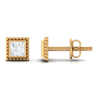 1/4 CT Real Diamond Solitaire Gold Beaded Stud Earrings