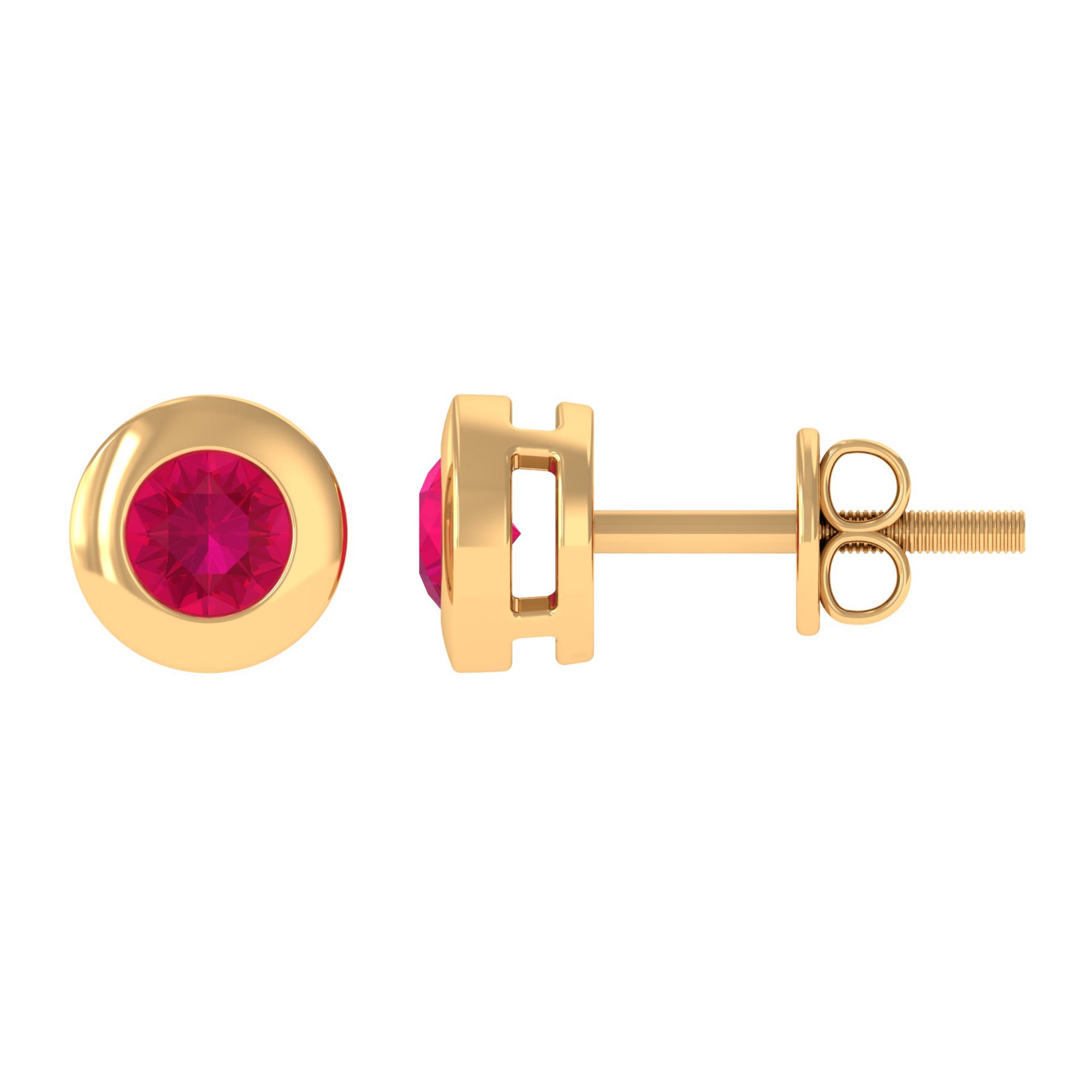 Elate your beloved on her Birthday with these Solitaire Stud Earrings adorned with Round Cut Ruby in Bezel Setting. These Stud Earrings are crafted with Solid Gold for an opulent appeal.
