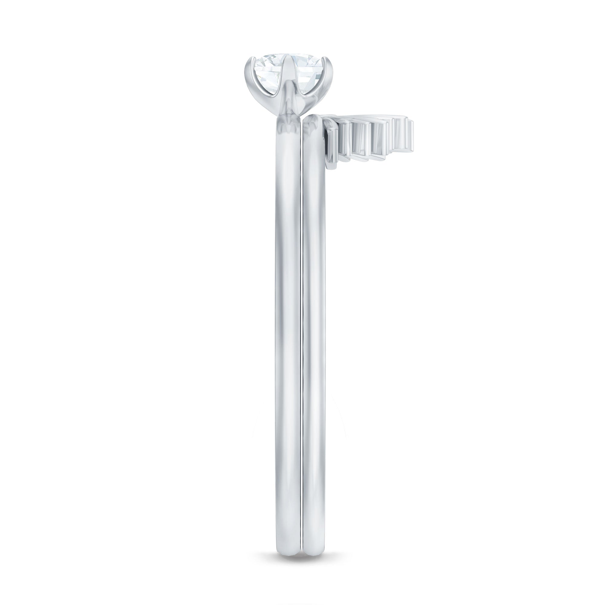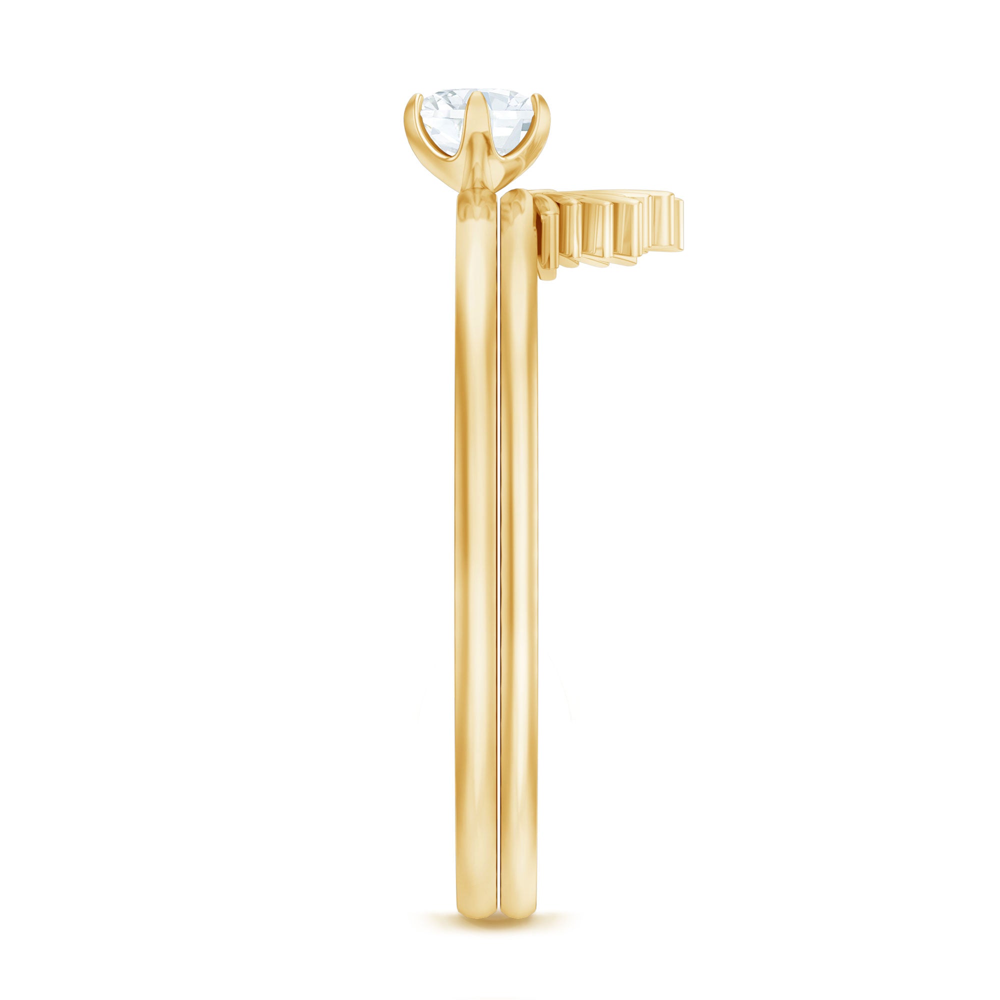 Sunburst style Wedding Ring Set is crafted in Gold for luxurious appeal. This Diamond Bridal Ring Set is an enchanting piece of fine jewelry, it has timeless appeal which is truly alluring. This Floral Gold Diamond Ring Set is a creative way to express your love to your partner to be.