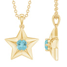 Upgrade your jewelry collection with this stunning Star Pendant featuring a Round Cut Sky Blue Topaz at its center, set in a Prong Setting. Expertly crafted in Solid Gold, it adds a celestial touch to your look.