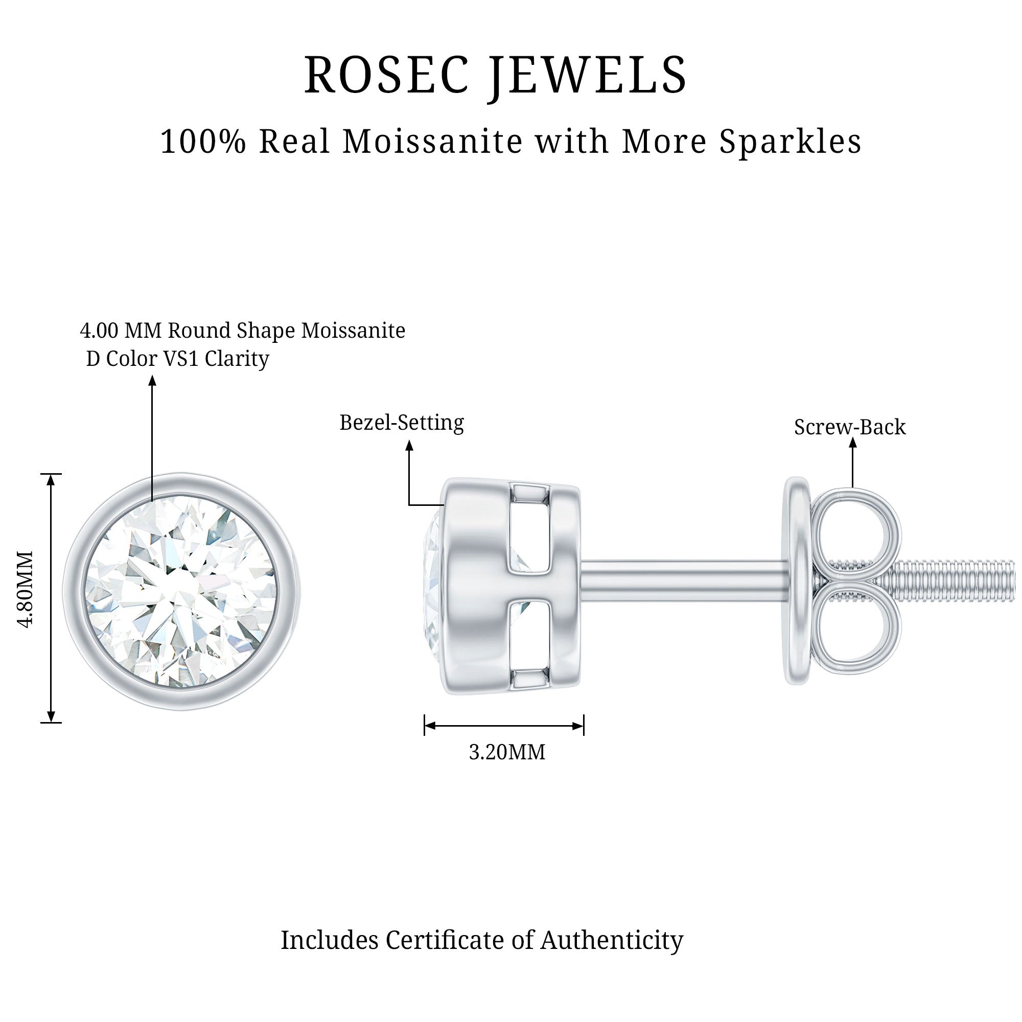 1/4 CT Solitaire Stud Earrings with Bezel Set Moissanite