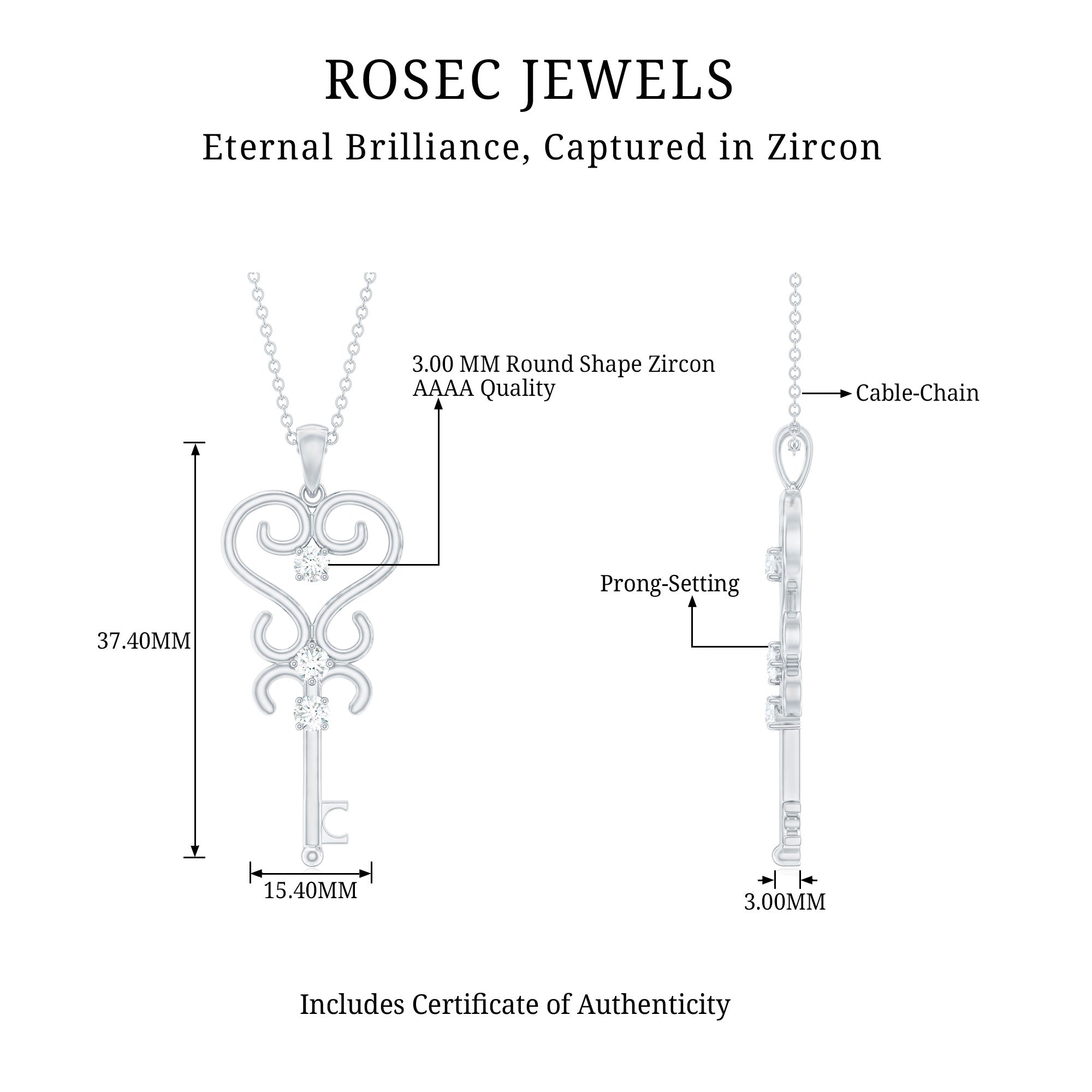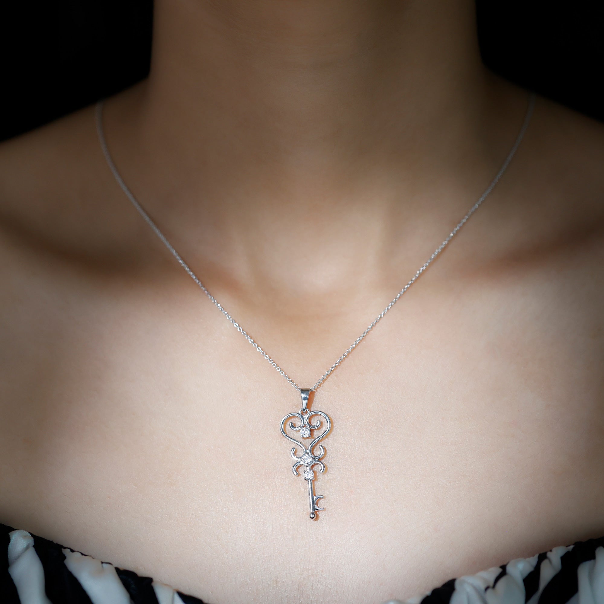 1/4 CT Vintage Zircon Key Pendant Necklace