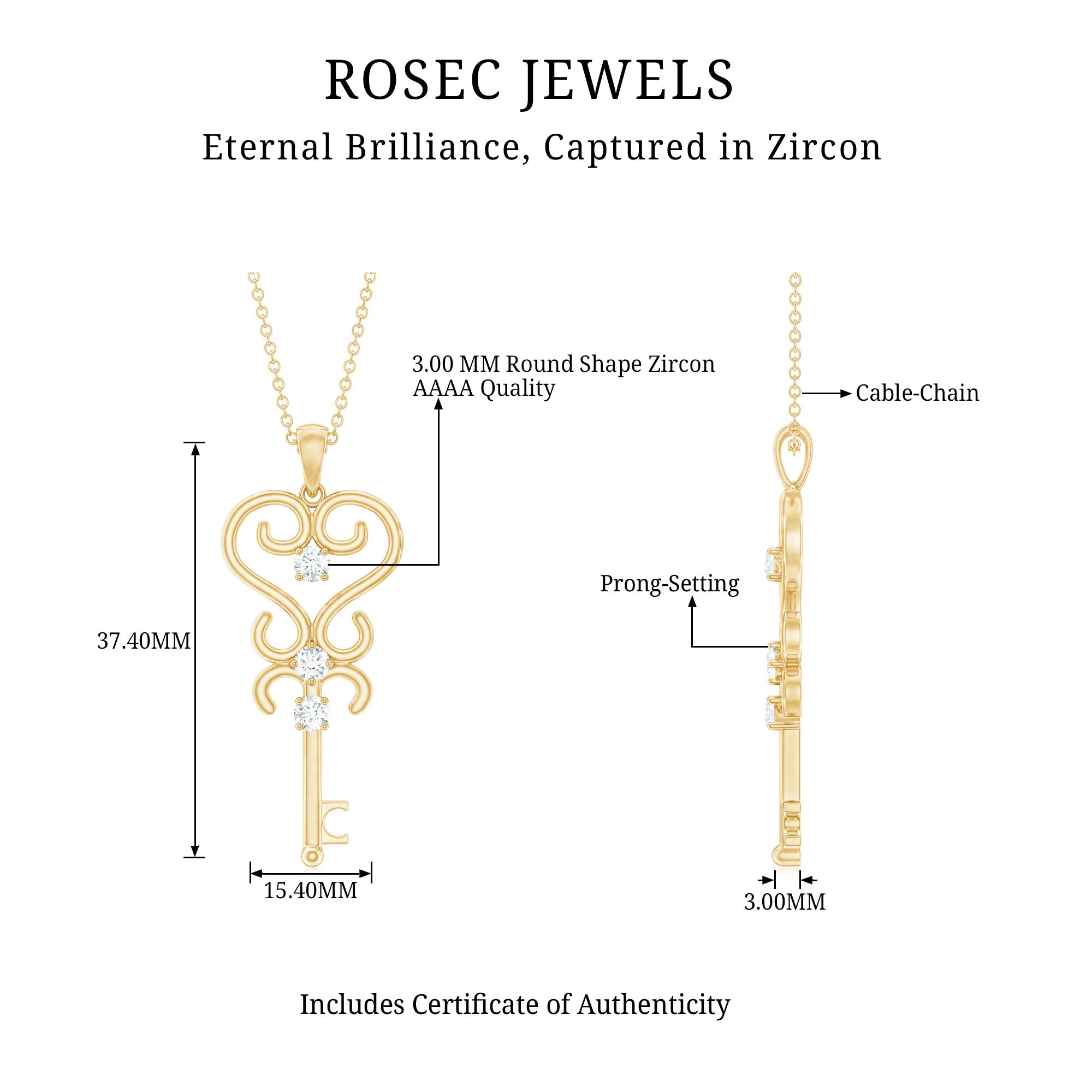 The Vintage Key Pendant is crafted with Round Cut Zircon Gemstone set in Prong Setting, crafted in Solid Gold Metal. This Key Pendant will be a perfect Mothers Day gift for a woman who will love and admire it a lot.