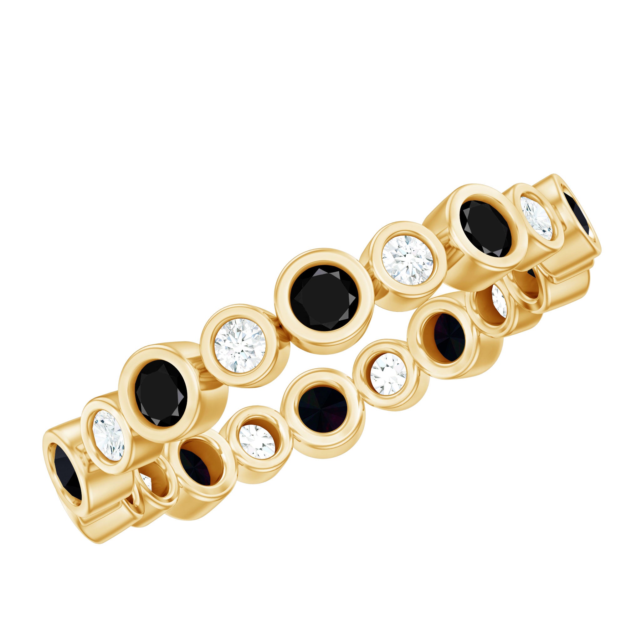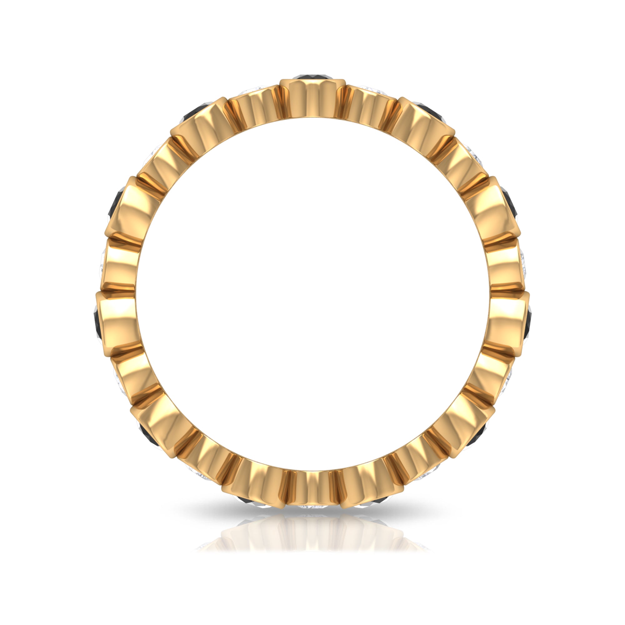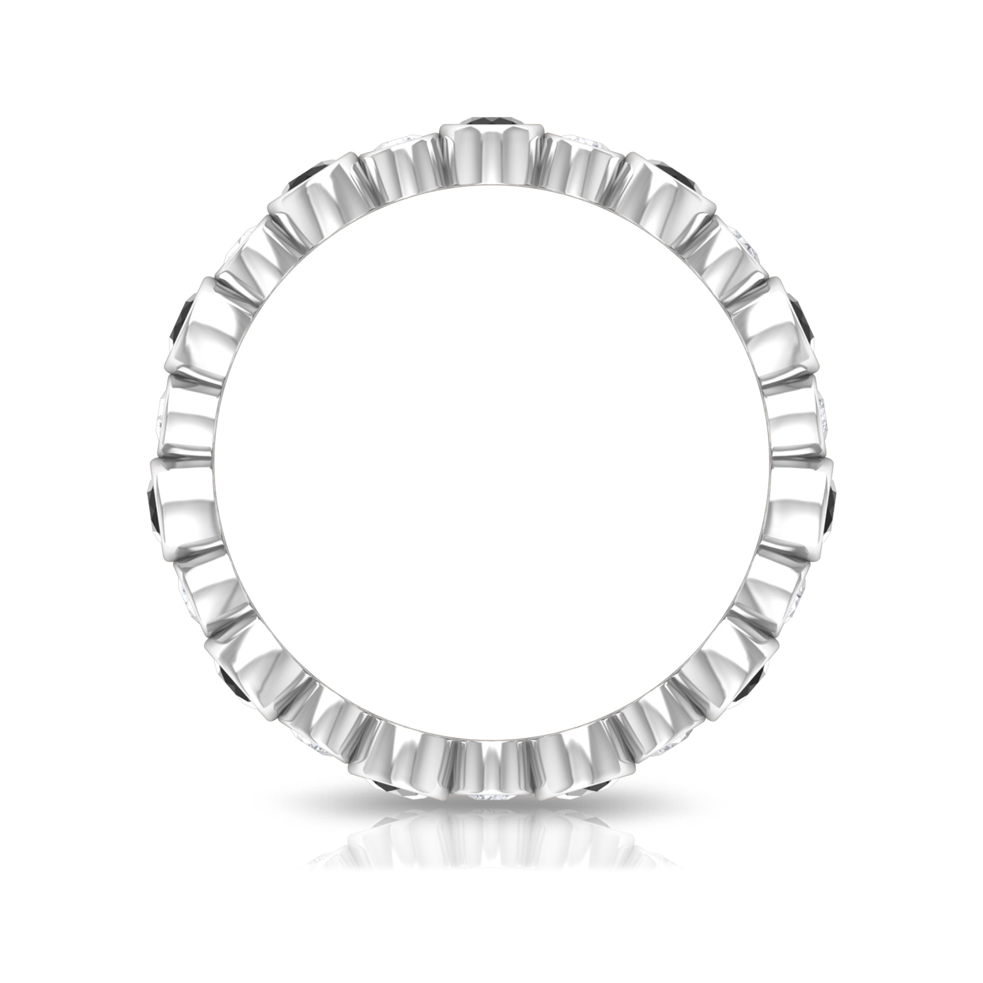 This eternity ring, perfect for Mothers Day, features round Black Diamond gemstones and regular Moissanites set in a bezel setting. The unique uneven design makes this Black Diamond ring truly stunning.