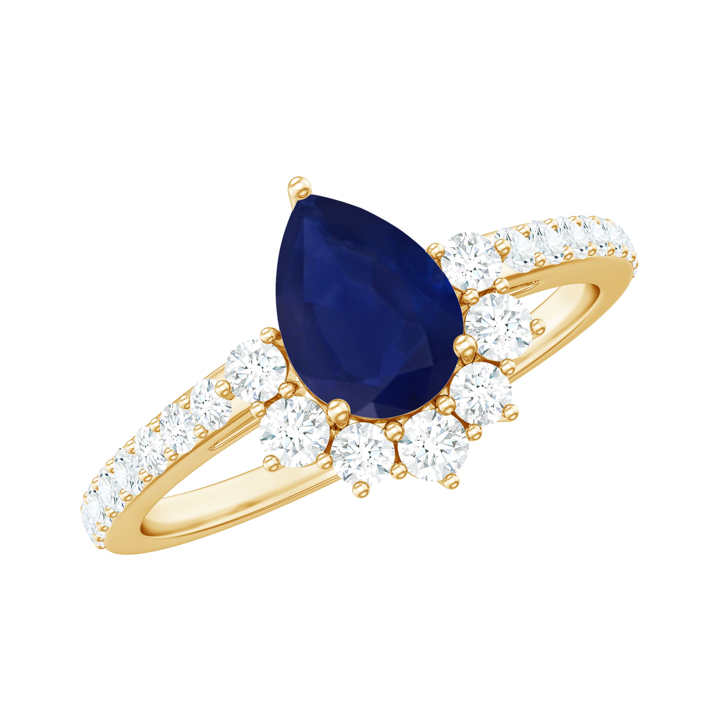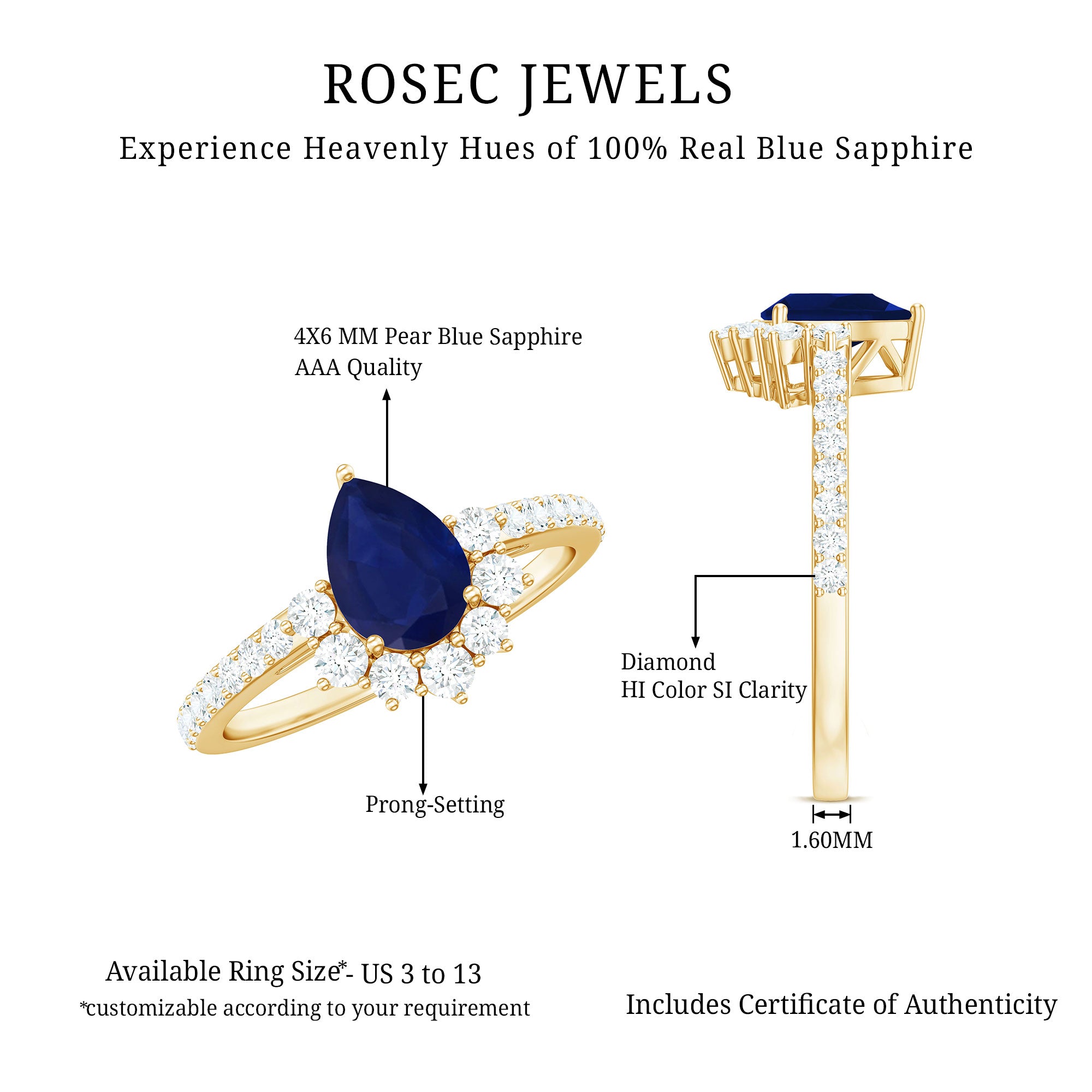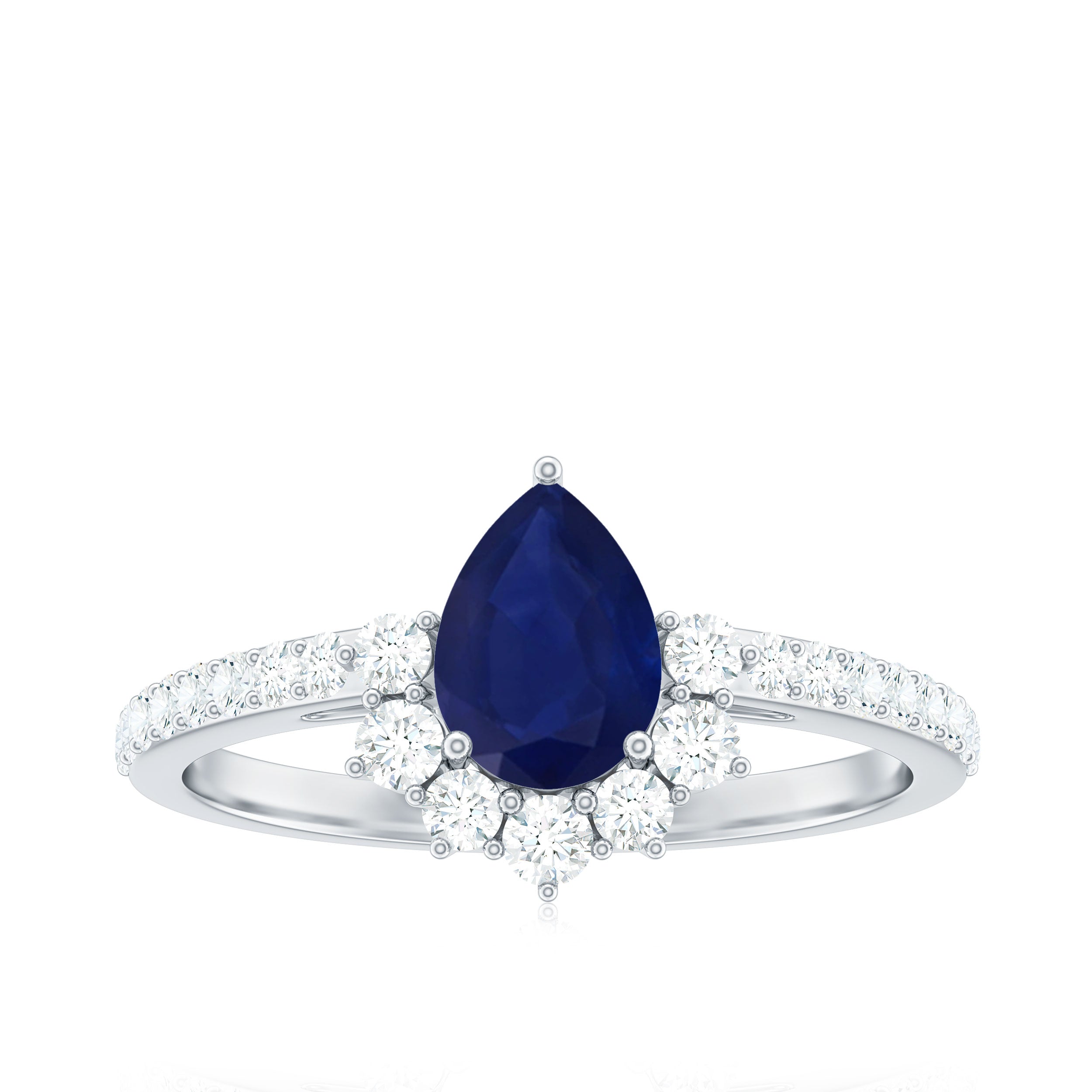 Blue Sapphire Teardrop Solitaire Ring with Diamond Accent