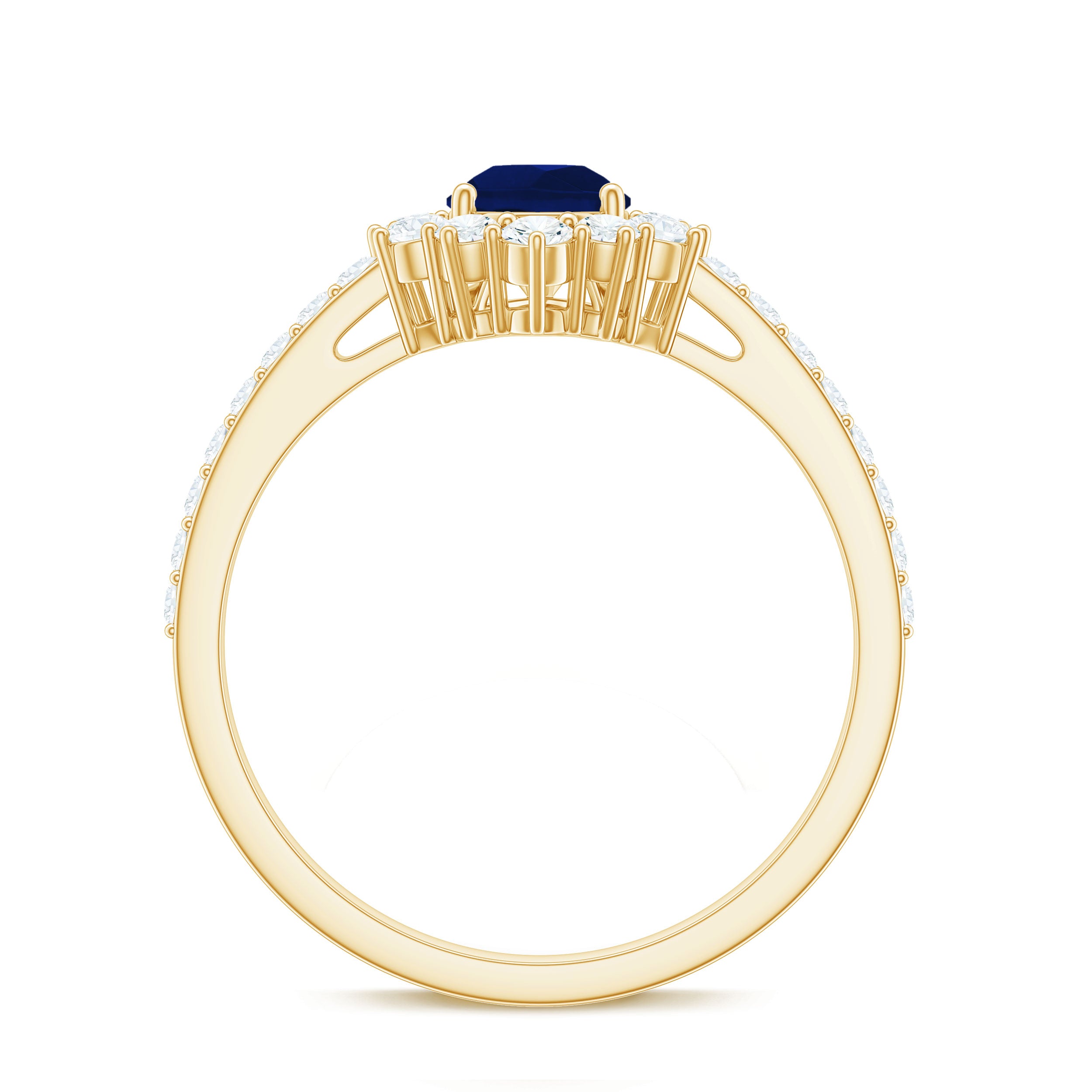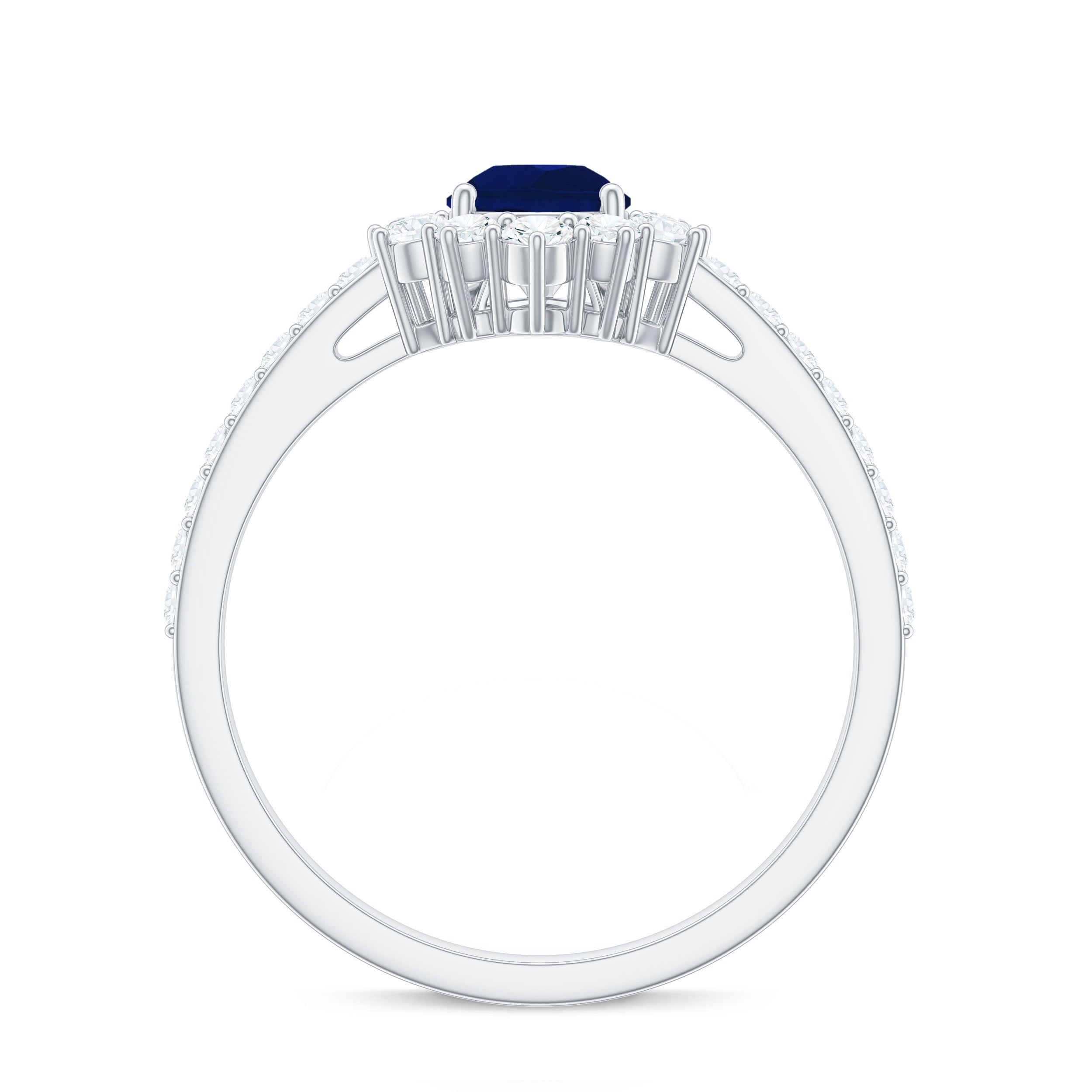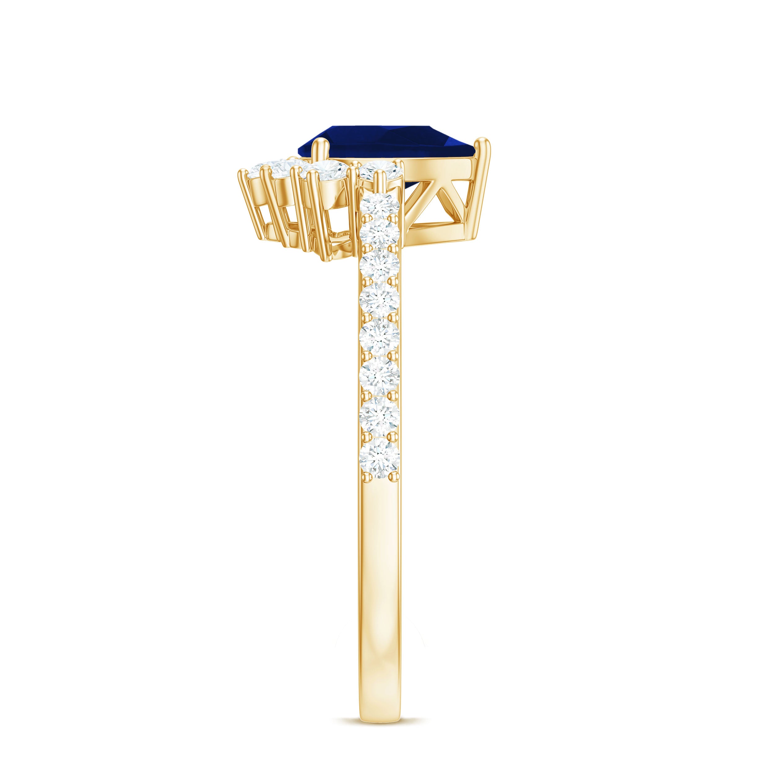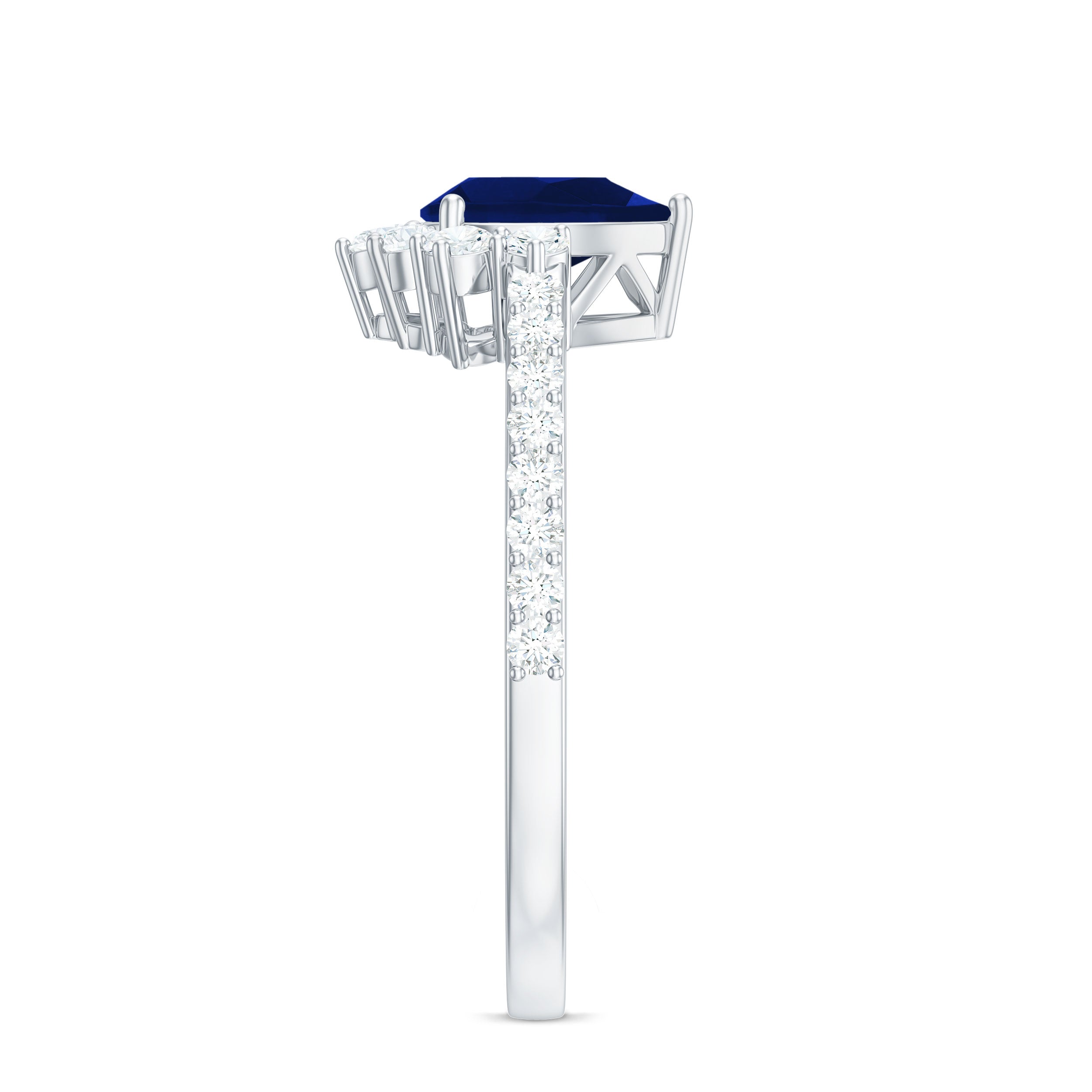 Blue Sapphire Teardrop Solitaire Ring with Diamond Accent
