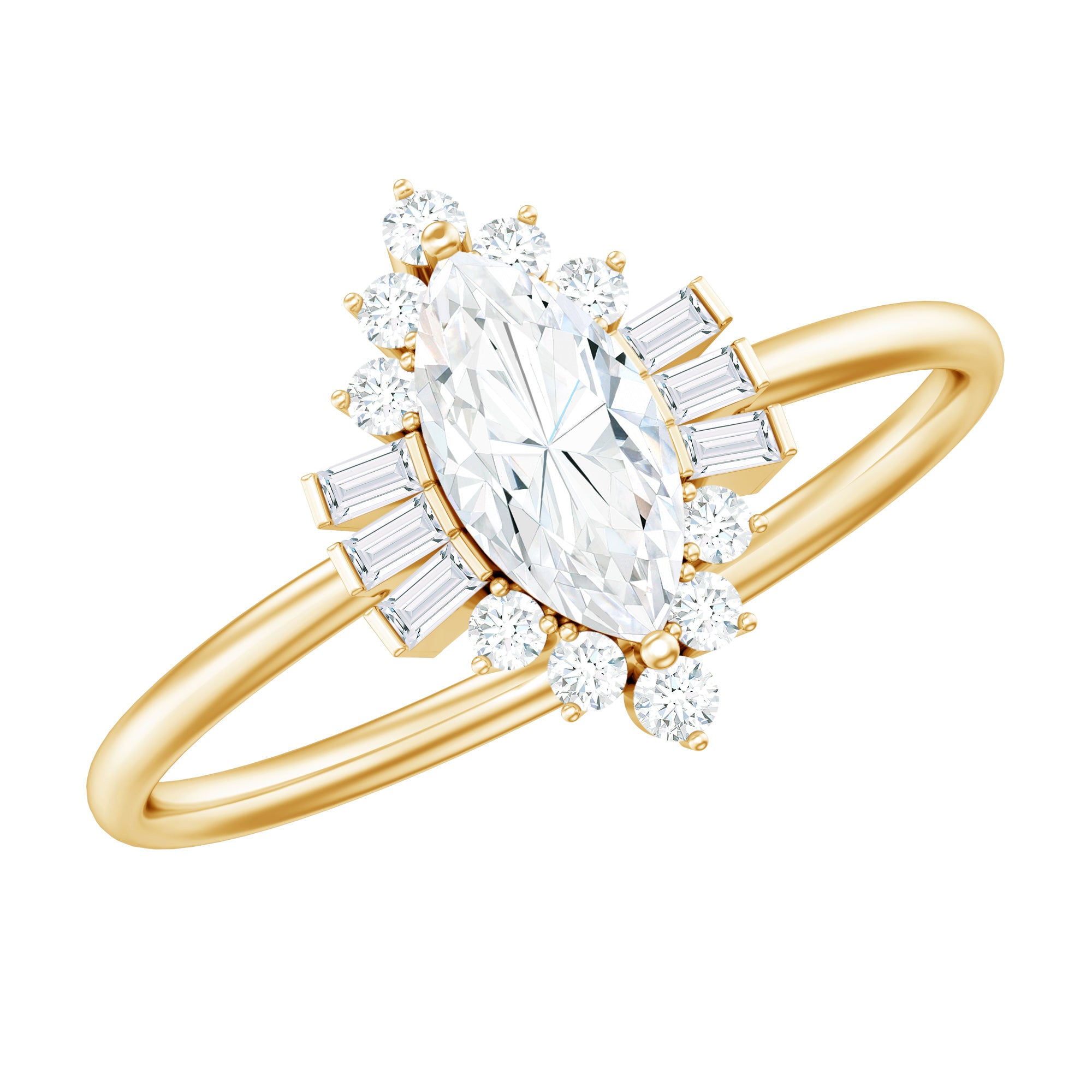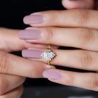This Moissanite Engagement Ring will make her feel special on the big day. This ring is embellished with the 6 MM Round Shape Moissanite delicately placed in Prong Setting encircled by a Halo of Petite Moissanite. This Classic Engagement Ring is inspired by the vintage jewelry collection. Declare your feelings for your partner by getting this Vintage Inspired Engagement Ring as it will stay close to her forever. The shank of the ring is decorated with Moissanite along with the beaded detailing. Celebrate your bond with this stunning Halo Ring that beholds the shine of D-Vs1 Quality Moissanite.
