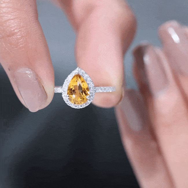 1.5 CT Citrine Teardrop Ring with Diamond Halo