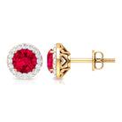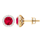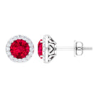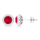 Feel Beautiful adorning this Classic Stud Earrings with Screw Back Finding Feature. The Pair of Stud Earring is embellished with 5 MM Lab Created Ruby and Diamond. Created Ruby studded as Center Stone that Look Great with Diamond as halo.