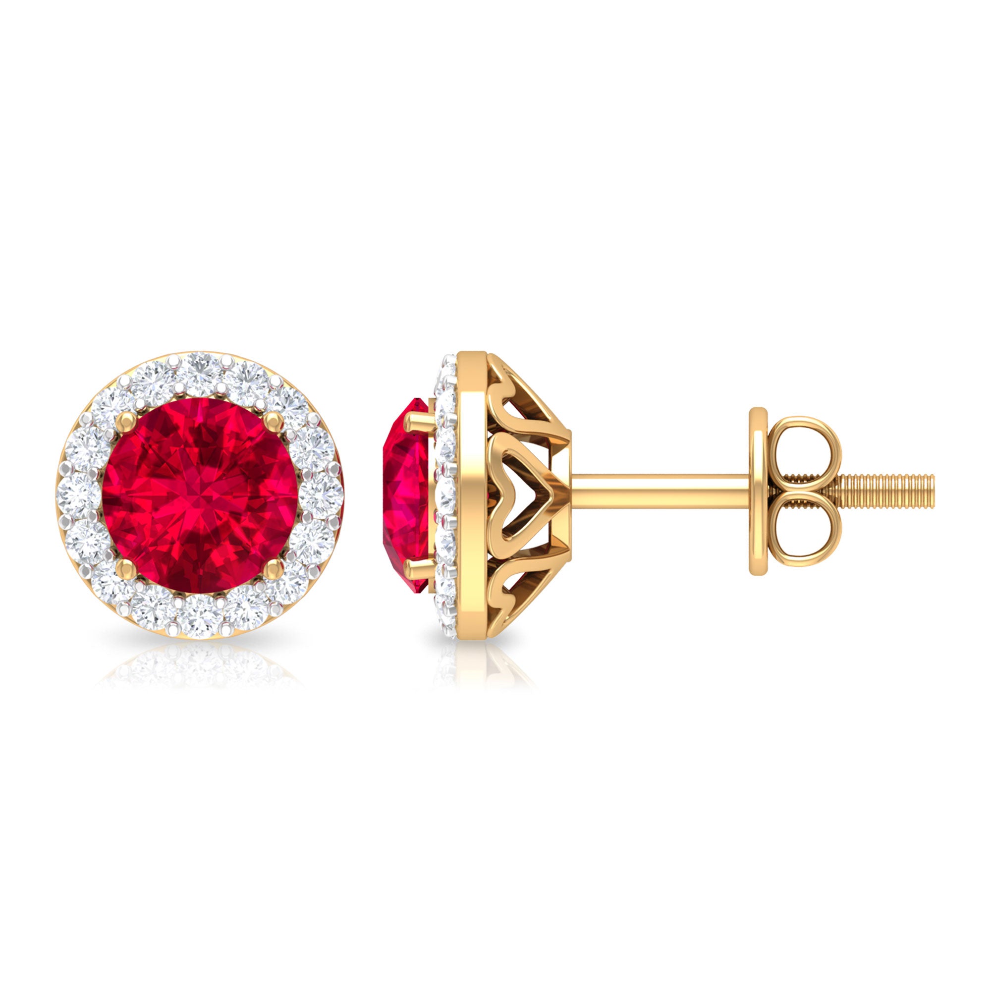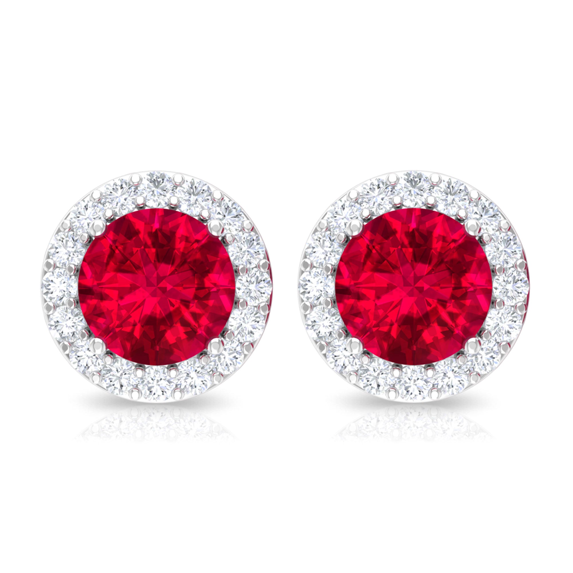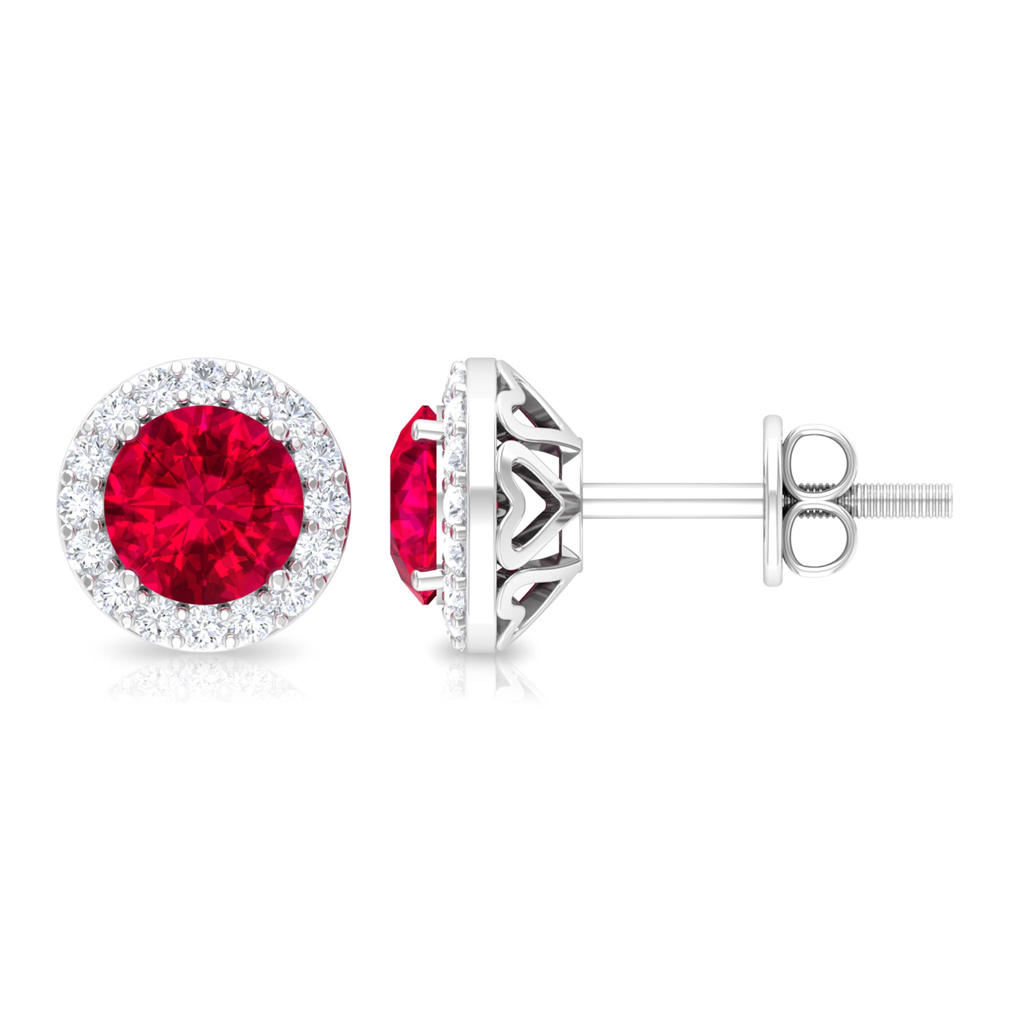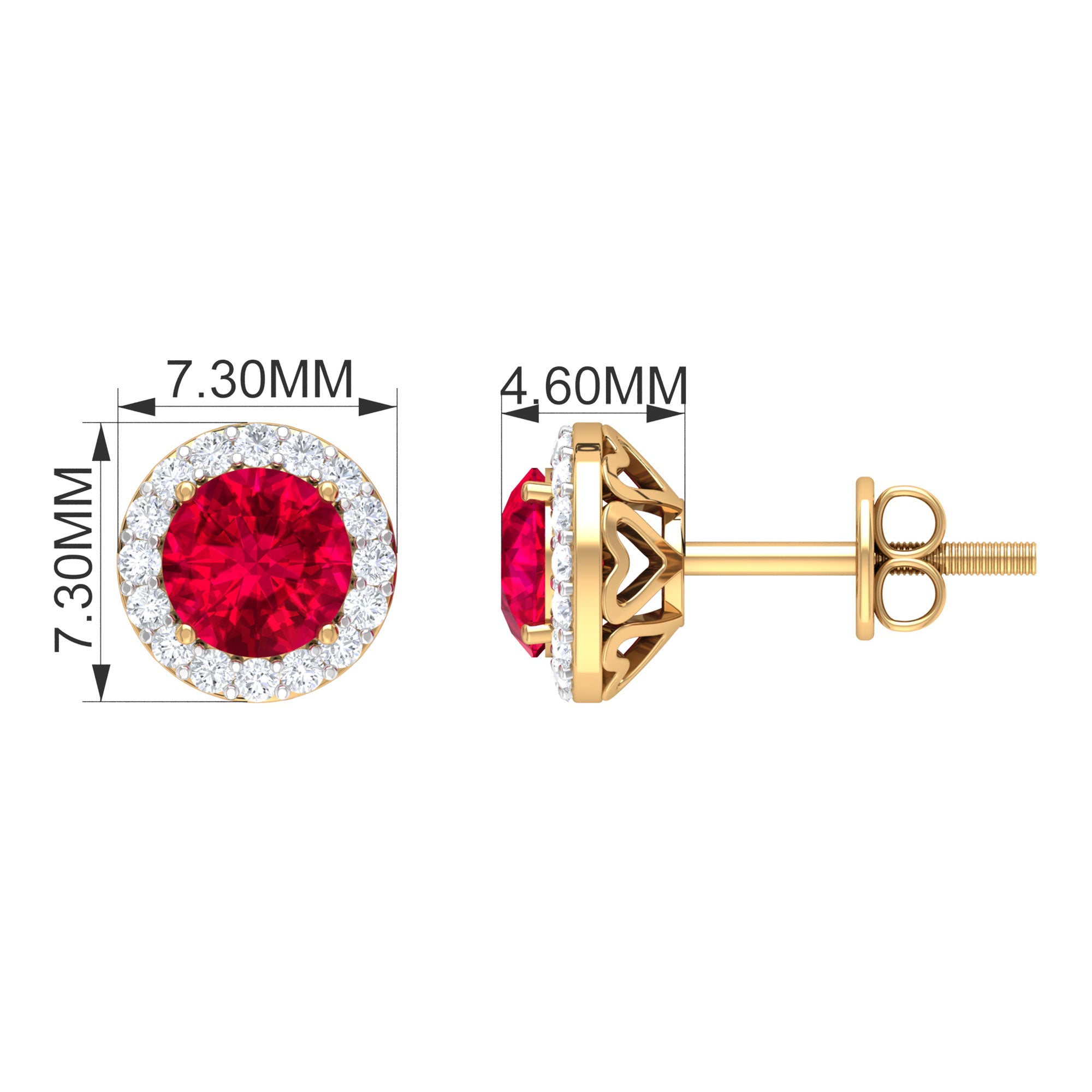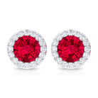 1.5 CT Lab Grown Ruby and Diamond Halo Classic Stud Earring
