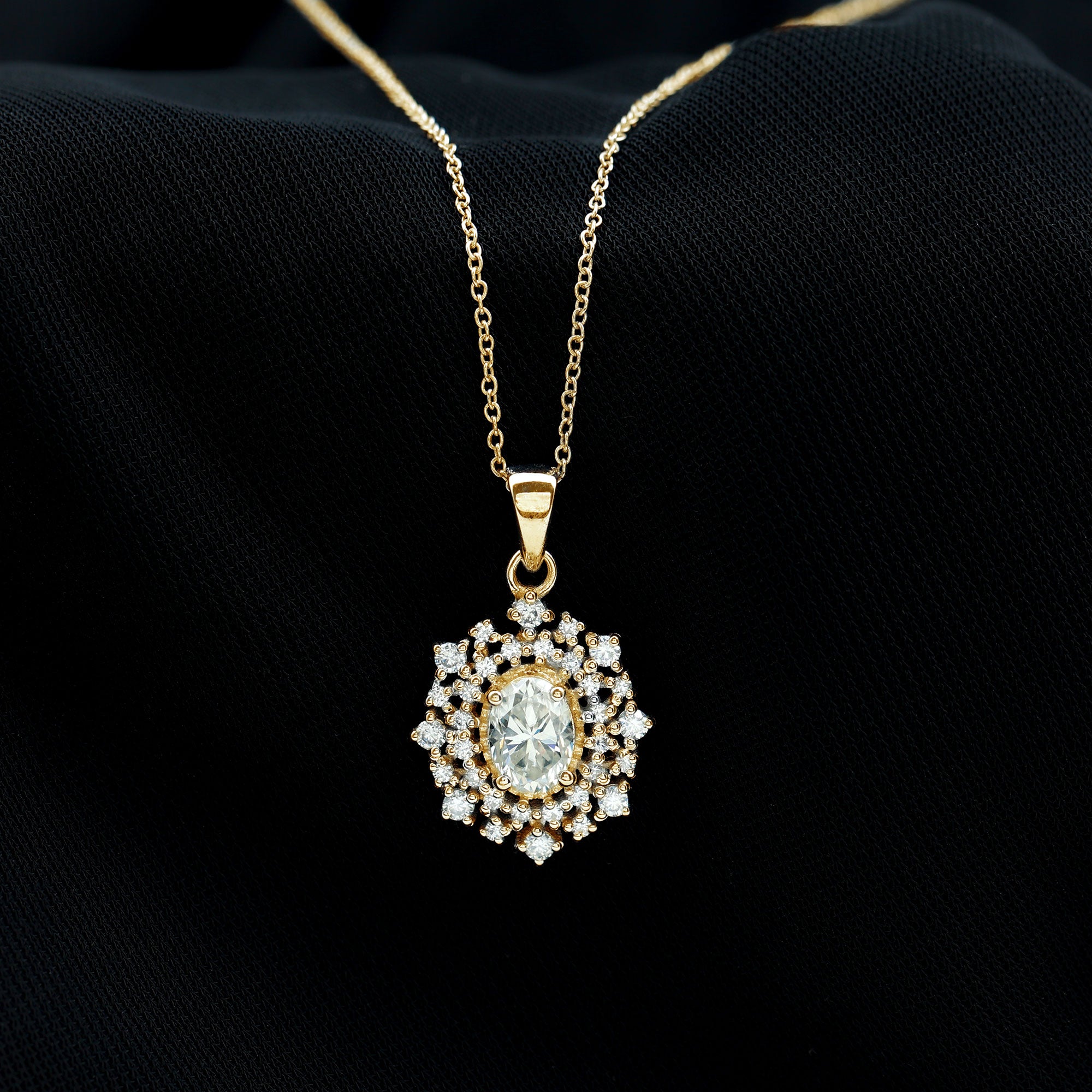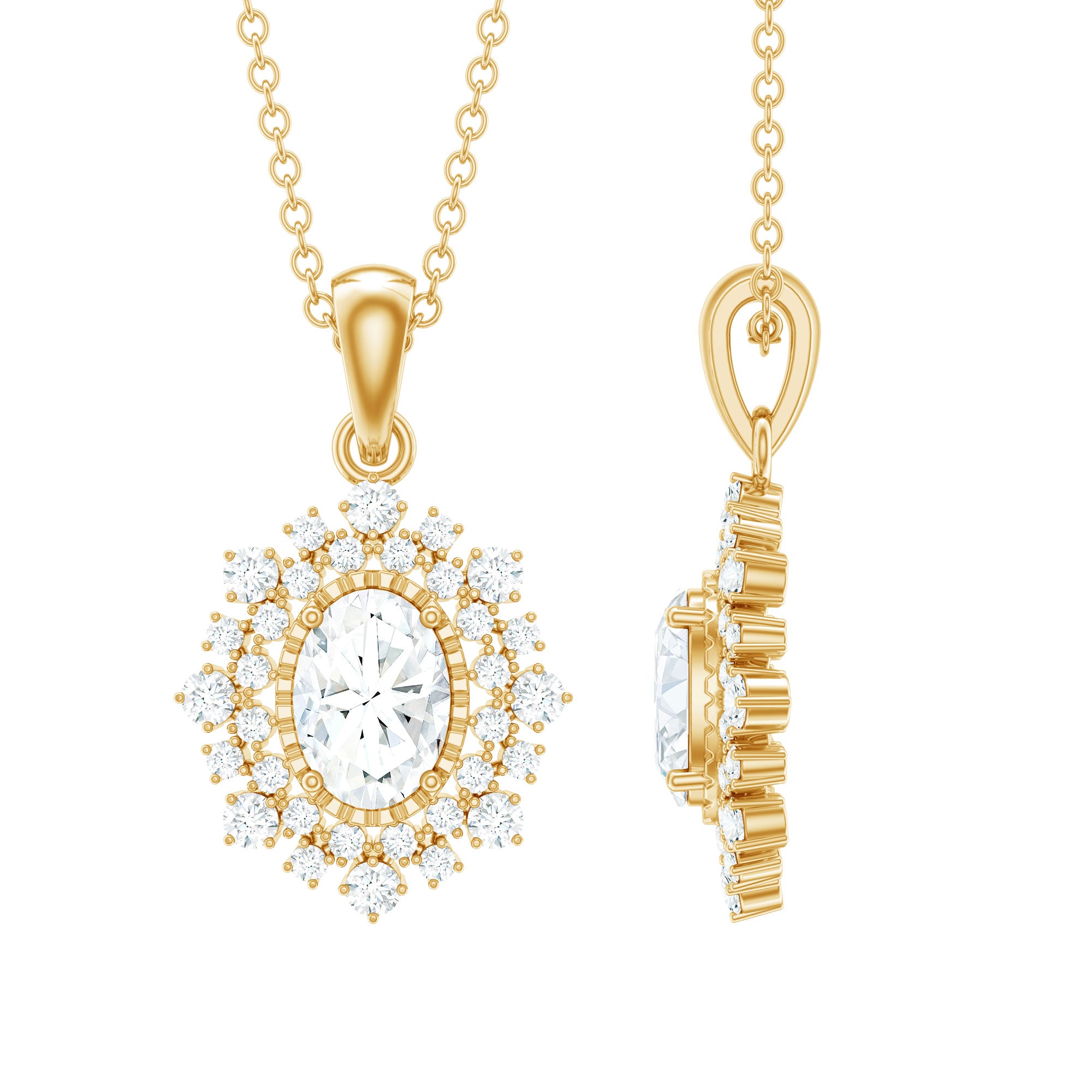 1.5 CT Oval Moissanite Halo Bridal Pendant in Gold