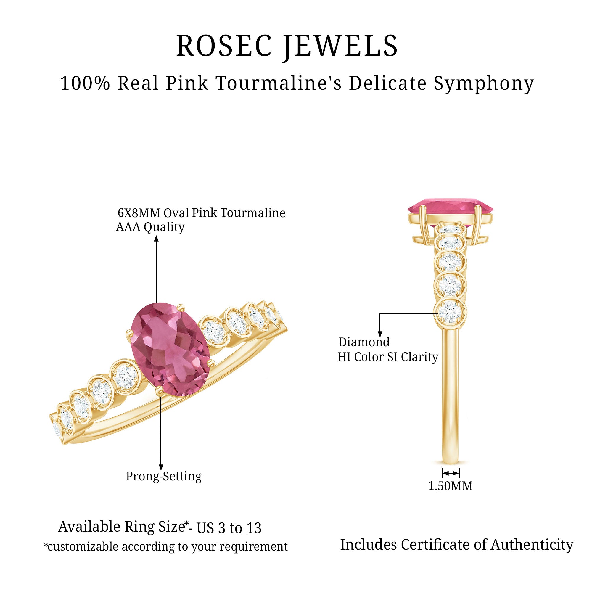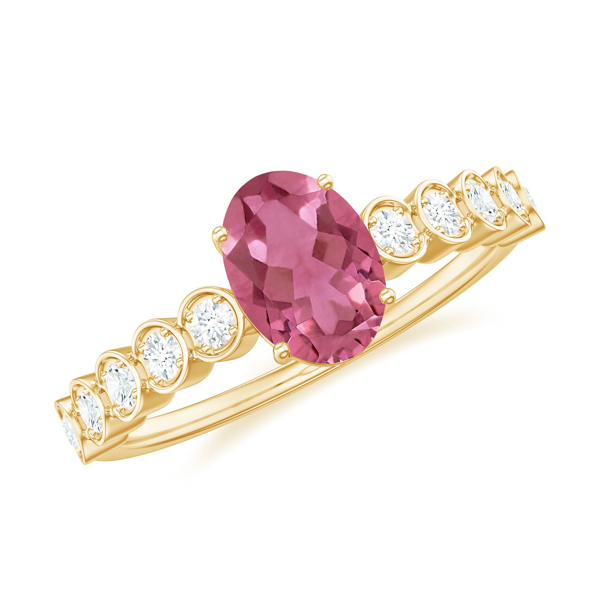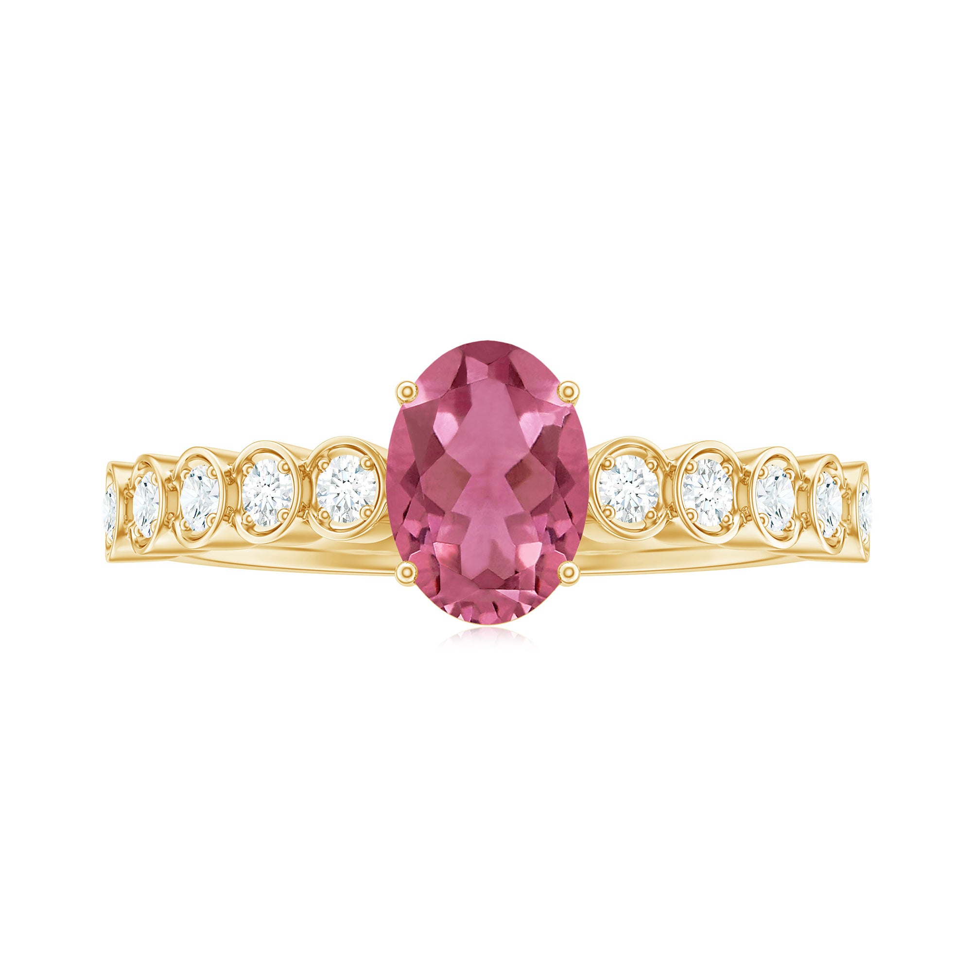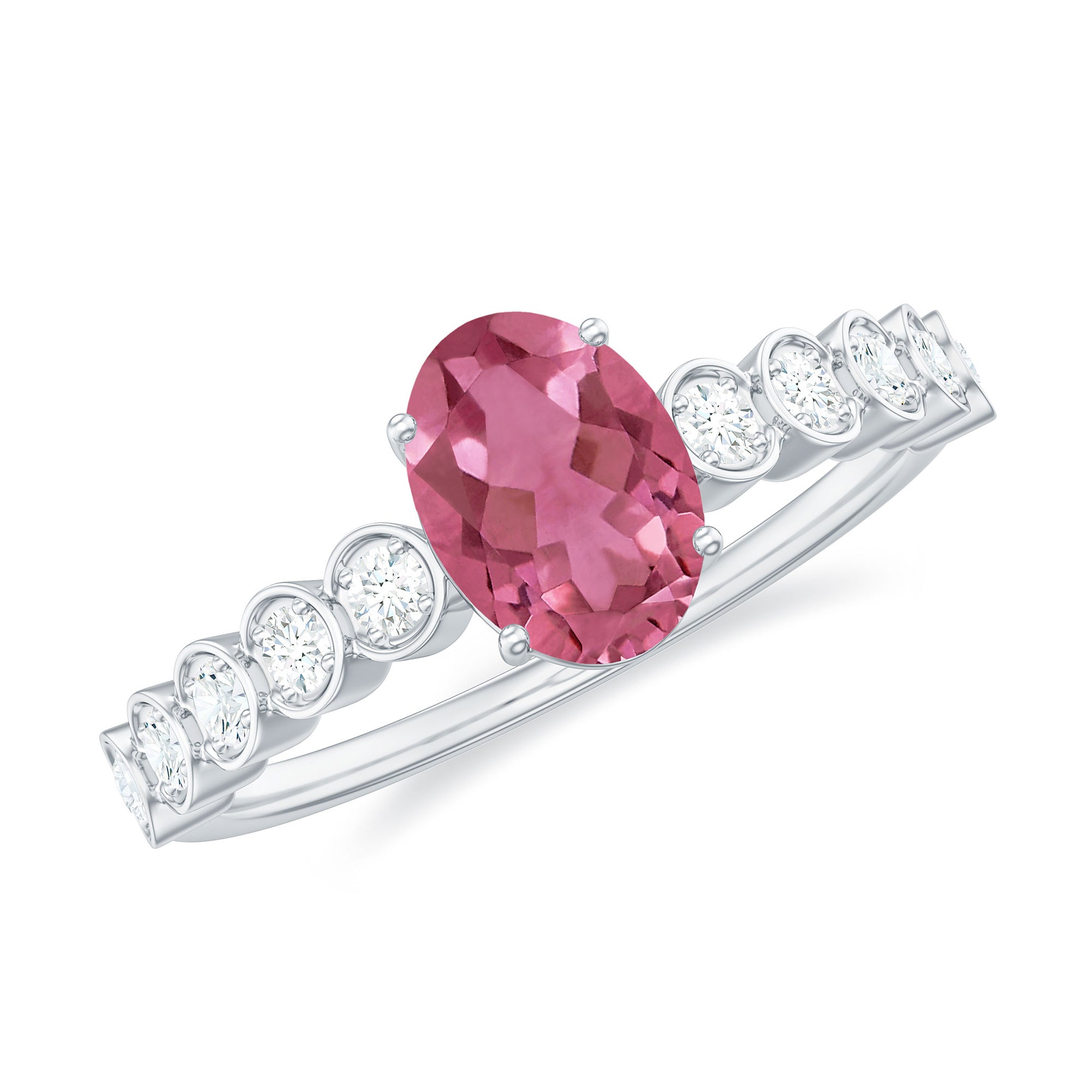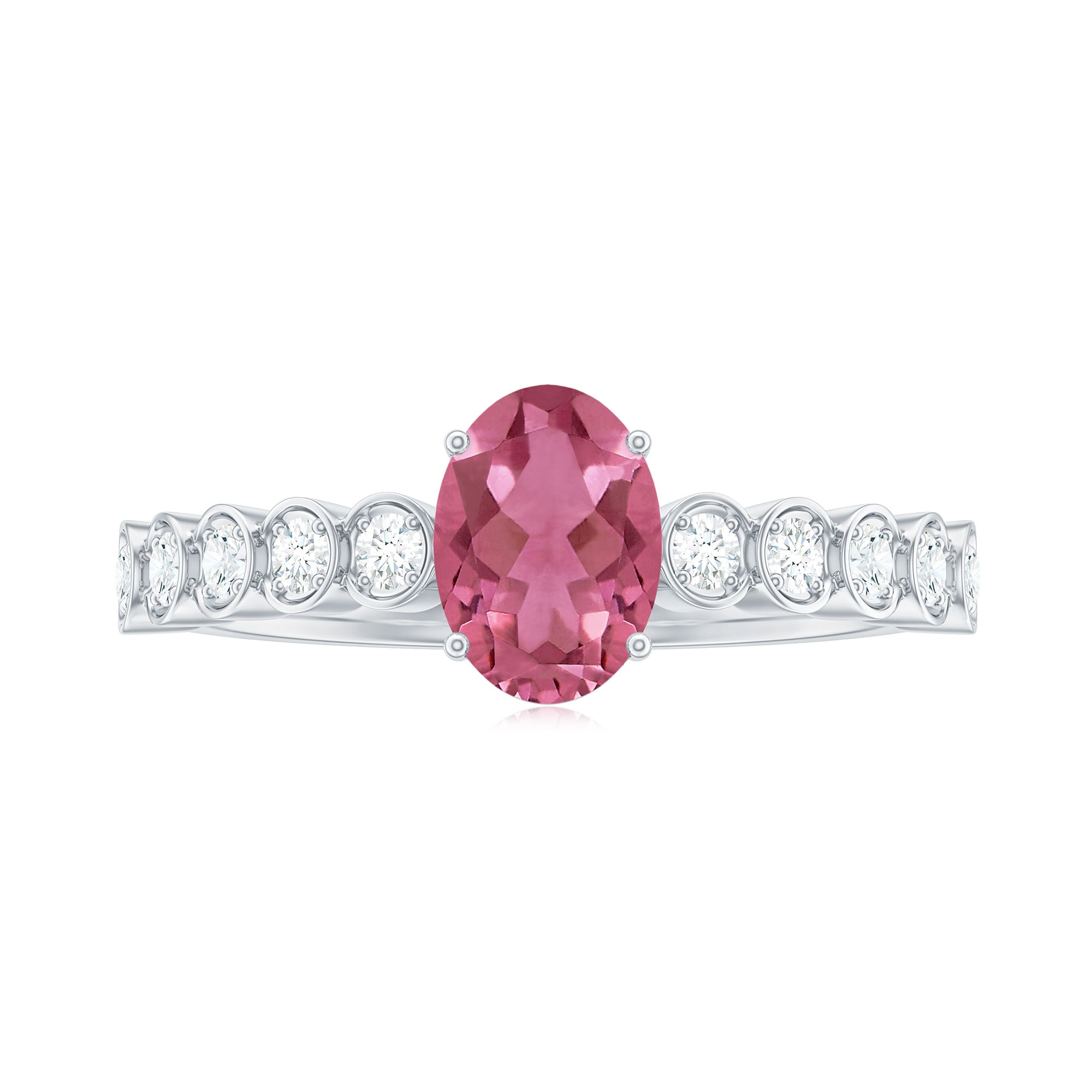 1.5 CT Oval Pink Tourmaline Solitaire Engagement Ring with Diamond