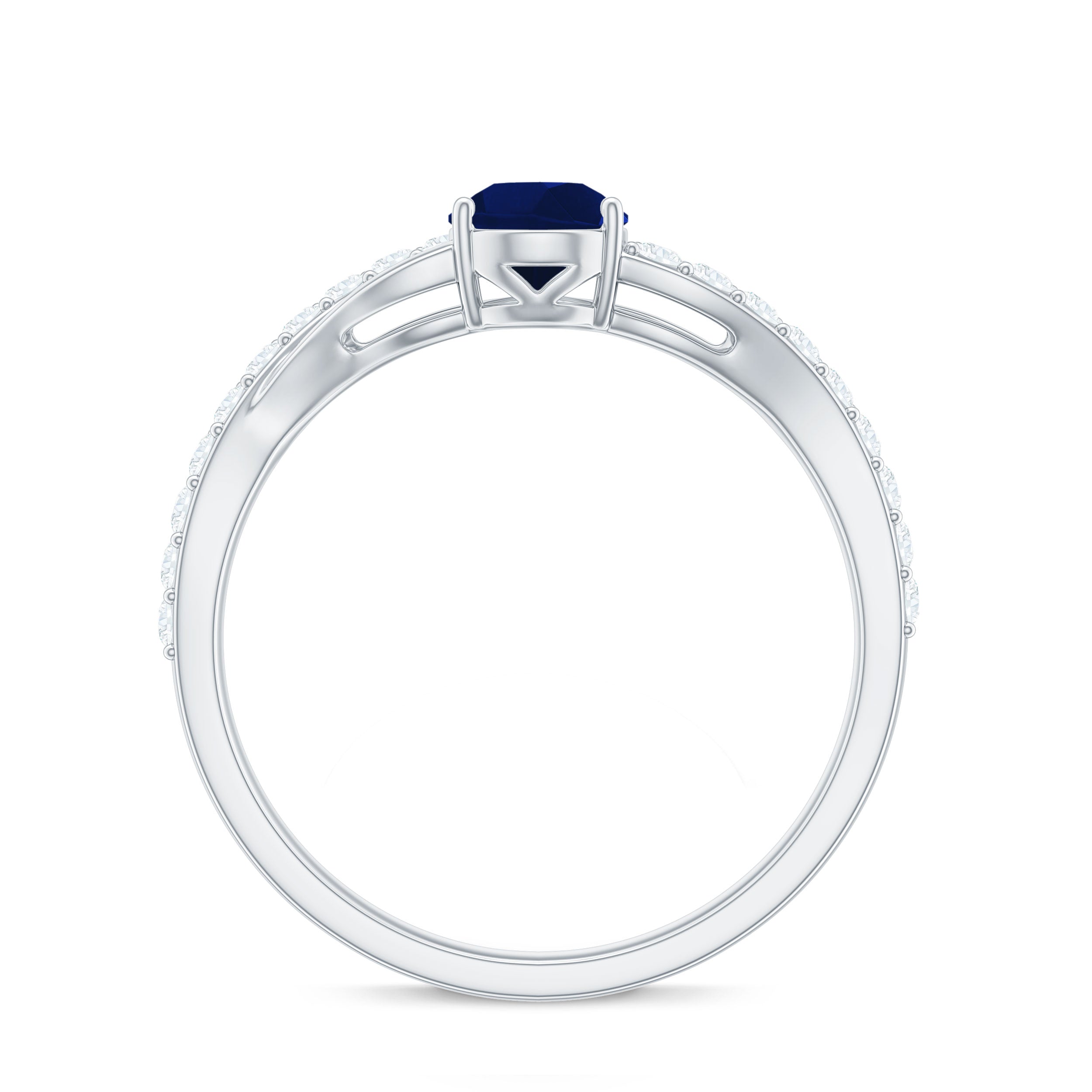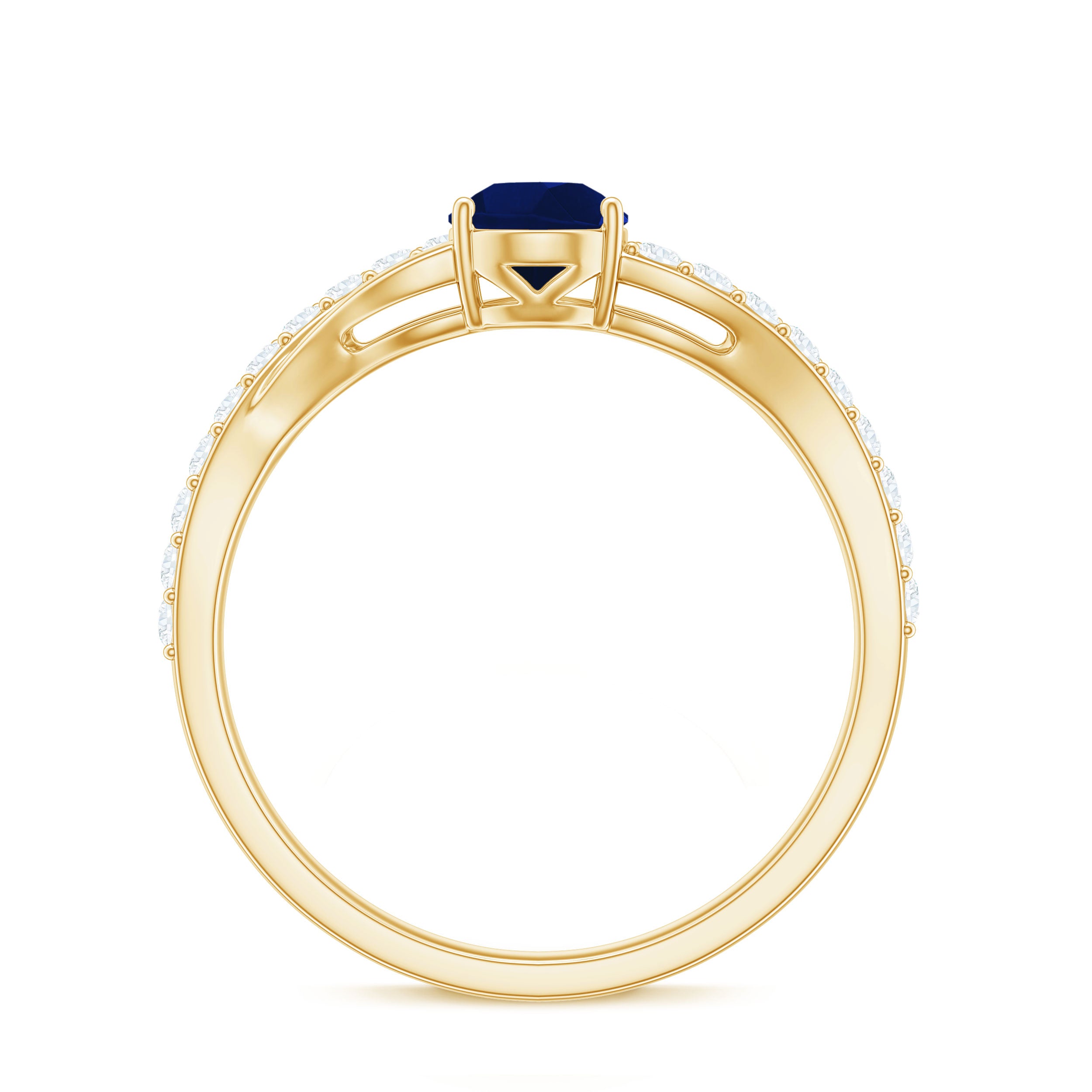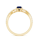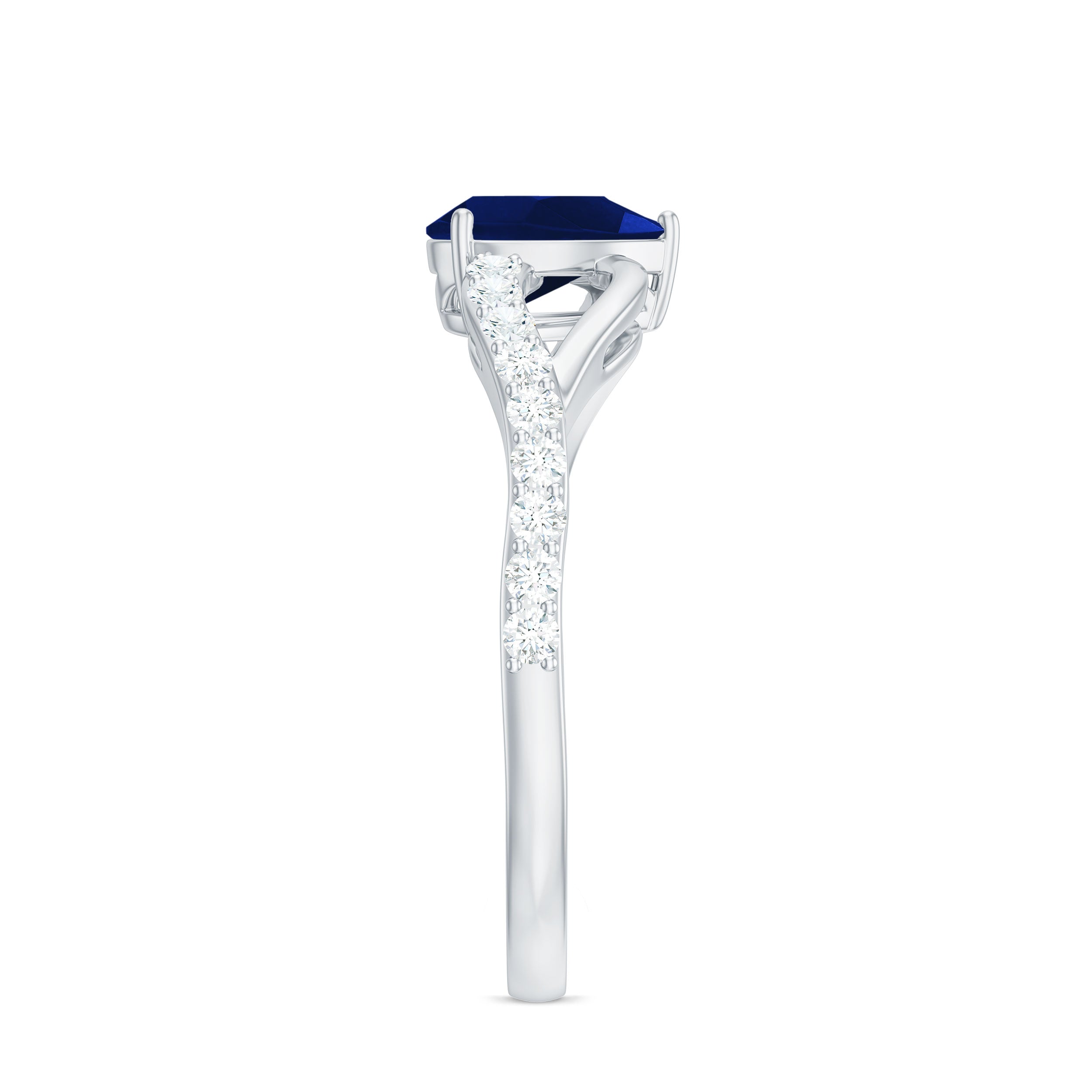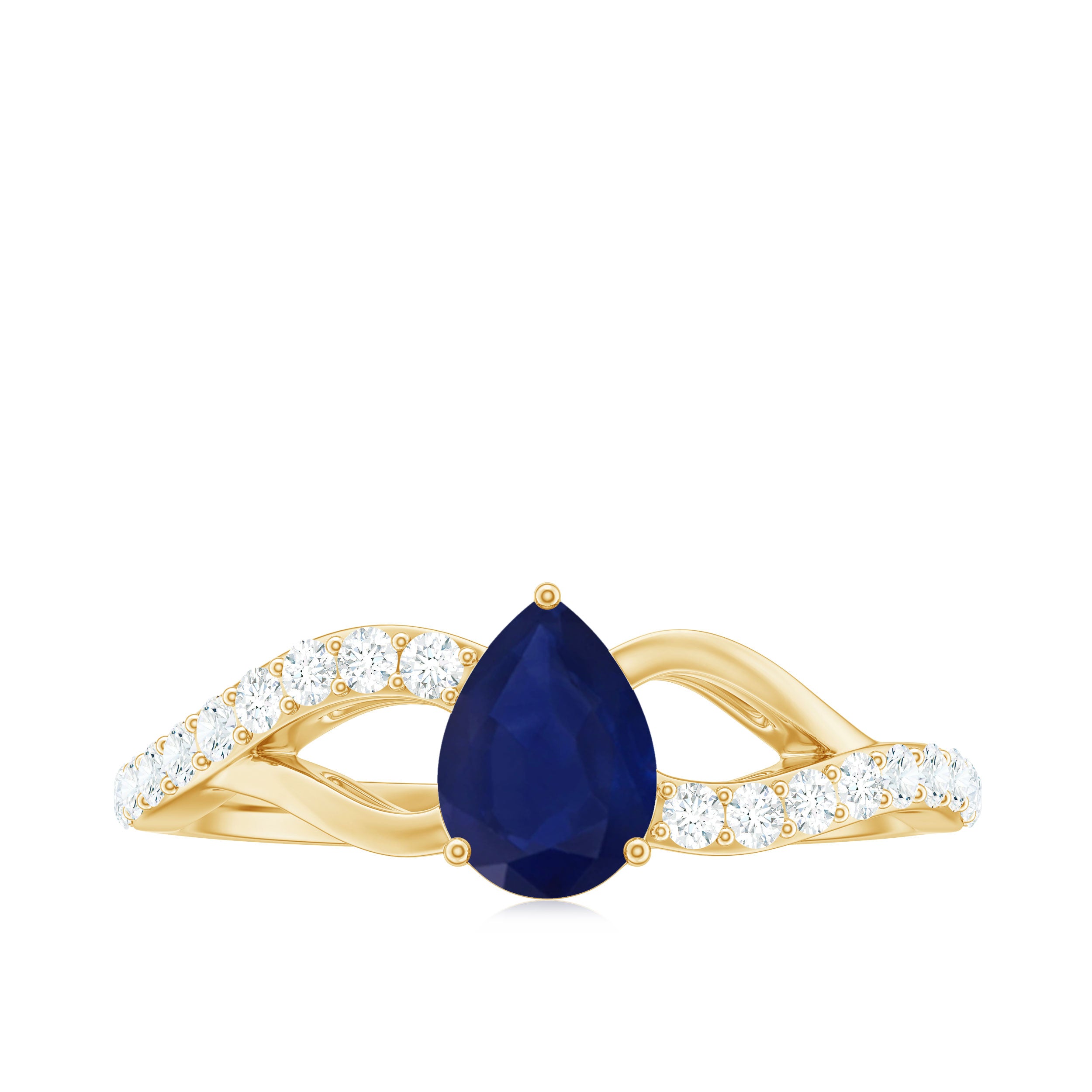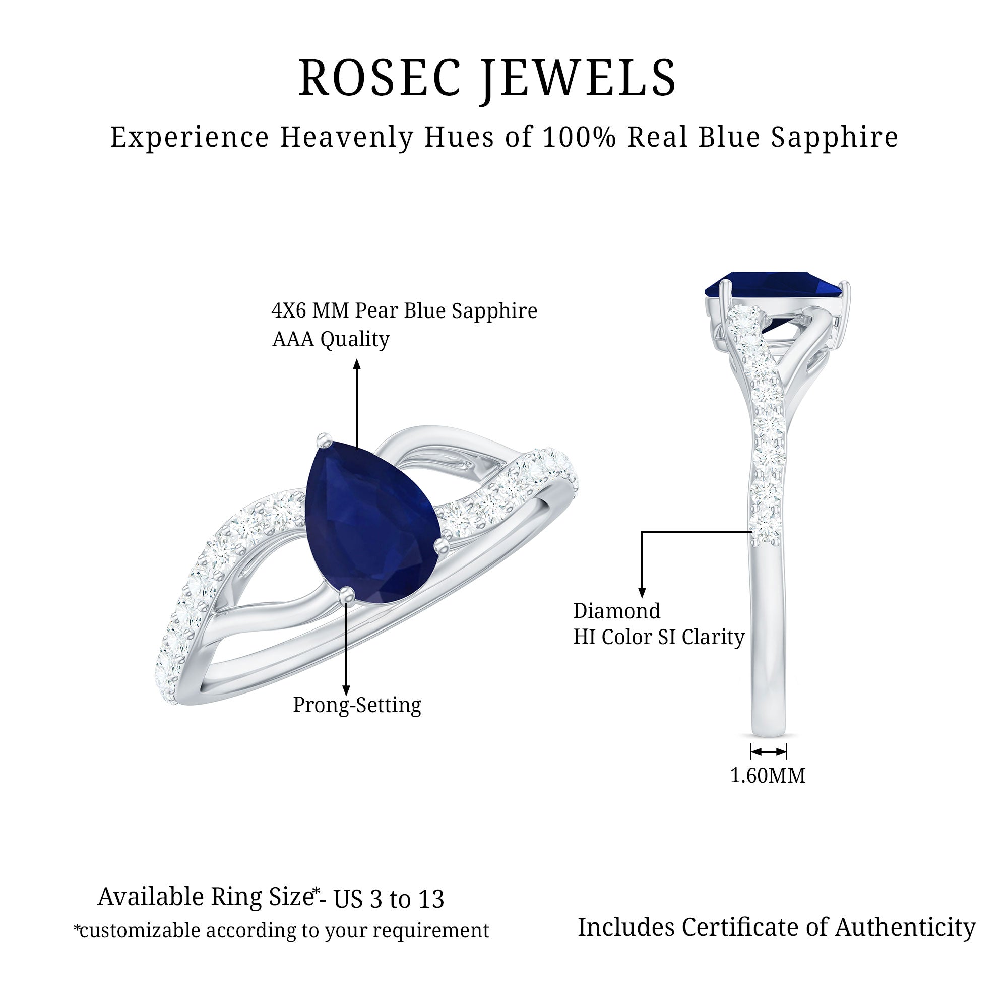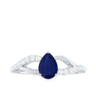 Pear Cut Blue Sapphire Solitaire Split Shank Ring with Diamond