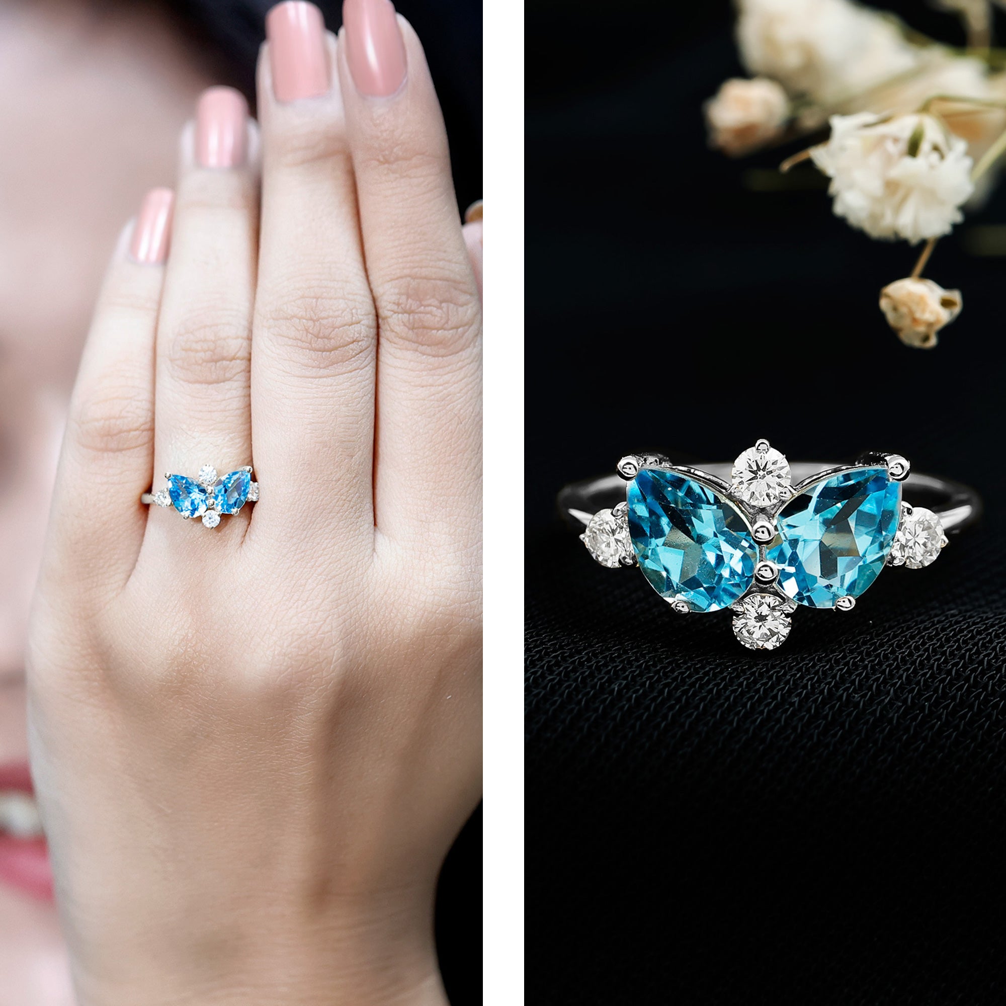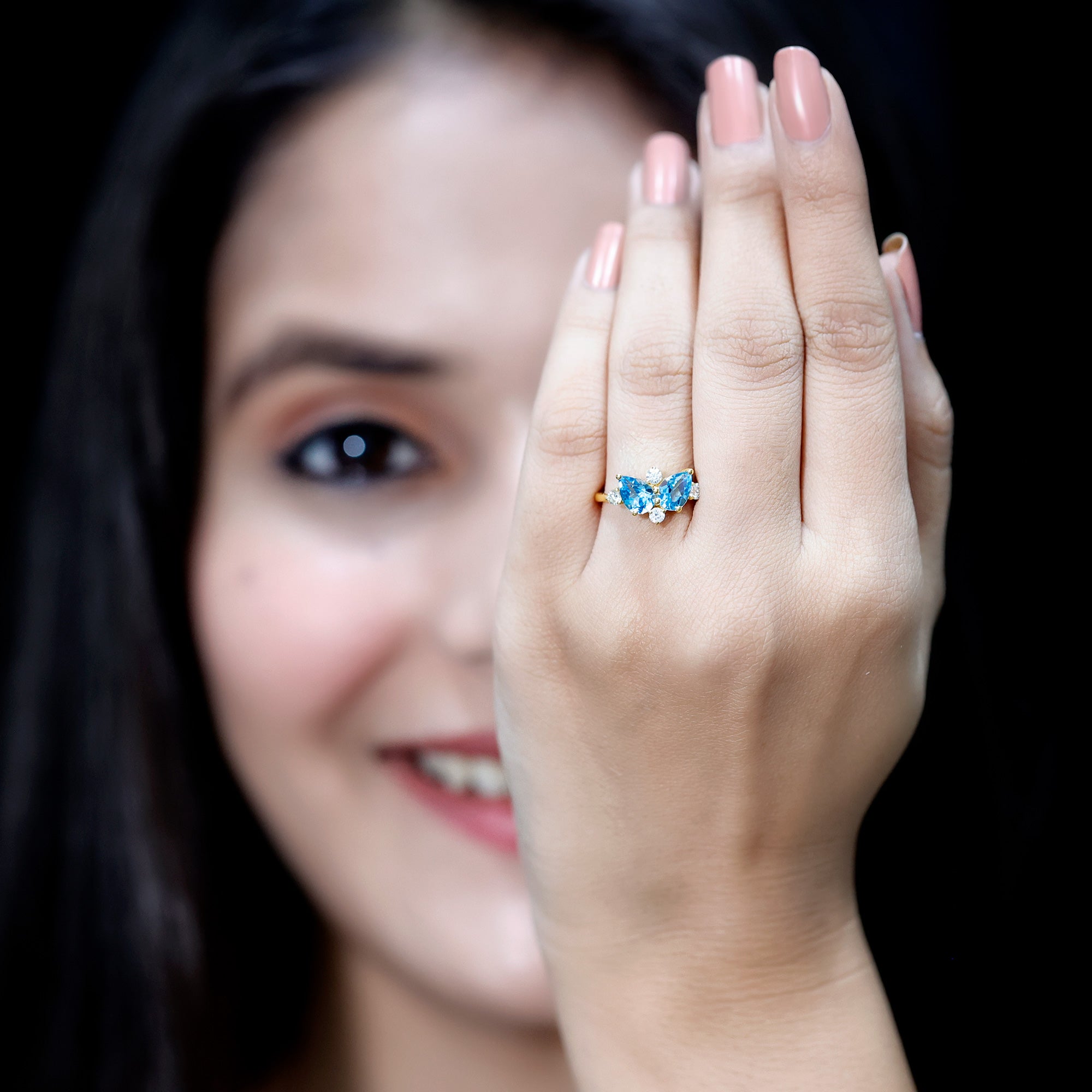 1.5 CT Pear Cut Swiss Blue Topaz Cluster Promise Ring with Diamond