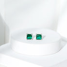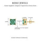Princess Cut Lab Grown Green Sapphire Solitaire Stud Earrings