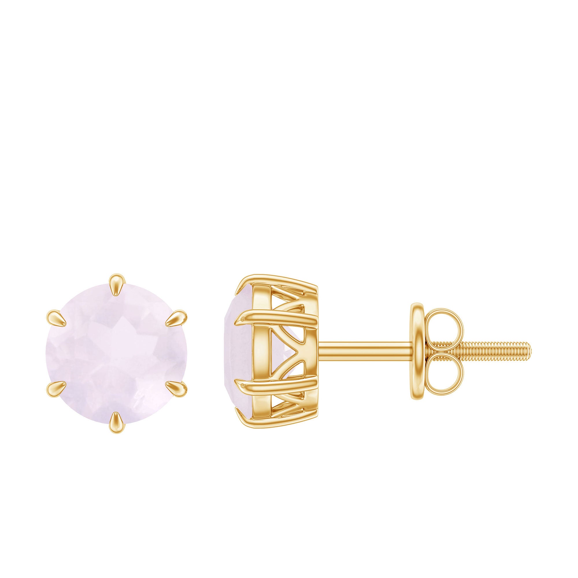 Elevate your style with these stunning Simple Stud Earrings, showcasing Round Cut Rose Quartz stones set in a Claw setting and beautifully crafted from Solid Gold. Despite their simplicity, these solitaire earrings make a statement, adding a touch of elegance and sophistication to any outfit.