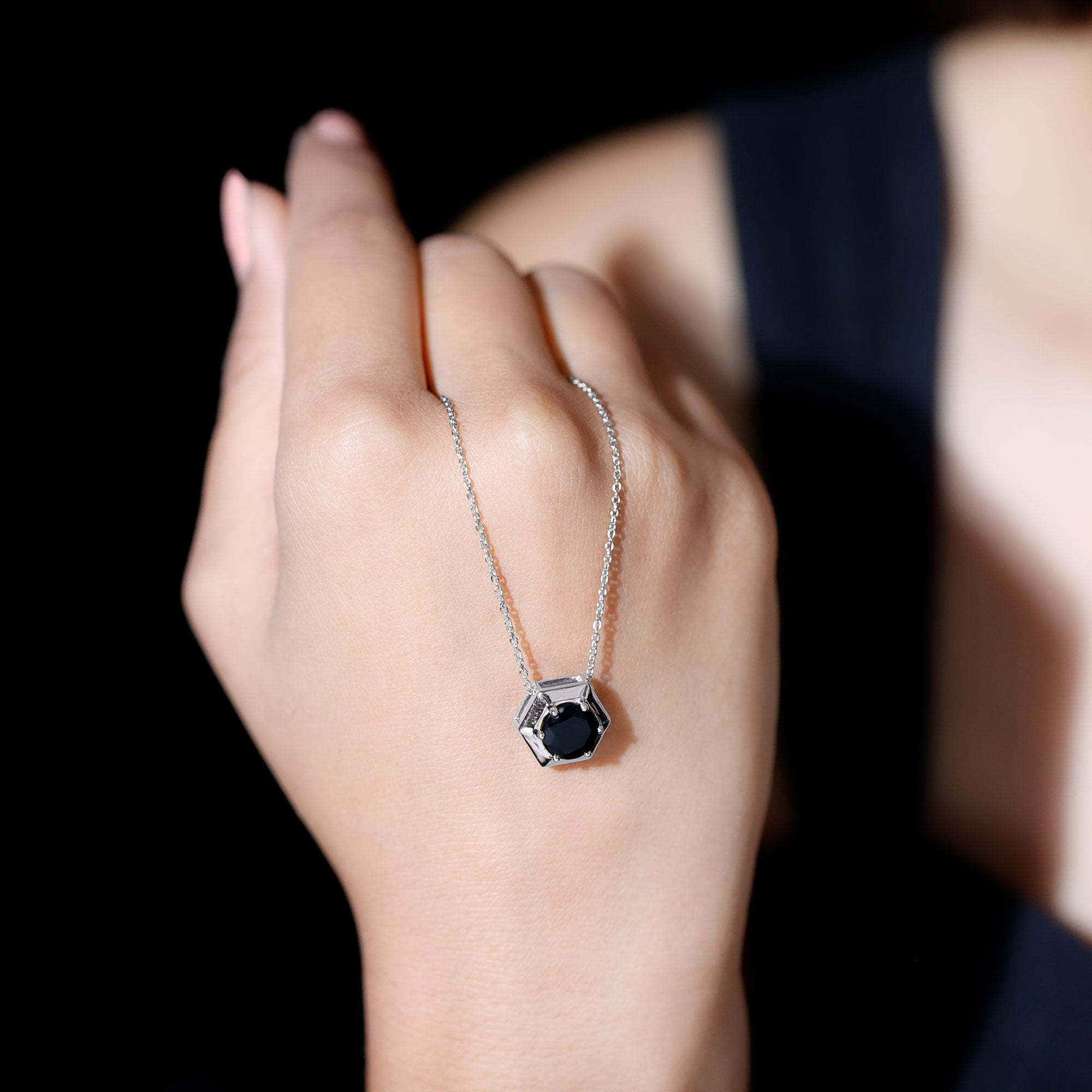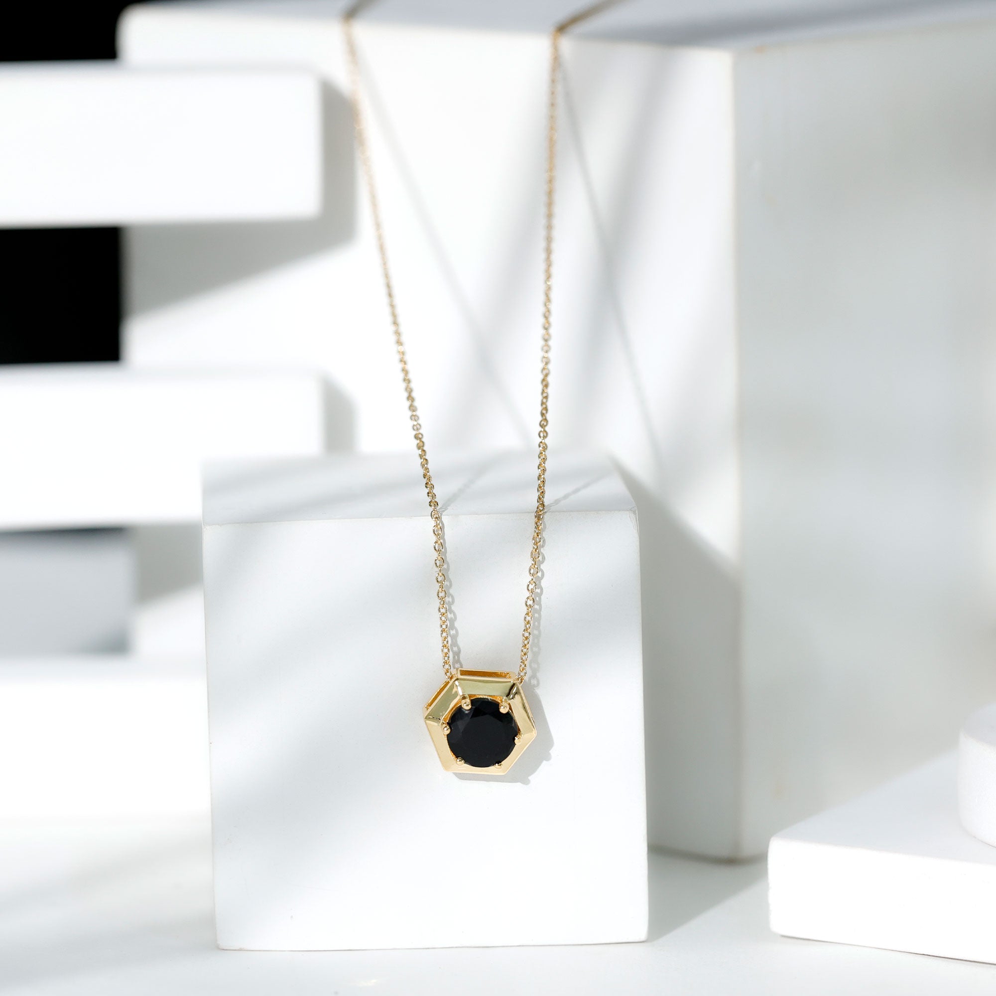 1.5 CT Round Black Spinel Gold Hexagon Pendant Necklace