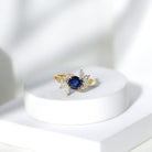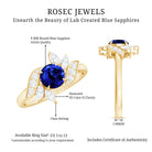 1.5 CT Round Lab Created Blue Sapphire Flower Engagement Ring with Diamond