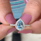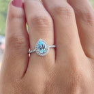 Certified Pear Shape Sky Blue Topaz Diamond Halo Engagement Ring