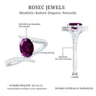 This exquisite engagement ring features an oval cut rhodolite gemstone, set in a solitaire style and accented by a bypass design. The shank is adorned with sparkling Diamond, making this a truly unique and stunning piece. The perfect symbol of love and commitment, this rhodolite ring is sure to take her breath away.