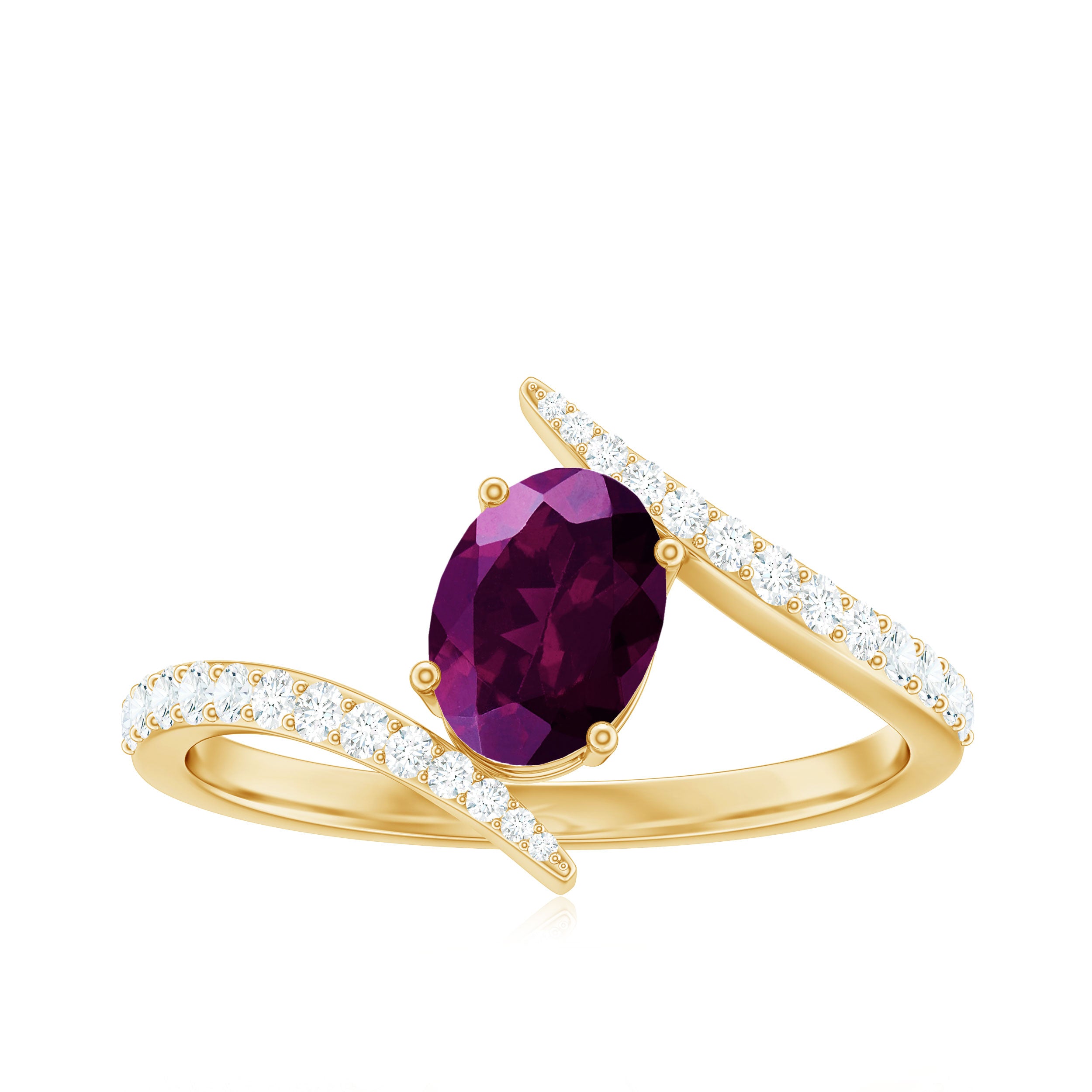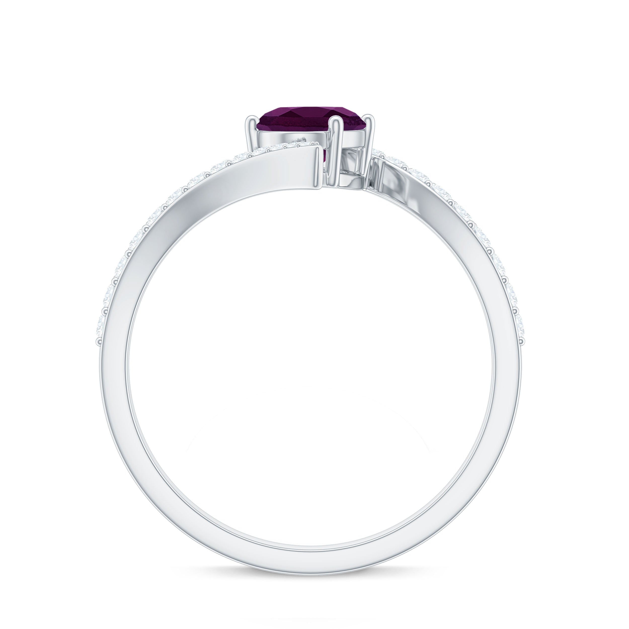 1.5 CT Solitaire Rhodolite Bypass Engagement Ring with Diamond