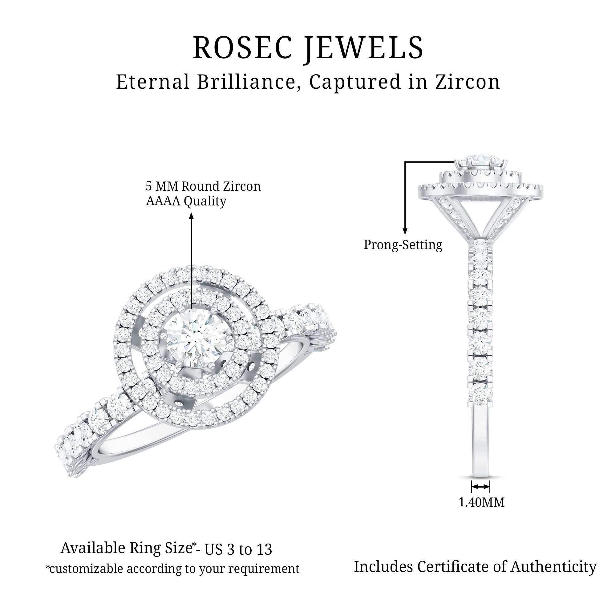 1.50 CT Antique Zircon Double Halo Engagement Ring