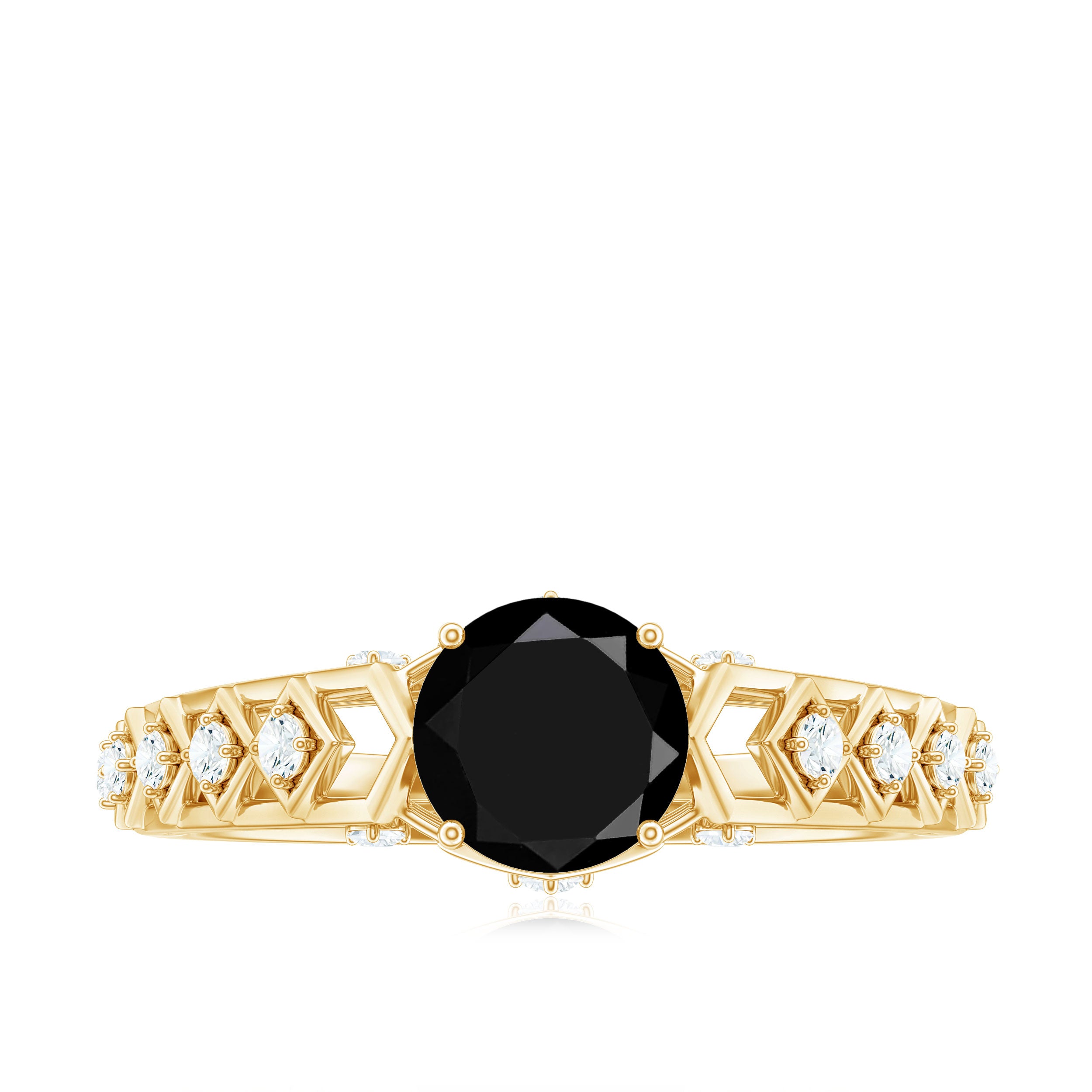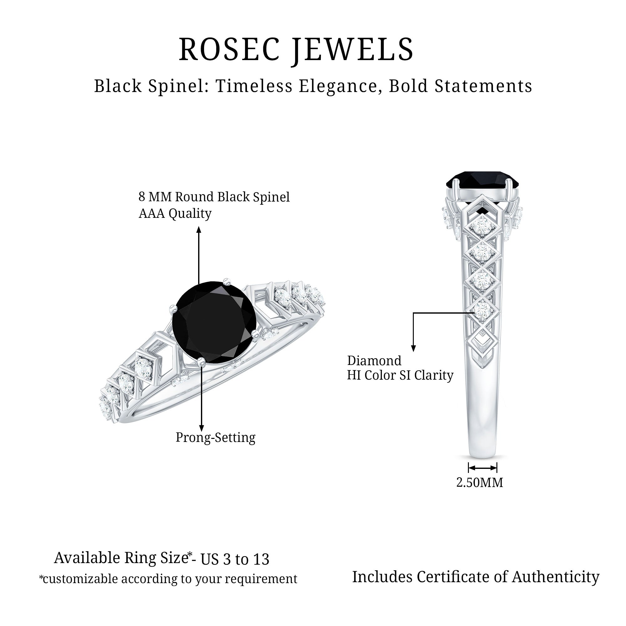 1.50 CT Art Deco Black Spinel Solitaire Ring with Diamond