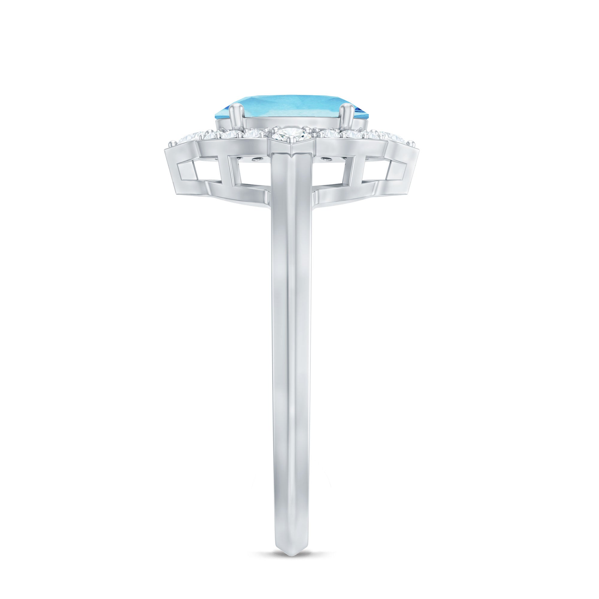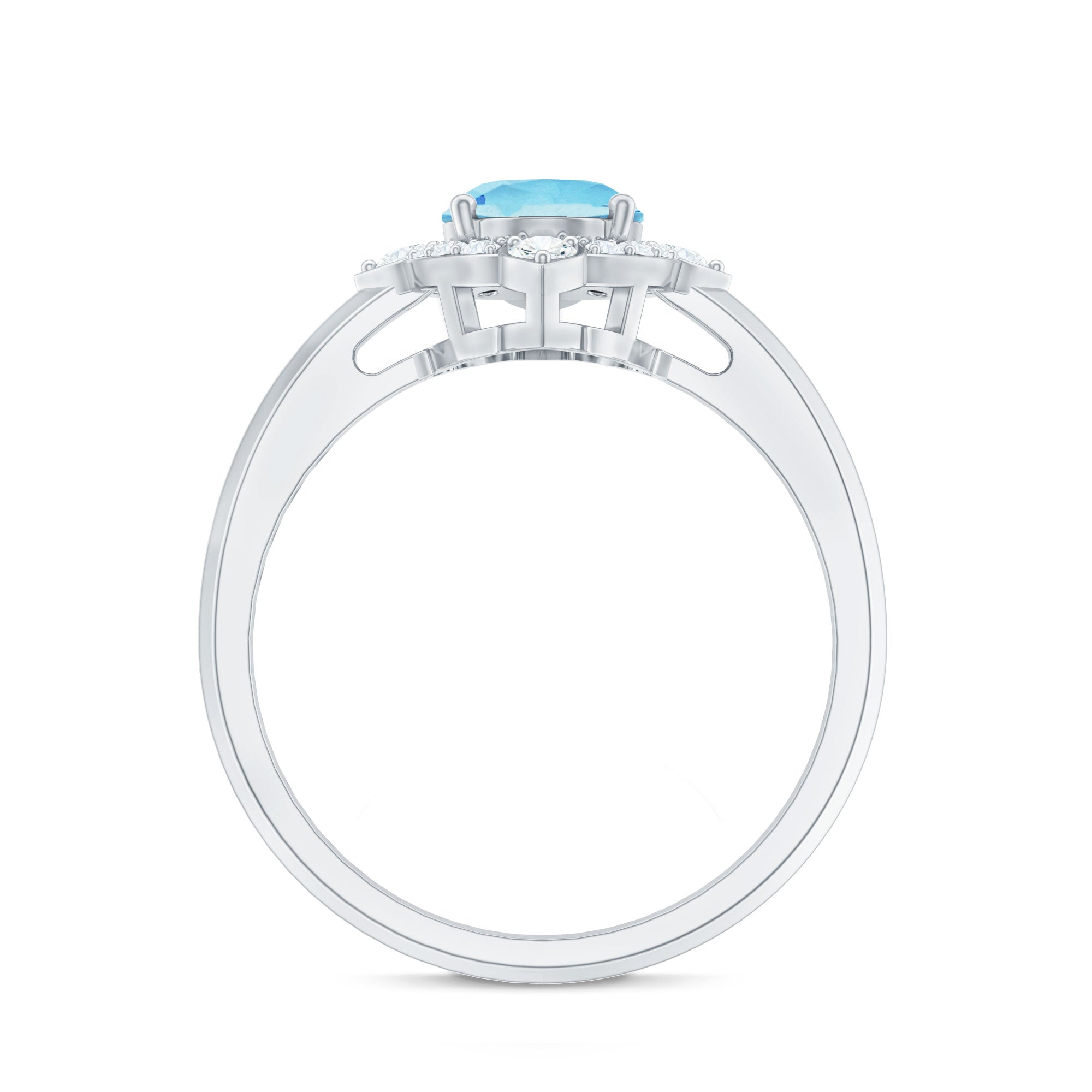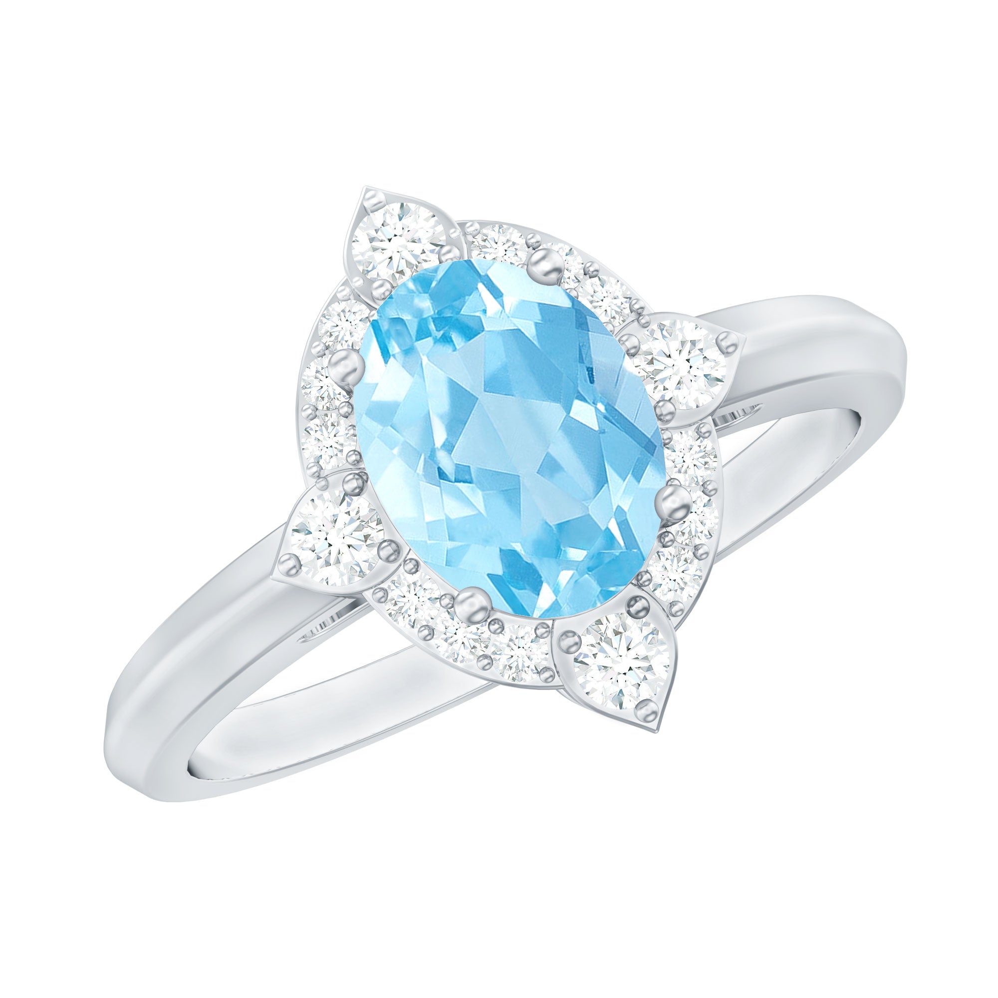 1.50 CT Art Deco Engagement Ring with Oval Shape Aquamarine and Diamond Accent