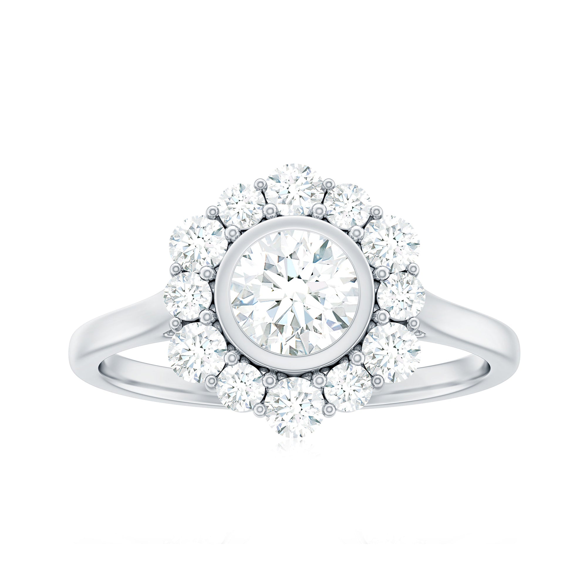 1.50 CT Bezel Set Zircon Statement Halo Engagement Ring