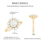This truly exceptional Statement Ring features a bezel set center zircon surrounded by a lavish halo of shimmering cubic zirconia in prong setting that makes this ring light and feminine for a truly special look. Amazingly crafted in gold metal to make it a perfect CZ Engagement Ring for your lovely lady.