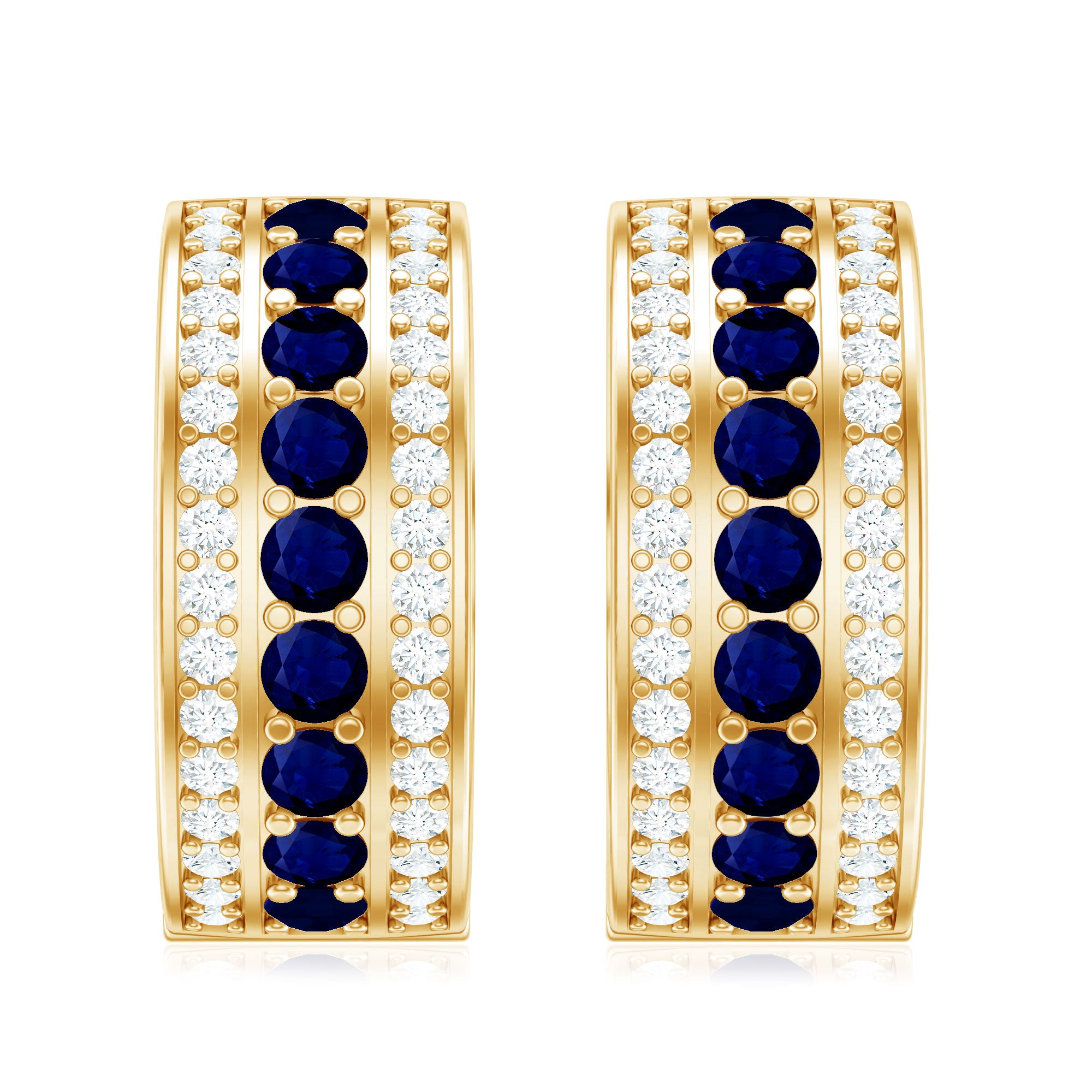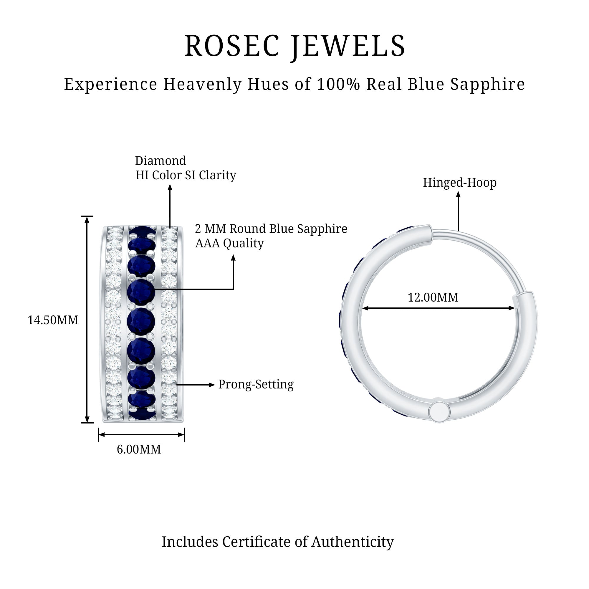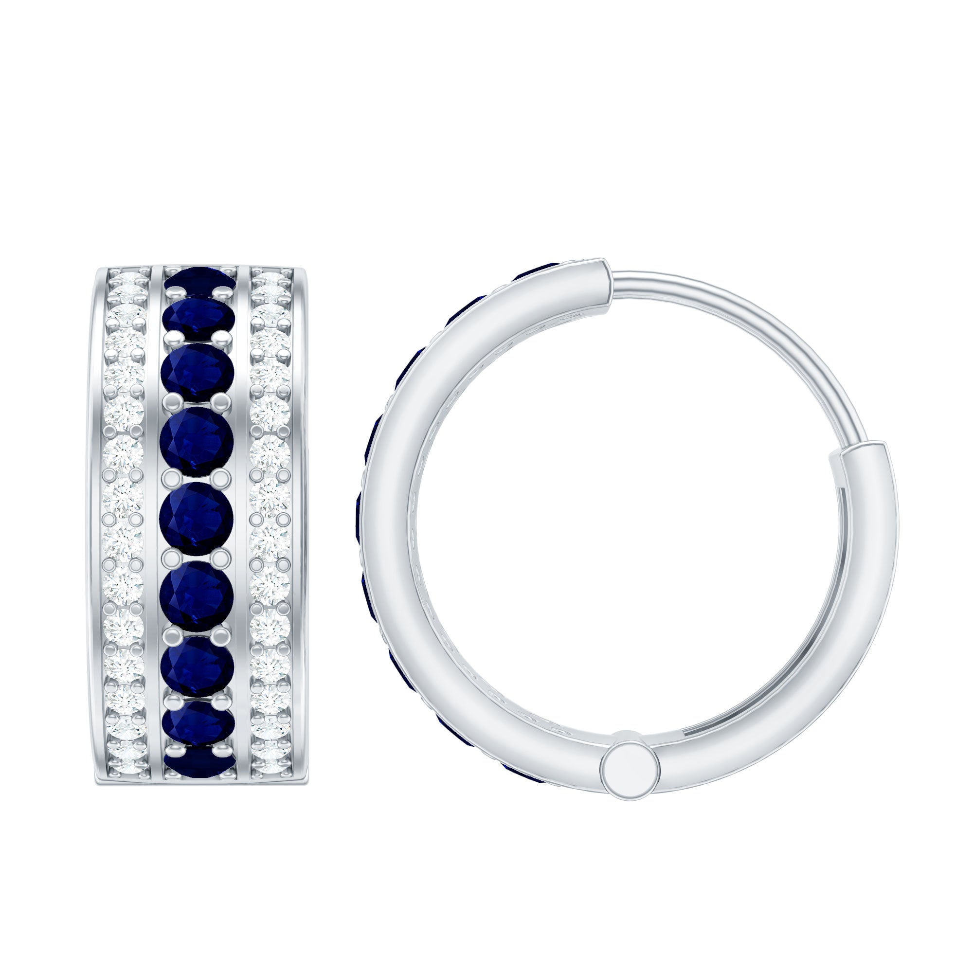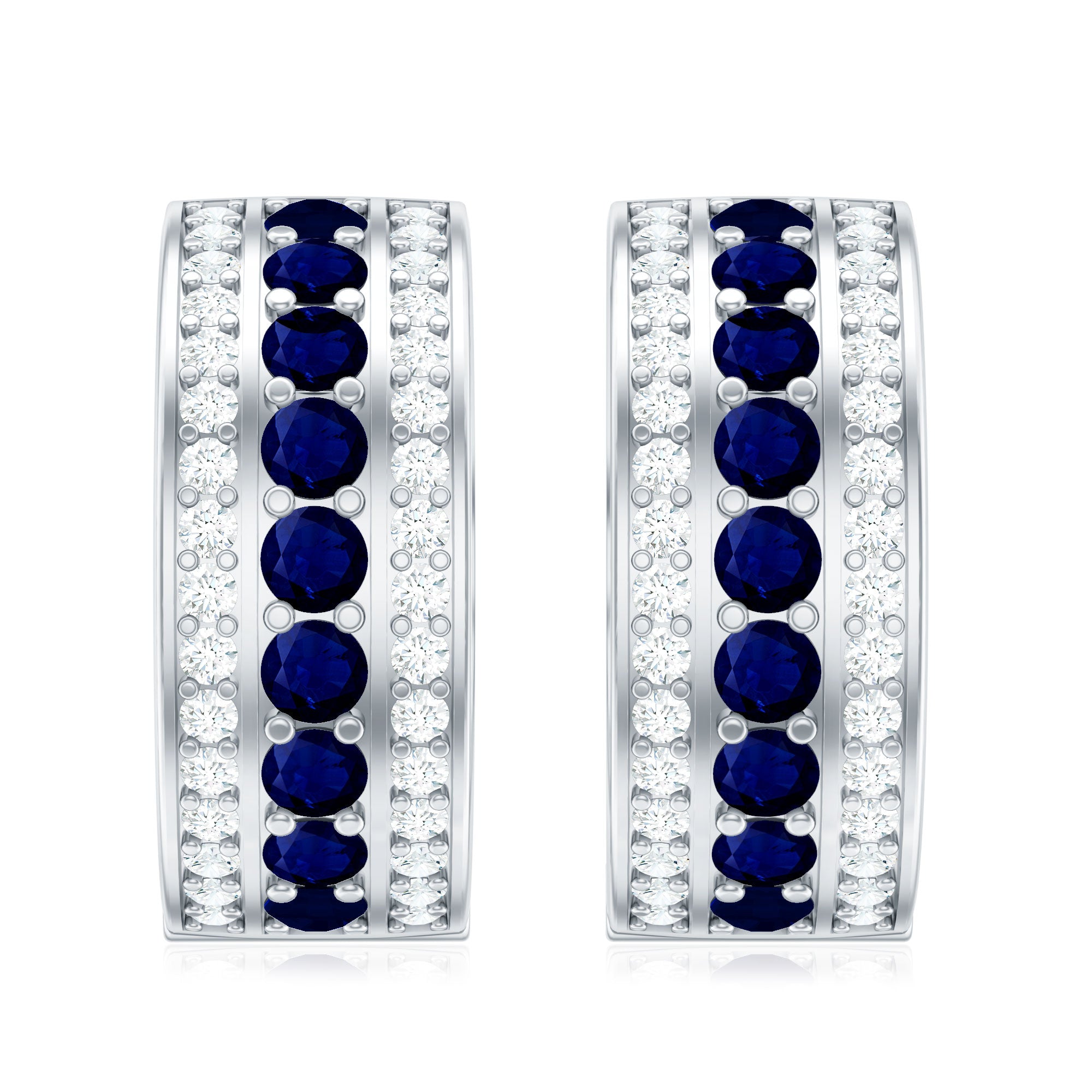 1.50 CT Blue Sapphire and Diamond Statement Hoop Earrings