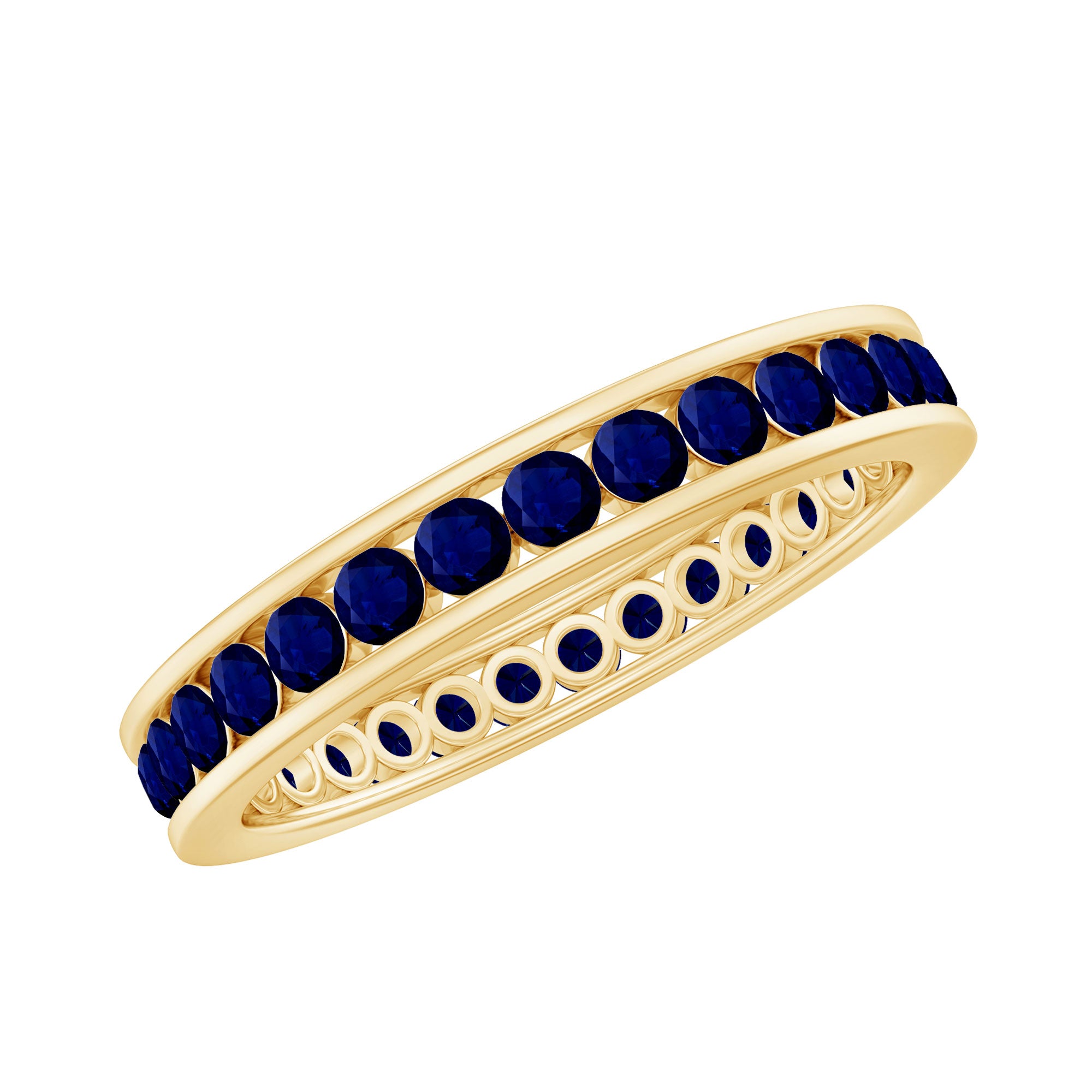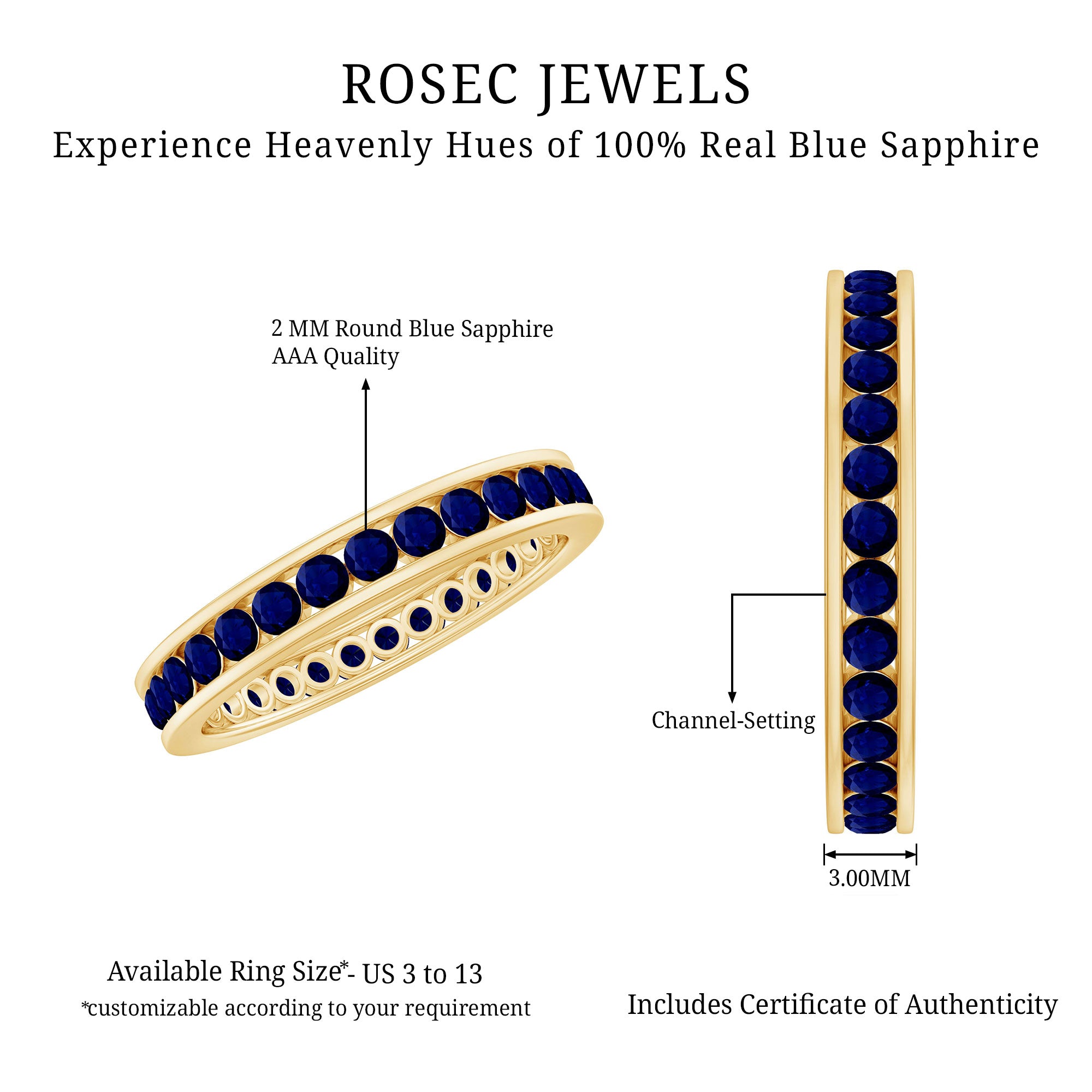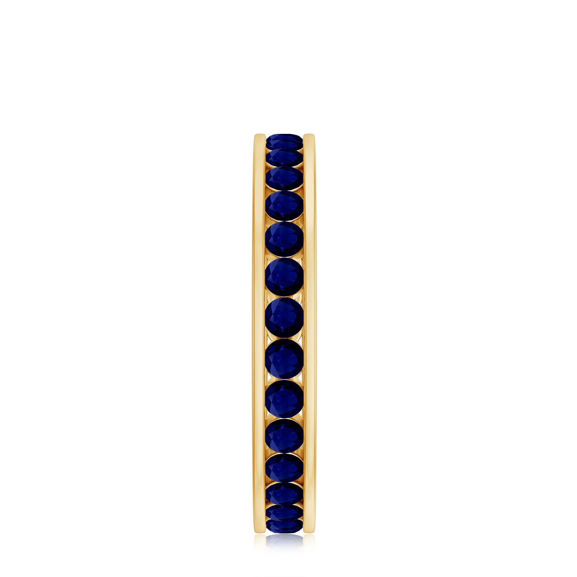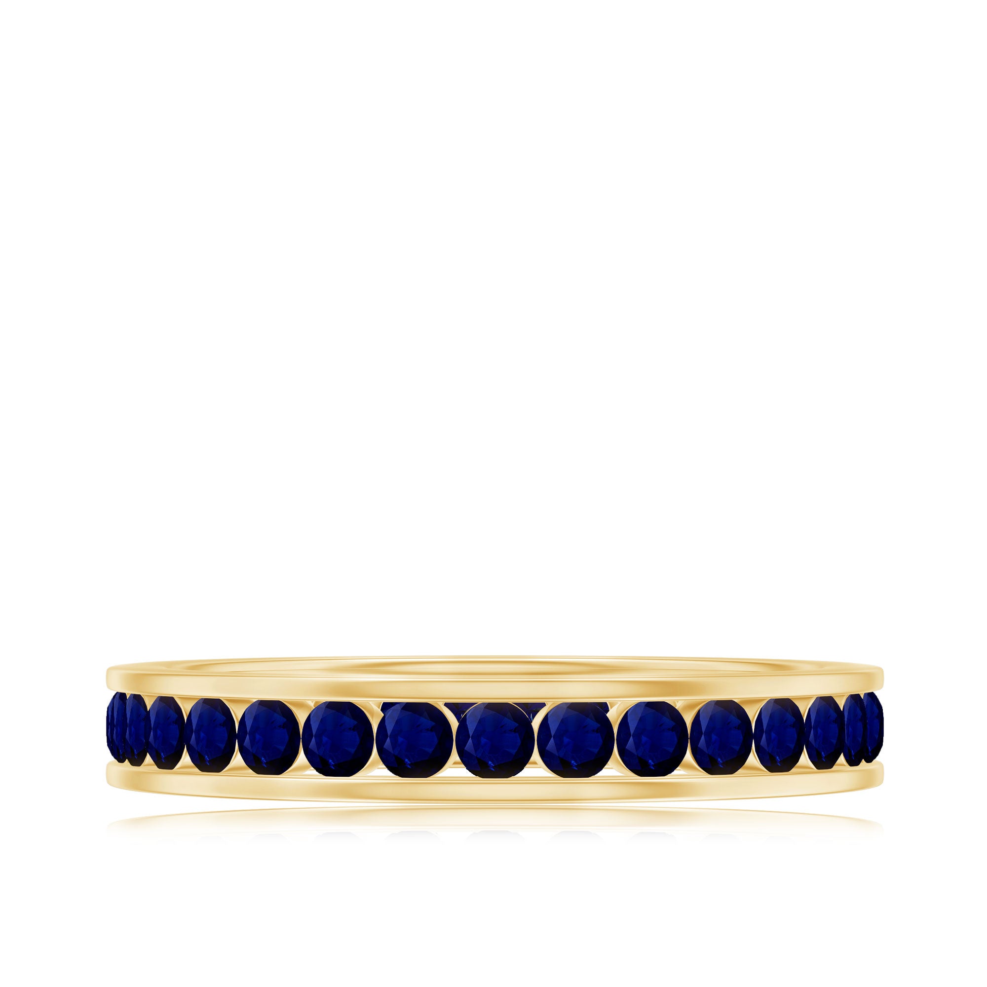 Grab this beautiful Eternity Band, set with 2 MM Round Shape Blue Sapphire Gemstones are set on the full band in a Channel Setting, crafted in a Solid Gold Metal