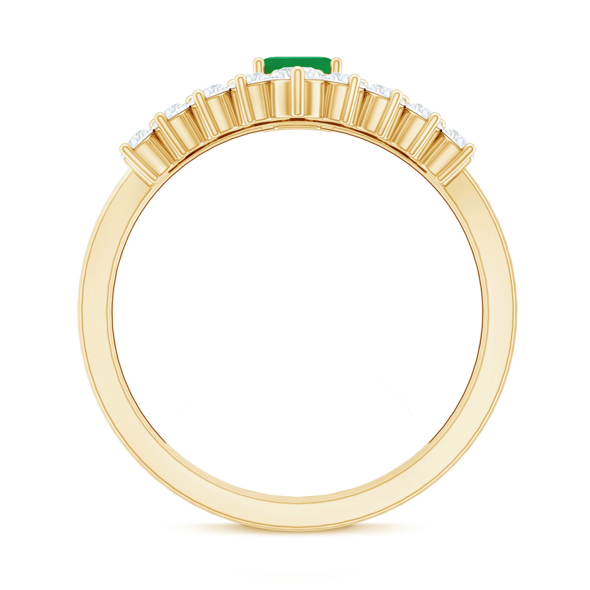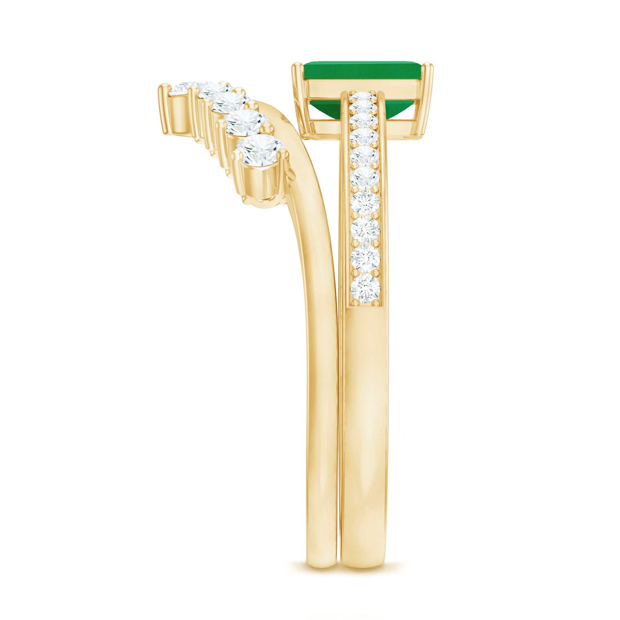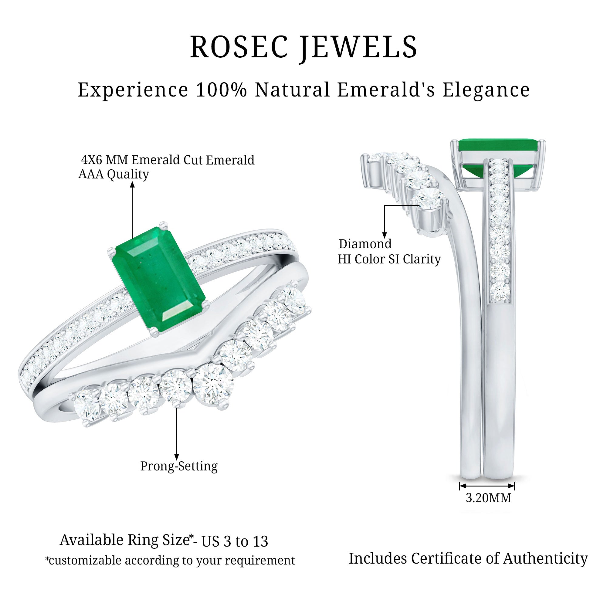 Unveil the brilliance of eternal love with this captivating Wedding Engagement Ring Set, designed to celebrate your most cherished moments. The Solitaire Engagement Ring adorned with 4X6 mm Emerald Cut Emerald set in Prong Setting is beautifully framed by sparkling Diamond Side Stones that catch the light from every angle. Complementing it, the gracefully Curved Wedding Band is adorned with delicate Diamond stones, hugging the Emerald Cut Engagement Ring perfectly to create a seamless, elegant union. Each piece can stand alone for understated sophistication or be worn together for a dazzling, layered statement that reflects your unique love story. Delivered in a signature jewelry box and available in multiple sizes, this Emerald Wedding Ring Set is a symbol of devotion, passion and the promise of forever. Perfect for the bride who dreams of timeless elegance with a contemporary flair, this Emerald Engagement Ring with Wedding Band transforms every gesture into a sparkling celebration of romance. Let this Wedding Bridal Ring Set be a treasured reminder that true love is endlessly beautiful.