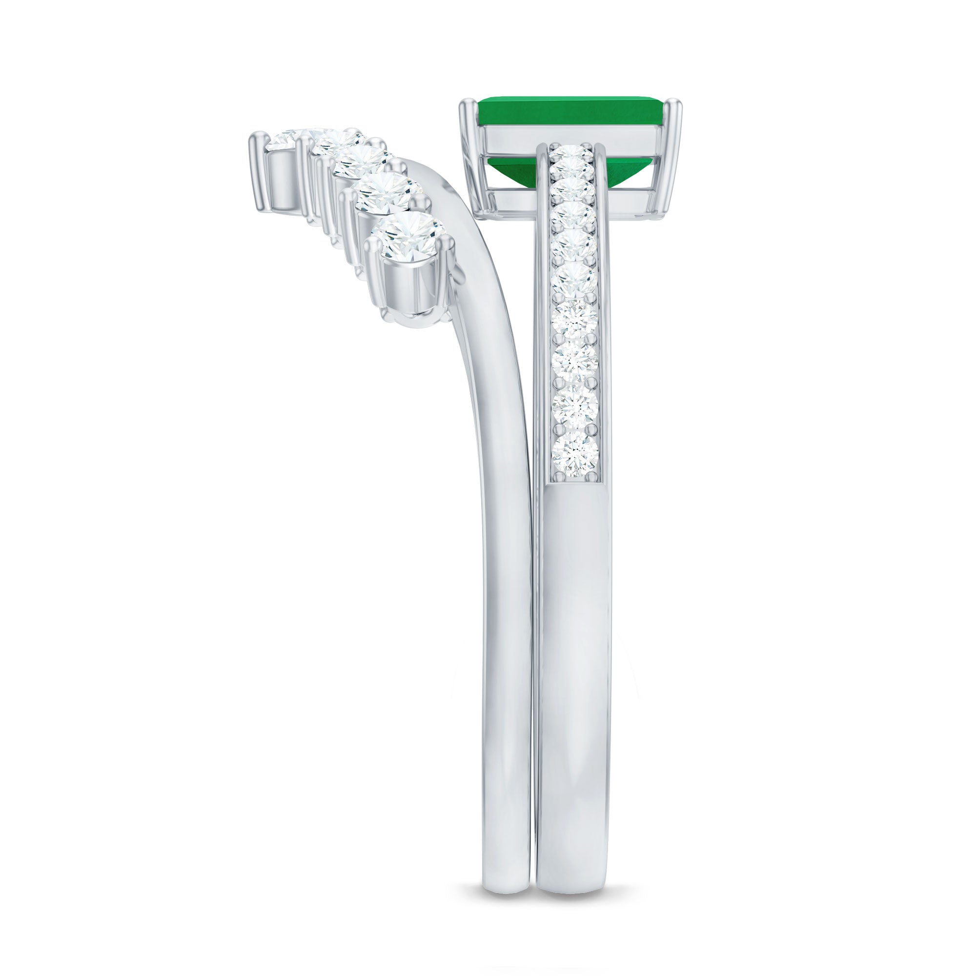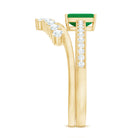 Natural Emerald Diamond Emerald Cut Engagement Ring with Curved Wedding Band