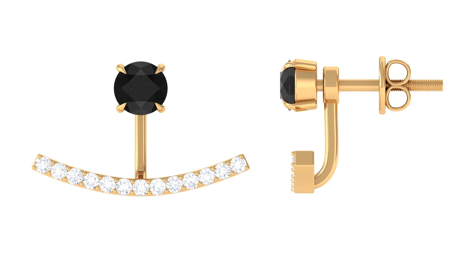 Destined to captivate, these Jacket Earrings are the perfect blend of elegance and edge. Designed with a unique twist, these Ear Jacket Earrings feature a bold 4 mm Round Shape Black Diamond in Claw Setting, accentuated by sparkling White Diamond stones. The eye-catching jacket design frames the ear, adding extra glamour and depth to the look. With the Screw Back Closure, these Black Diamond Earrings provide a secure fit while ensuring you wear them with comfort and confidence, day or night. Whether you are dressing up for a glamorous event or adding a bit of sparkle to your everyday ensemble, these Black and White Earrings elevate your look with effortless sophistication. The striking contrast between the Black and White Diamond stones makes these earrings versatile, able to pair with everything from formal attire to casual outfits. Presented in an elegant jewelry box, they make the perfect gift for someone special or a luxurious treat for yourself.
