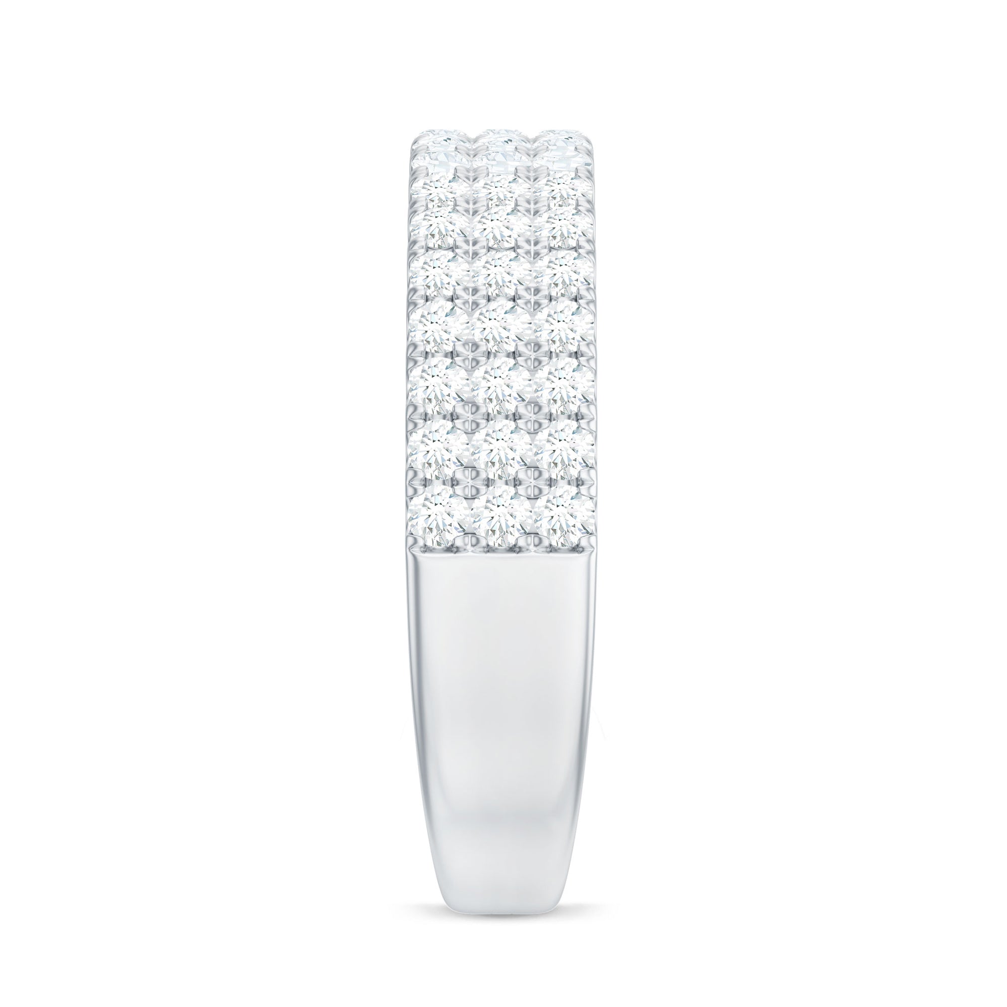 Celebrate your love story with this timeless and elegant Diamond Wedding Band that would serve to be a perfect as your commitment. Having a masterful blend of classic sophistication and contemporary design. This band features a stunning array of meticulously set Diamond that radiate brilliance and charm. Embrace the allure of enduring love with this band ring that embodies elegance and sophistication. The Diamond Wide Wedding Band Ring is more than just a symbol of commitment and is a testament to a lifetime of cherished moments. This 3 Row Diamond Eternity Ring enhancing the sparkle from every angle makes it a perfect for wedding band, anniversary ring, or a statement piece.