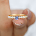 A Marvelous and Classic Tanzanite Solitaire Ring embellished with Solitaire Heart Shape Tanzanite is set in the center and Round Shape Diamond gemstones are set as Side Stones. Classic Women Ring is composed of Gold. Express your feeling by presenting this gorgeous and adorable ring as an anniversary gift.