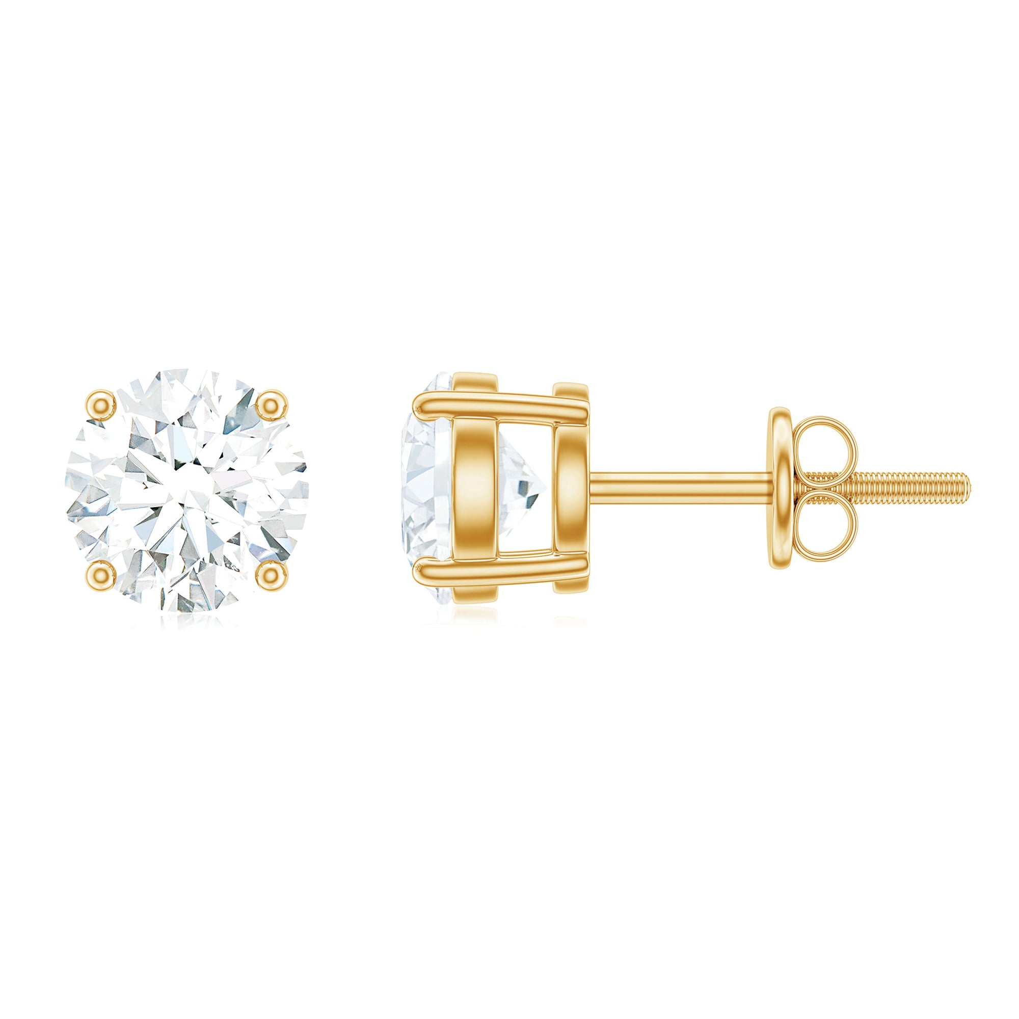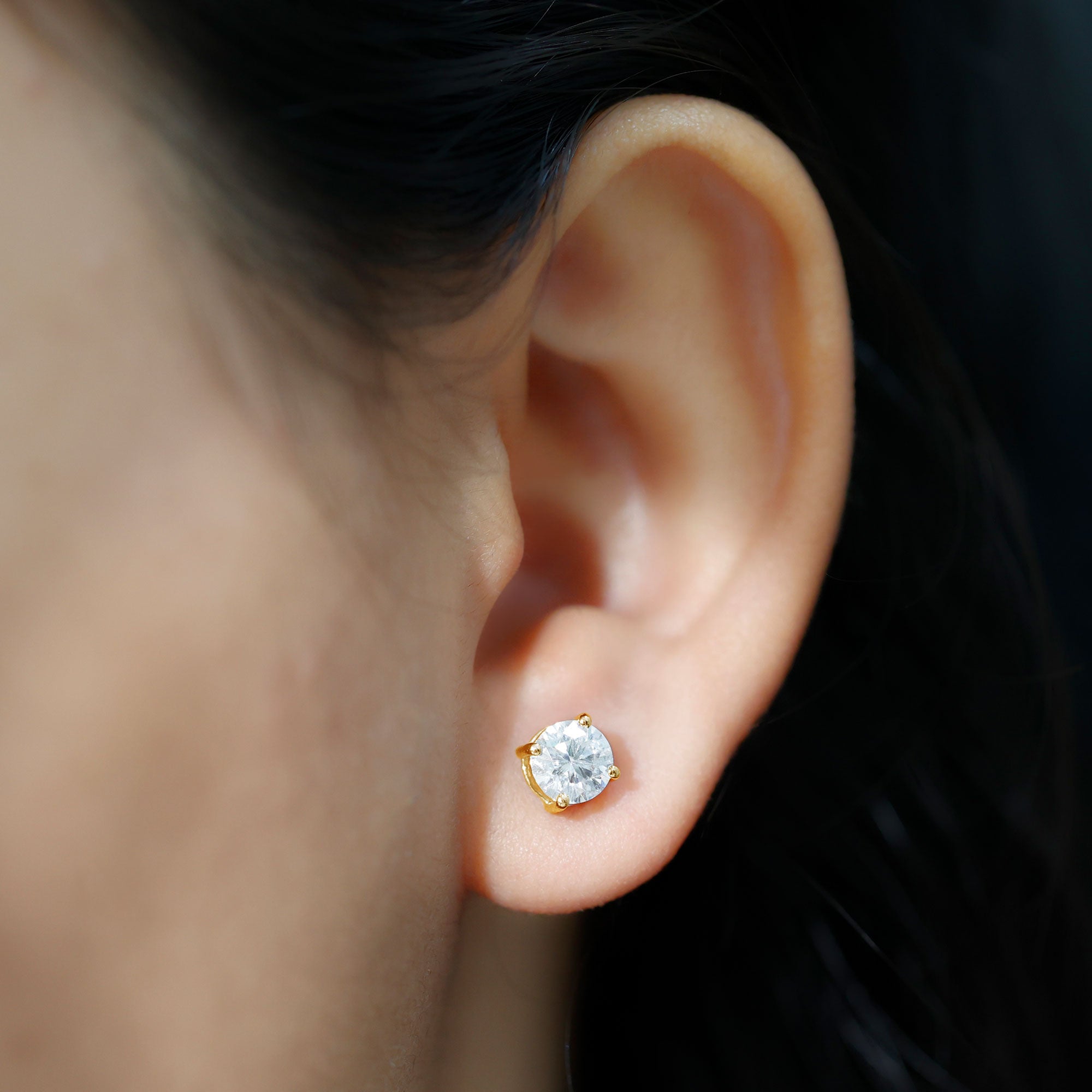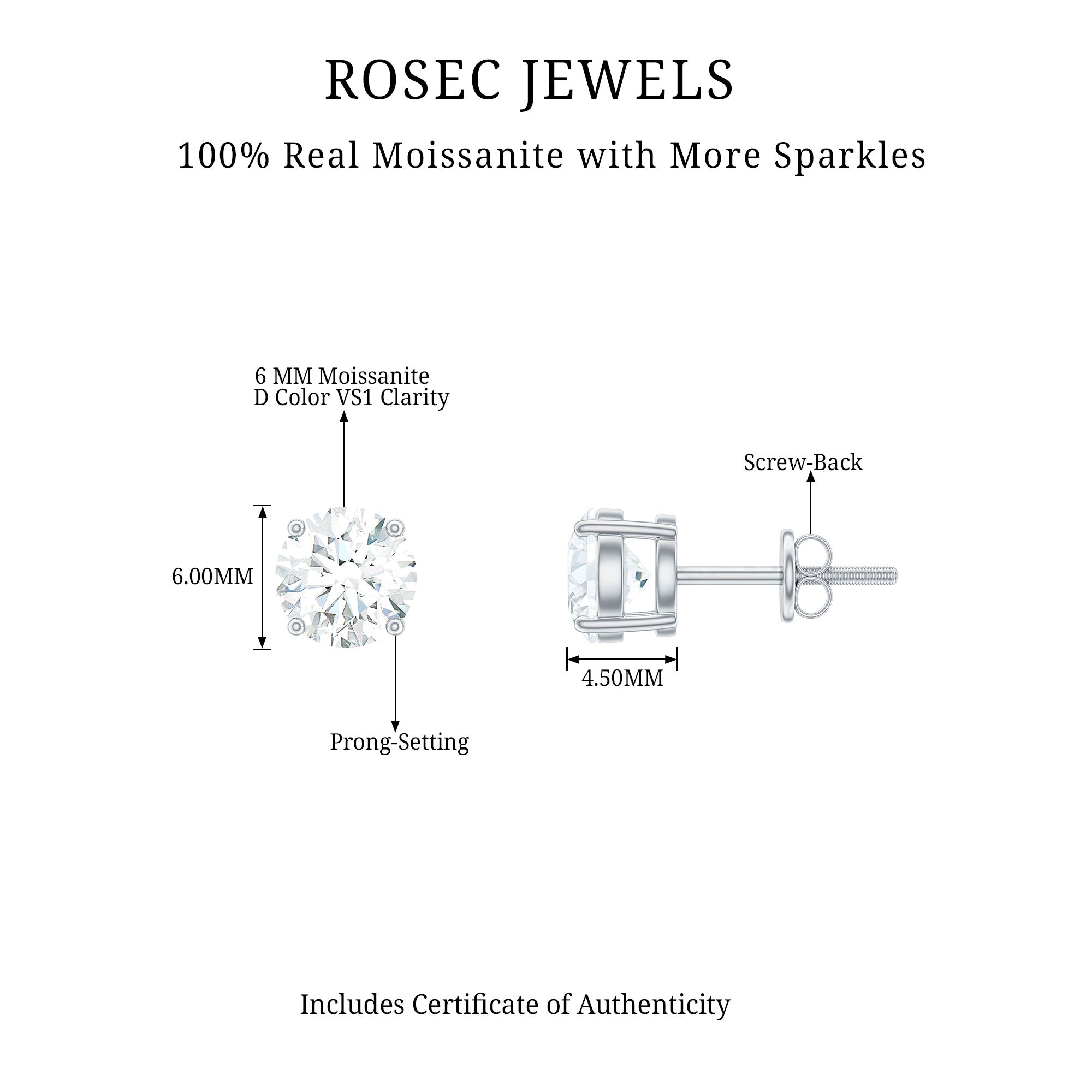 Little sparkle can brighten any moment, and these Moissanite Stud Earrings are made to do exactly that. Thoughtfully designed, they bring a classic shine that suits every style. Features a brilliant 6 MM round cut moissanite held securely in 4-prong setting, allowing the stone to reflect light beautifully from all sides. With screw back closures, these Solitaire Earrings stay safely in place while remaining comfortable enough for all-day wear. Whether you are heading to work, going out for dinner, or getting ready for a special occasion, they blend effortlessly with any outfit. Their simple yet elegant look makes them a perfect choice for everyday style or for moments when you want to feel a little extra polished. Made with D-VS1 quality moissanite, these Everyday Earrings offer impressive sparkle and clarity while being an ethical and affordable alternative to traditional gemstones. Easy to wear, effortlessly stylish, and full of shine, these Solitaire Moissanite Earrings are a piece you will love reaching for again and again.