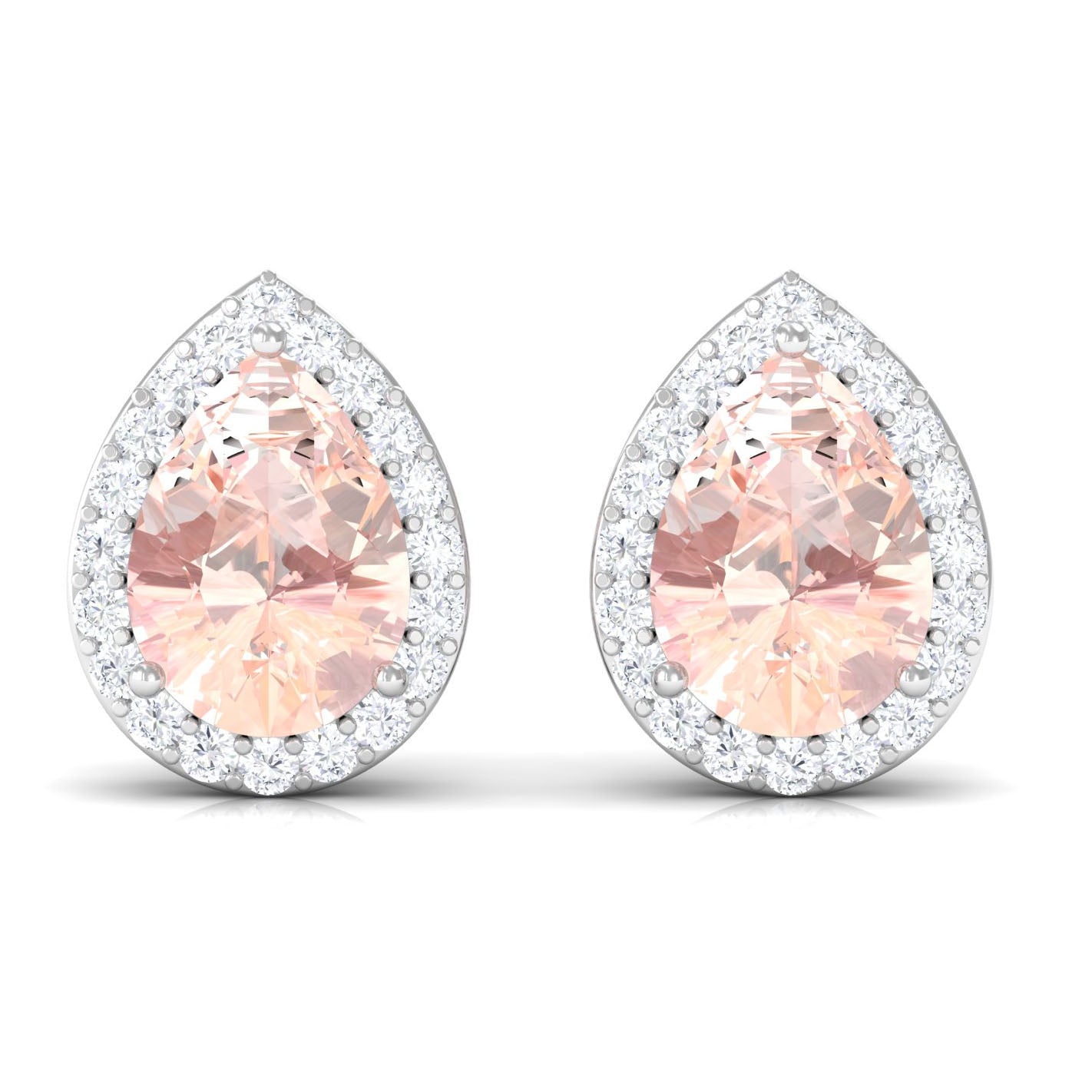 1.50 CT Morganite Teardrop Stud Earrings with Diamond Halo