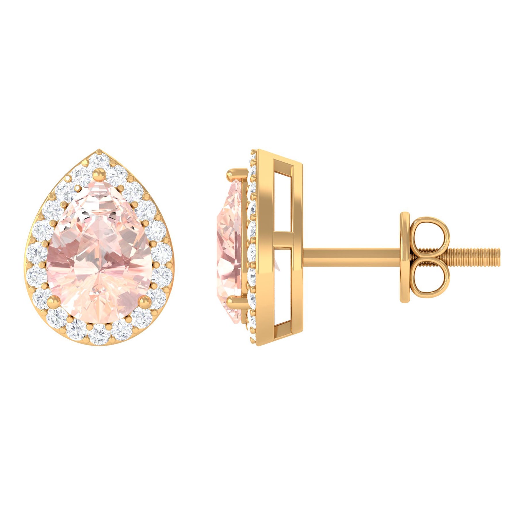 Turn a blind eye to the haters with our Diamond Halo Earrings featuring Pear Cut Morganite and Round Shape Diamond, adorned in Solid Gold.