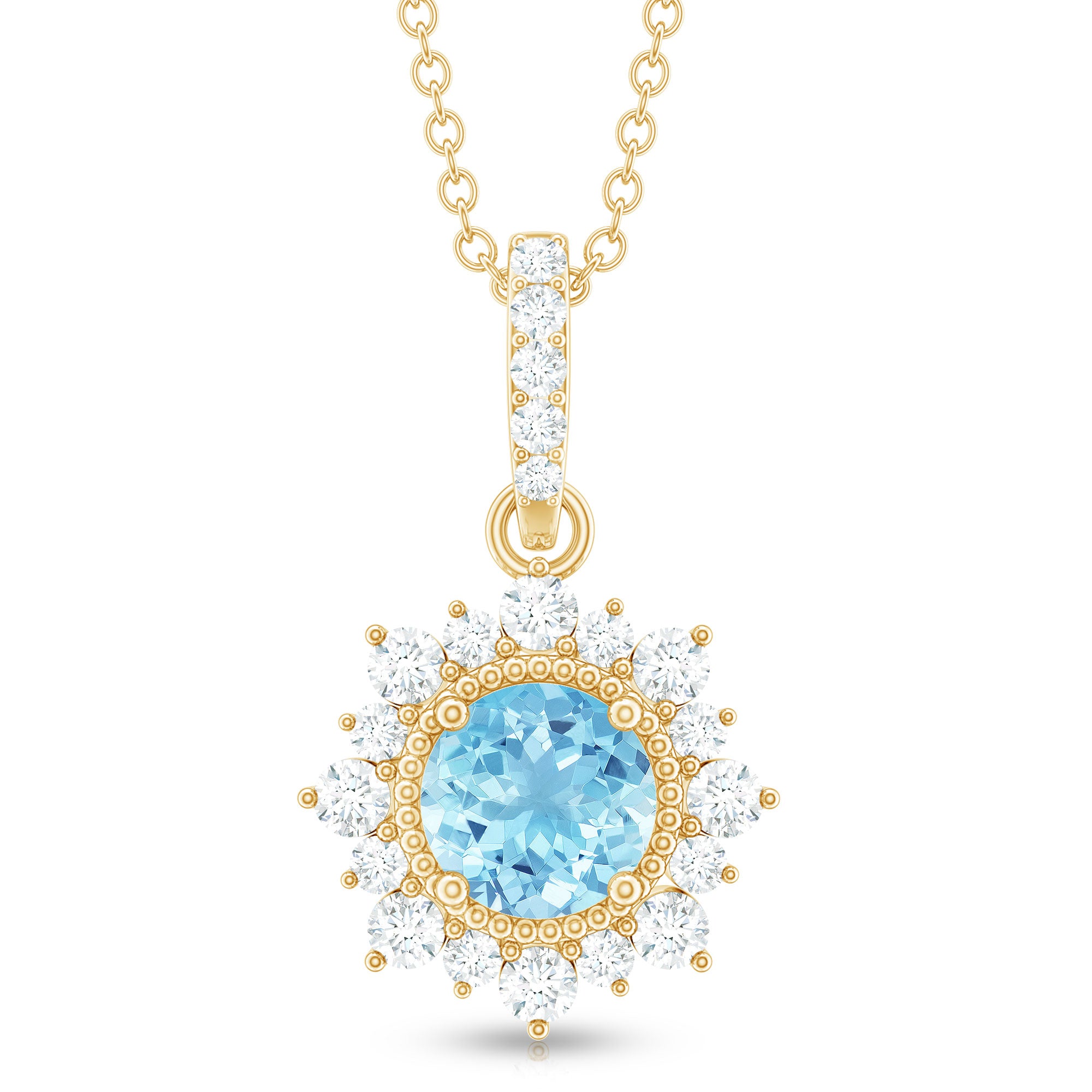 1.50 CT Natural Aquamarine Pendant with Diamond Halo