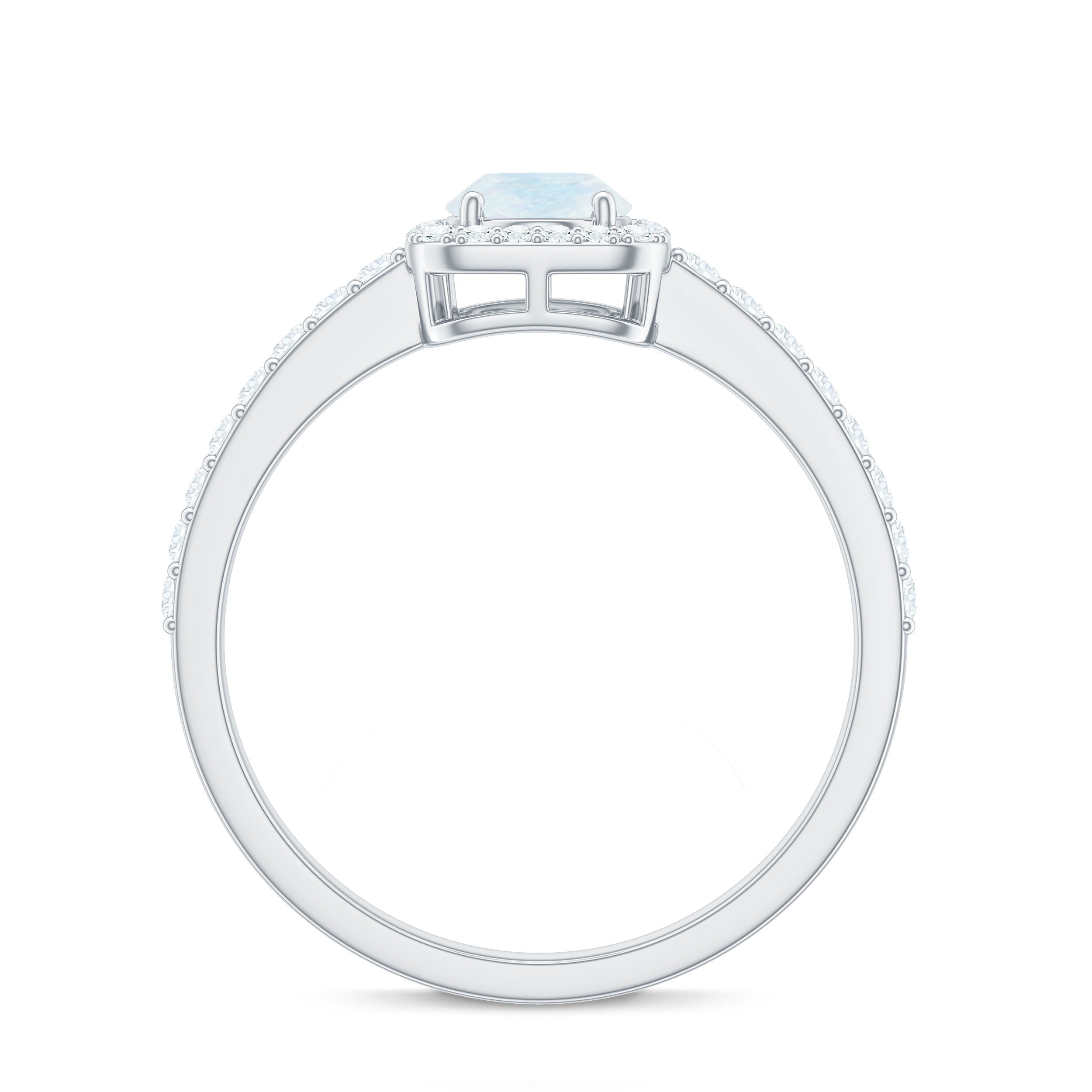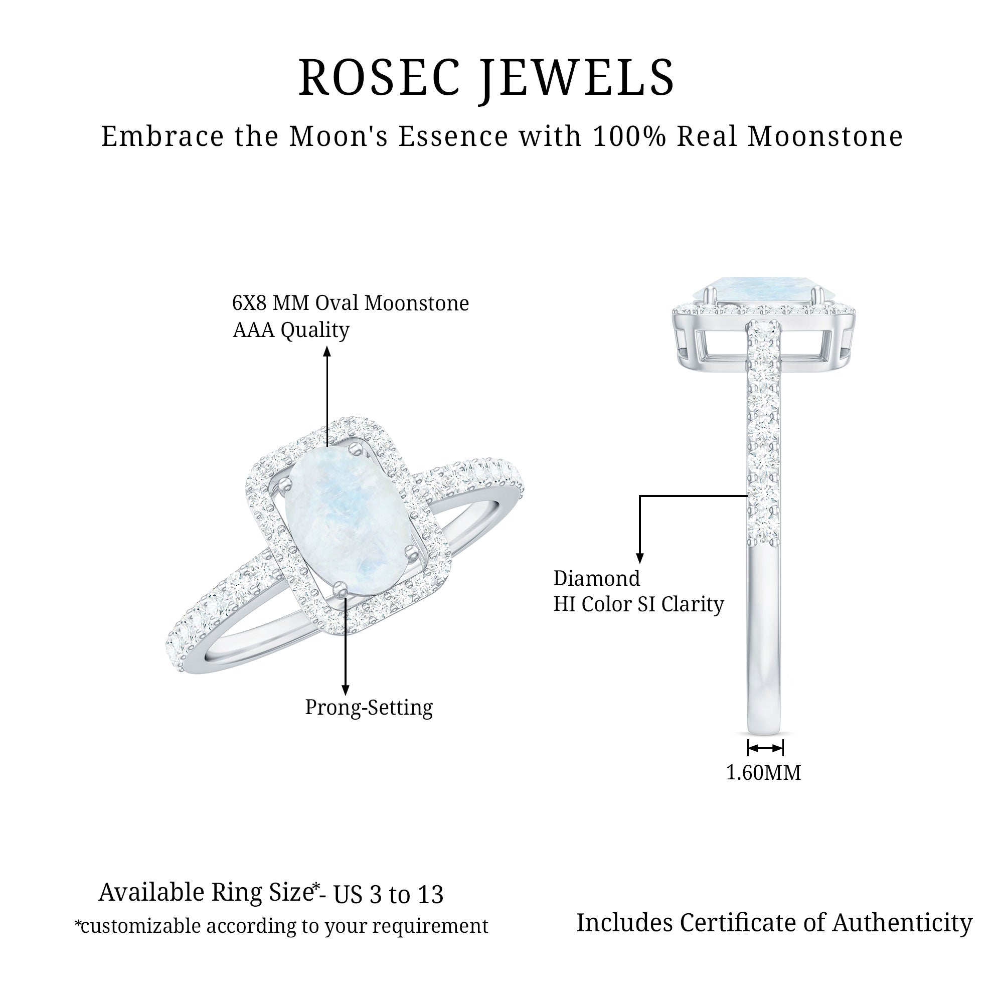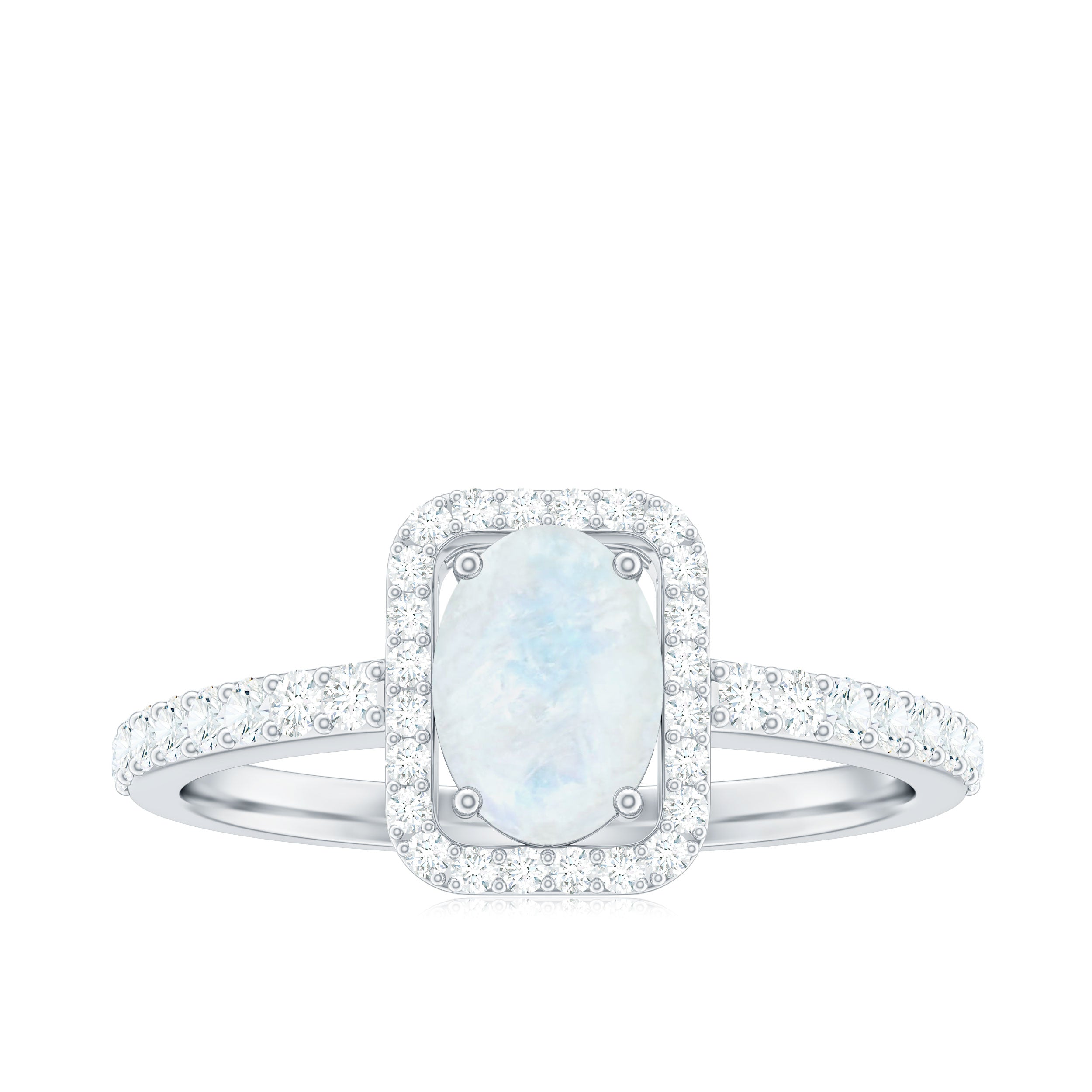 1.50 CT Oval Cut Moonstone Ring with Diamond Halo