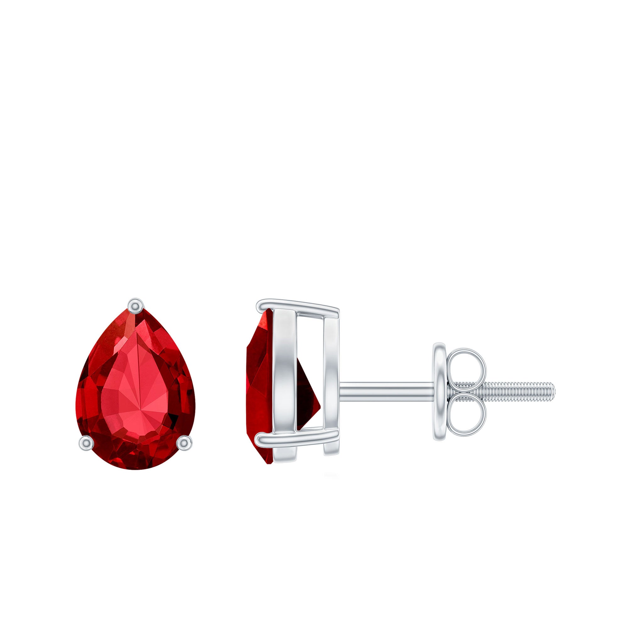 Solitaire 5X7MM Pear Shaped Lab Created Ruby Stud Earrings