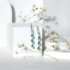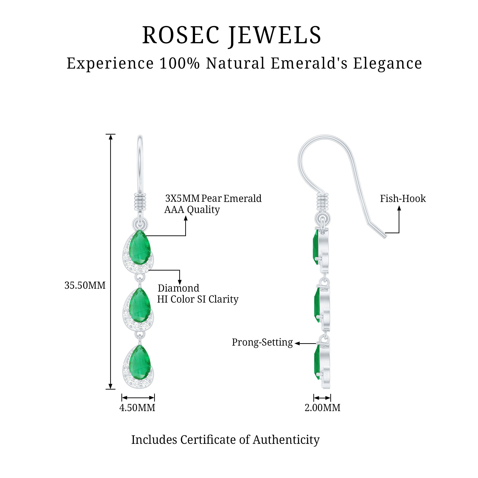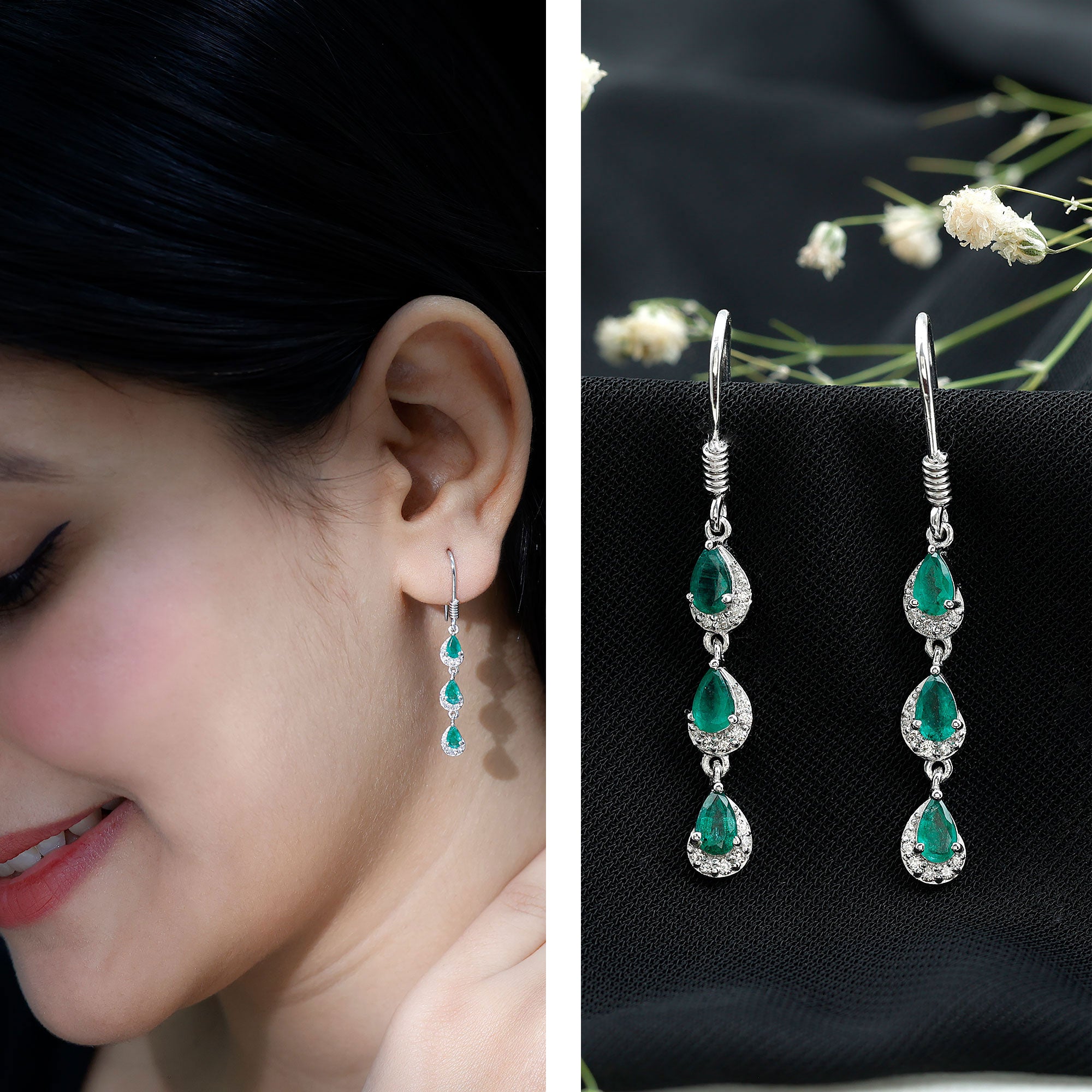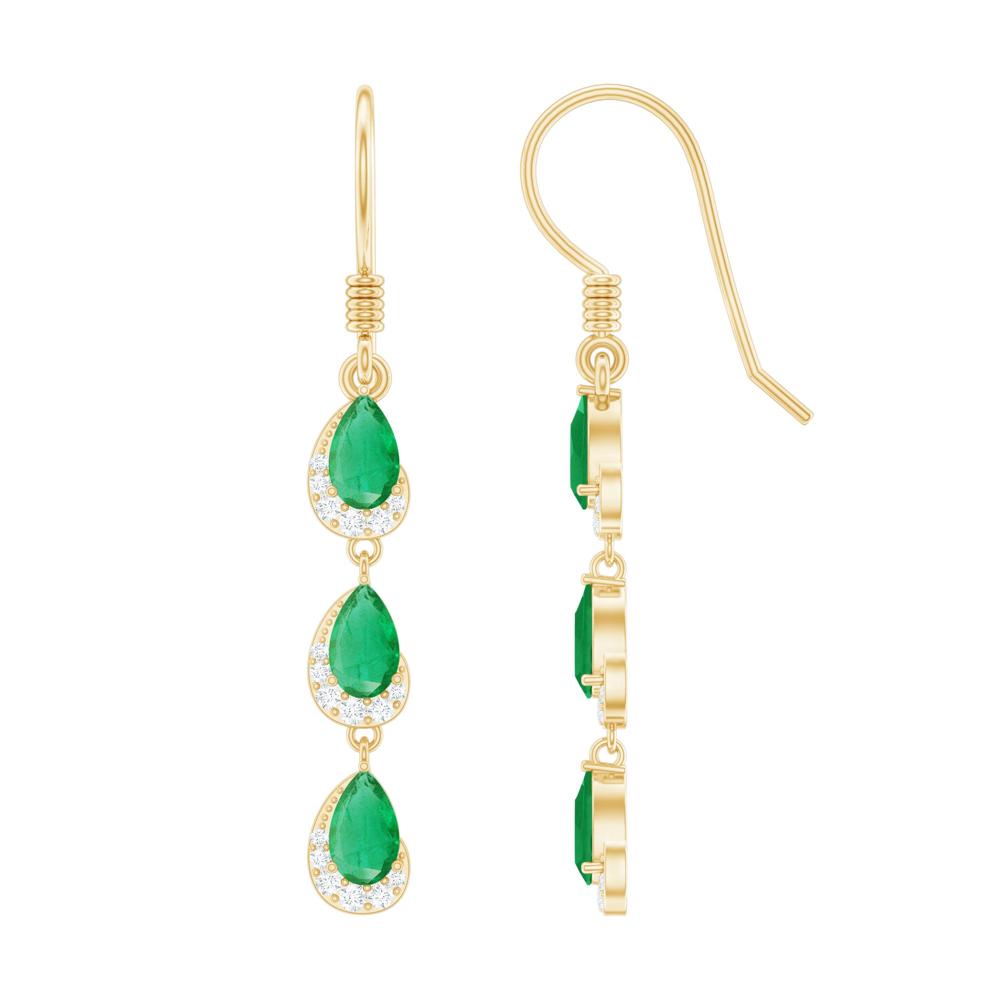1.50 CT Pear Cut Emerald Dangle Earrings with Diamond
